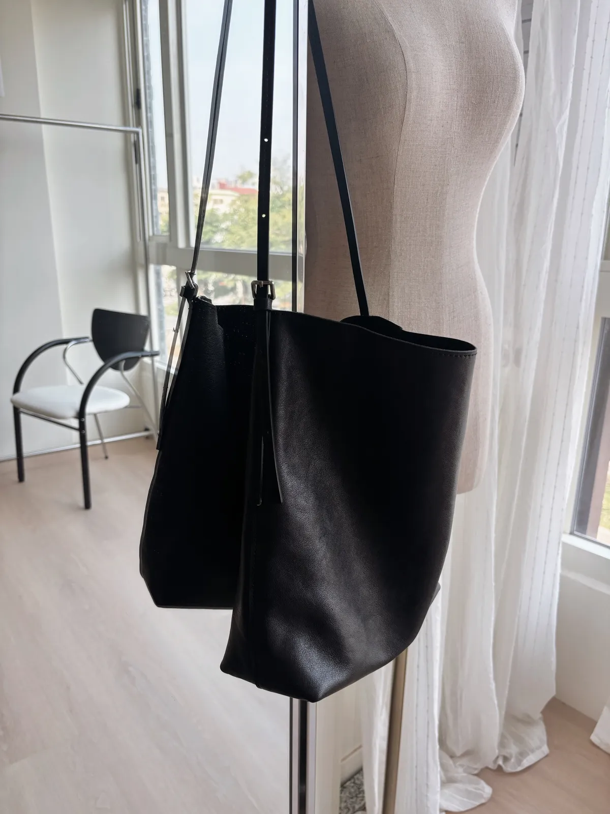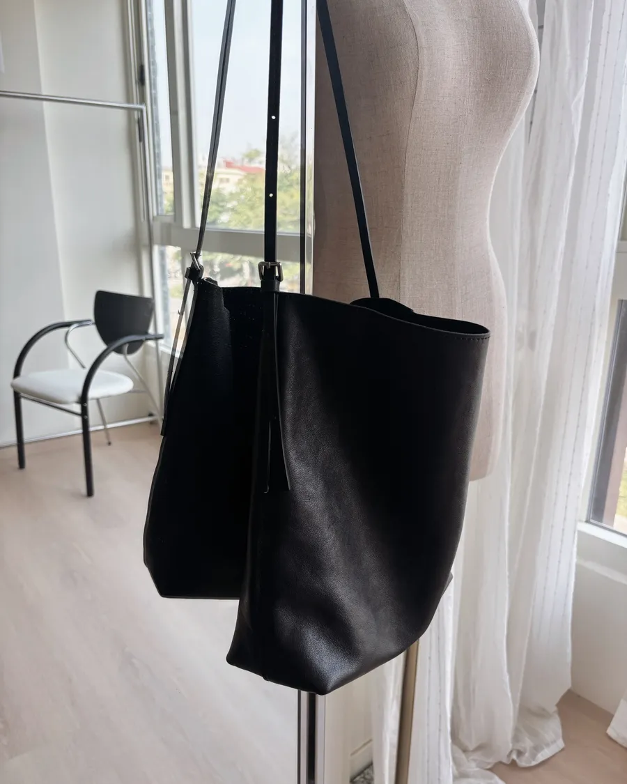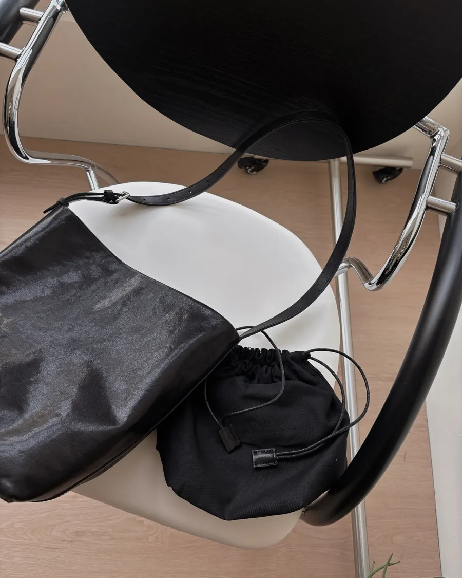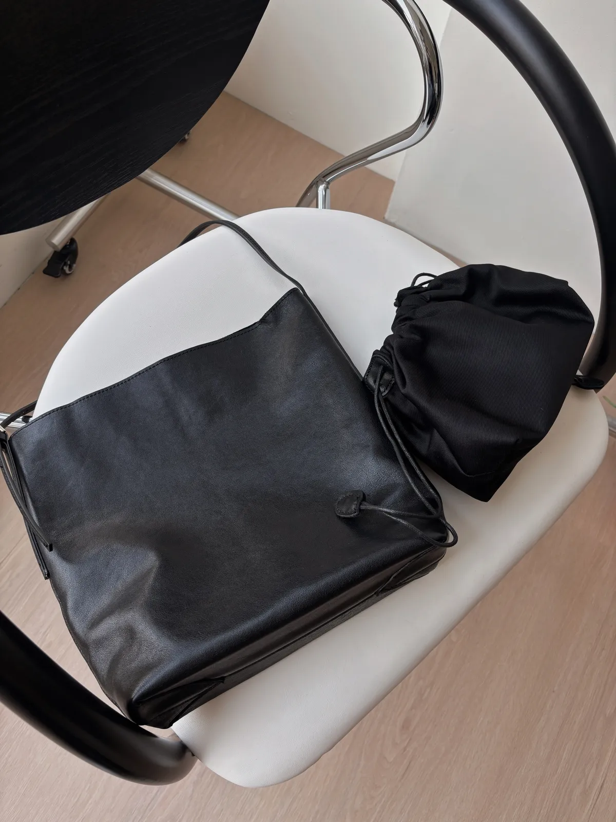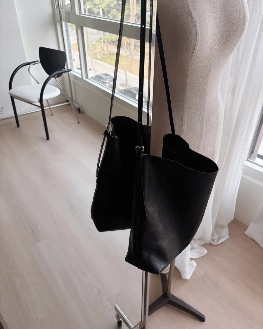 自在垂感真皮子母水桶包 Soft Roam Bucket 黑