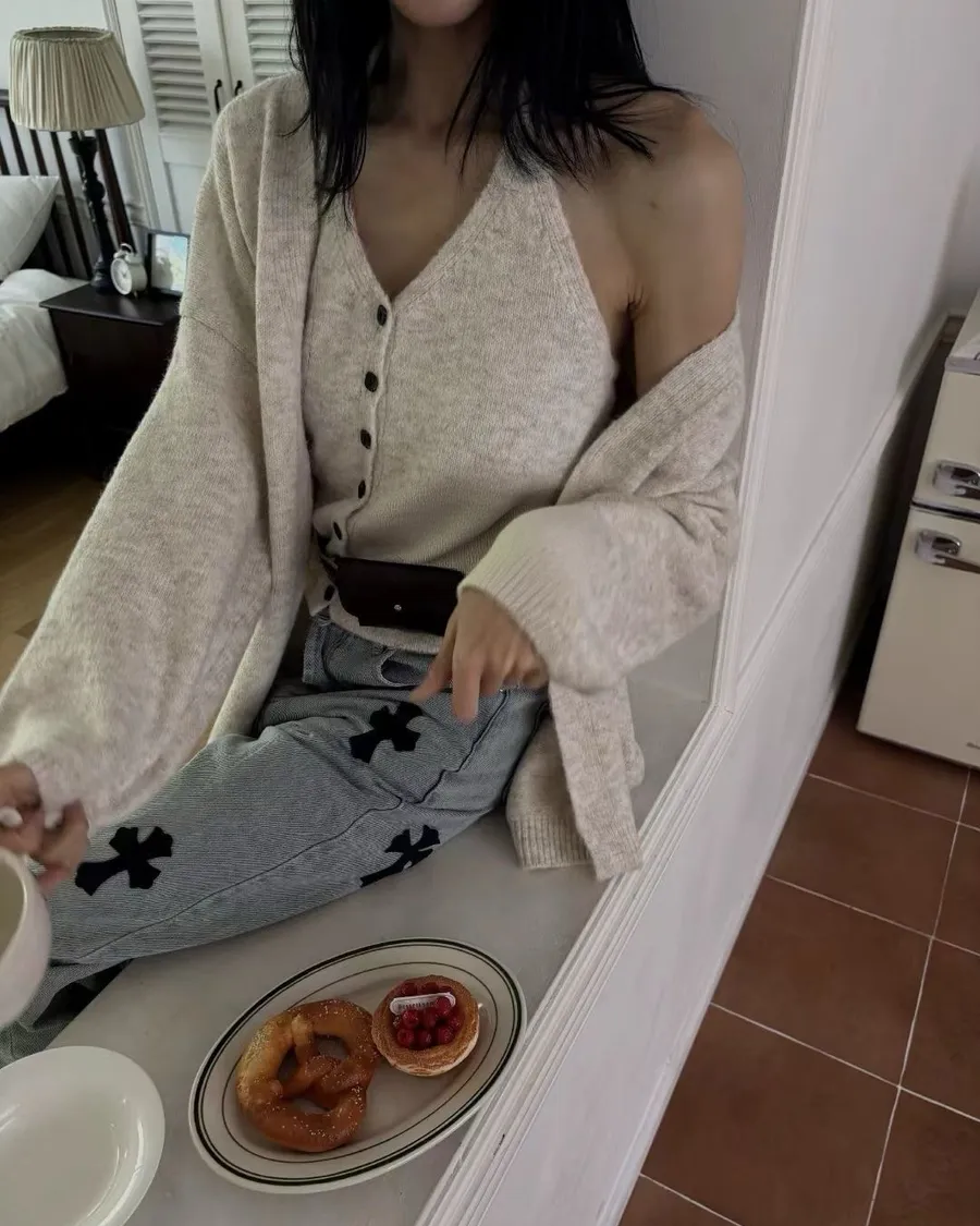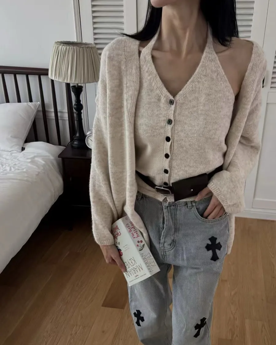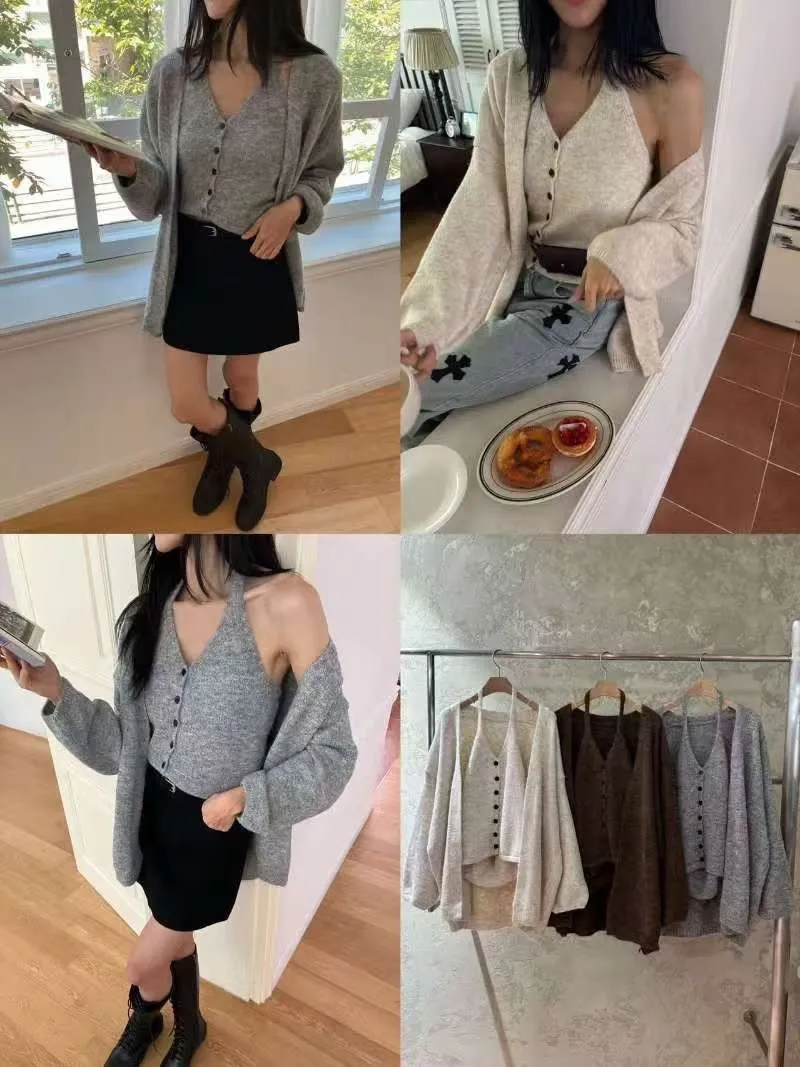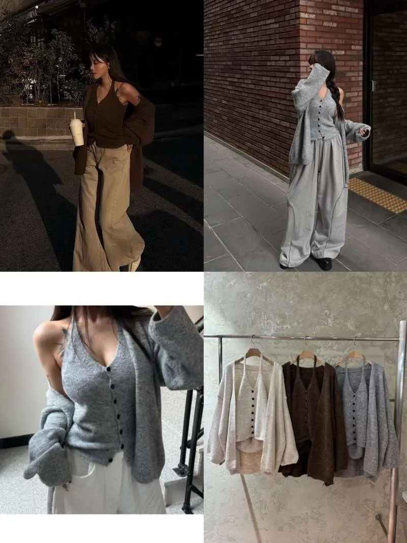 熱門代購|繞脖排釦針織兩件式set