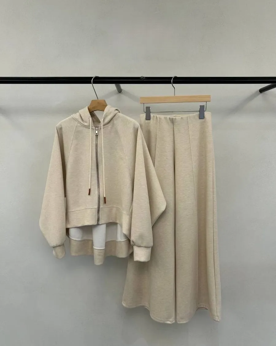 熱門代購|連帽斗篷感棉料套裝 寬褲