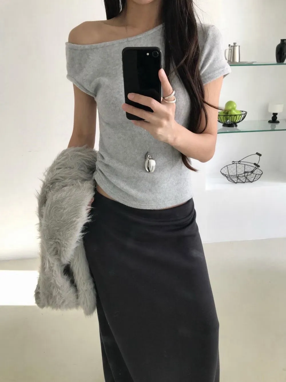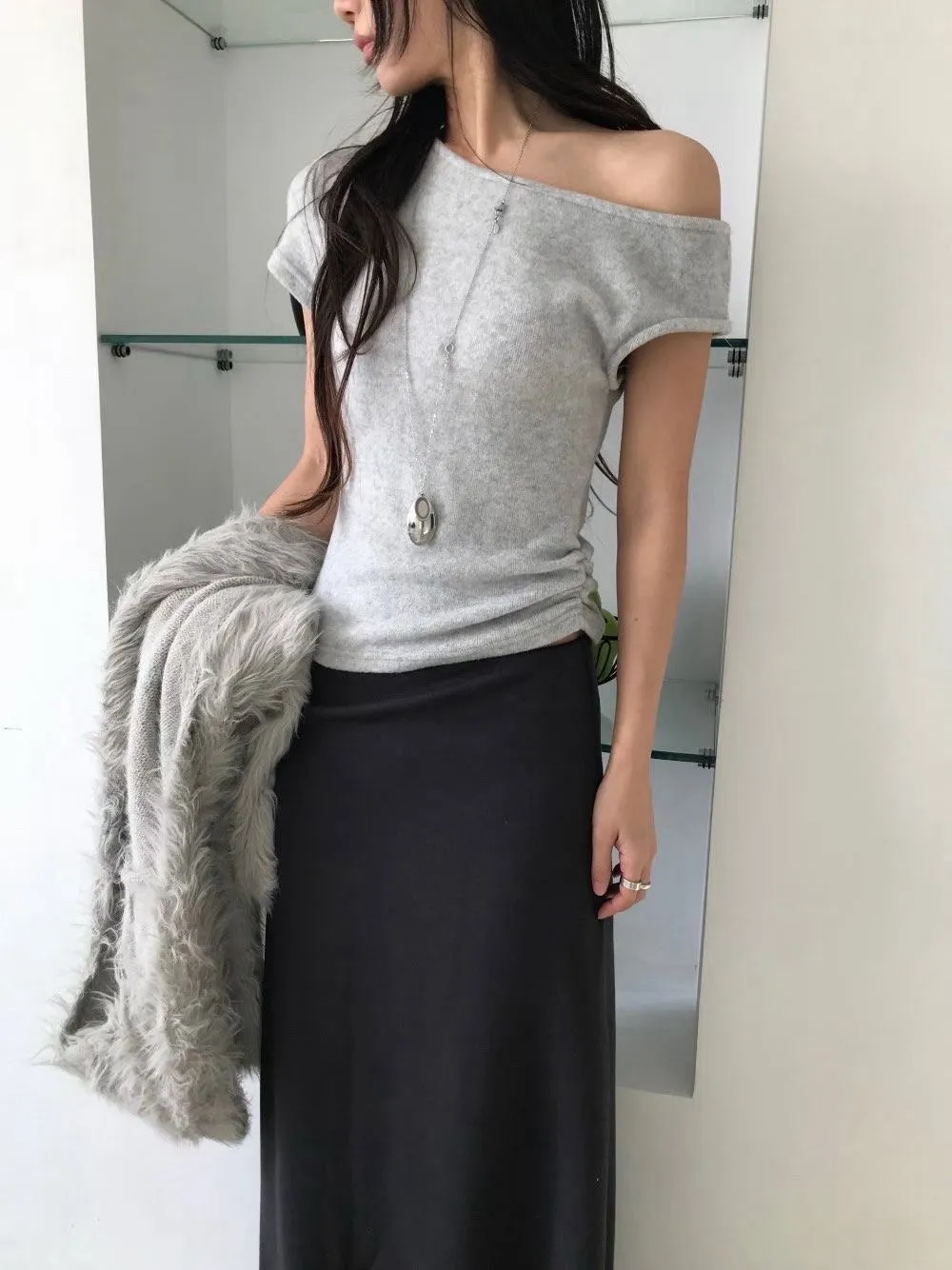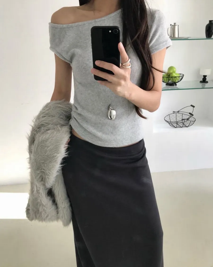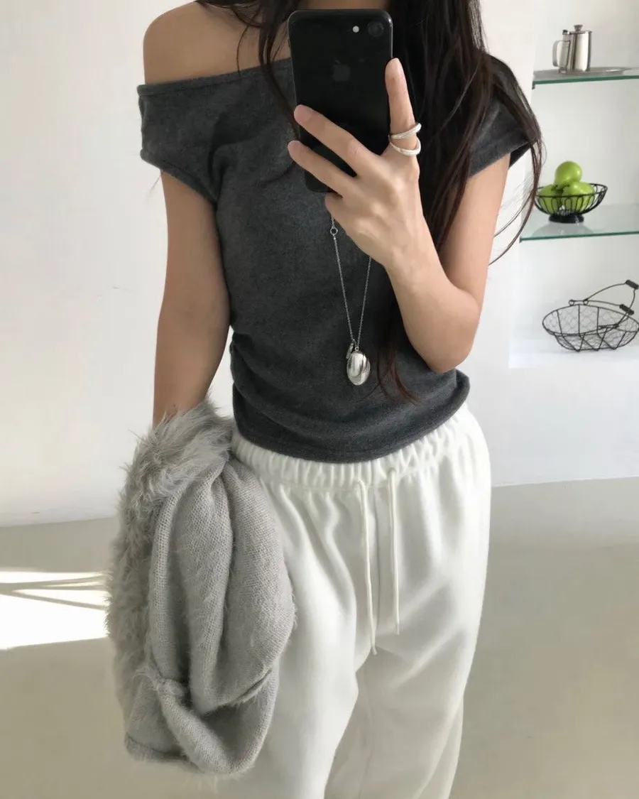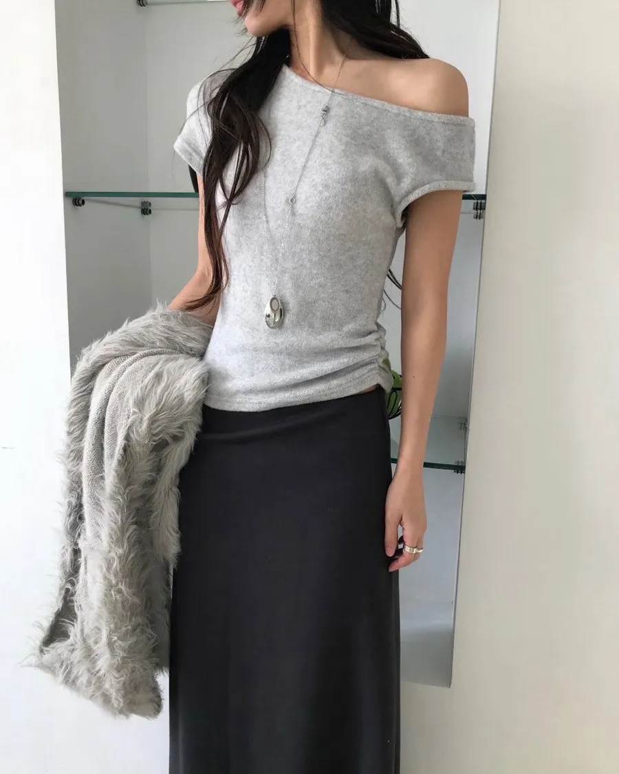 熱門代購|單斜露肩抓皺上衣 3色