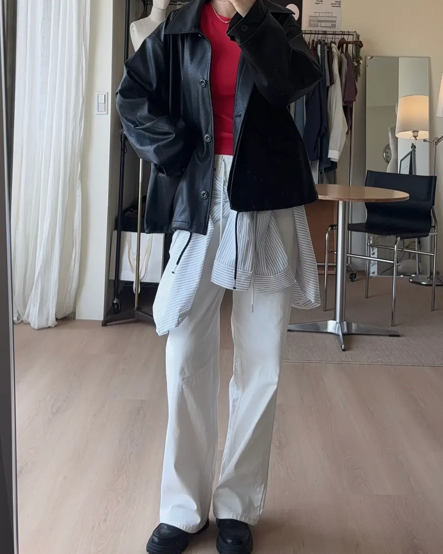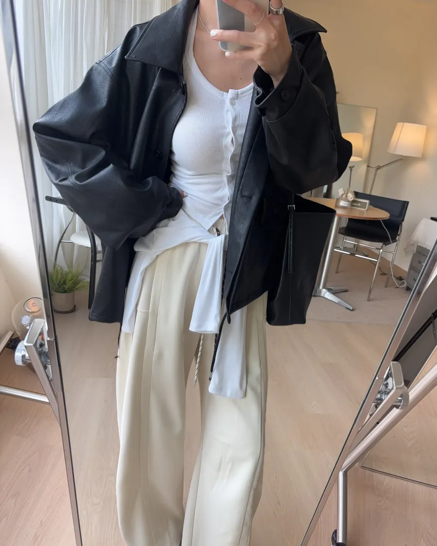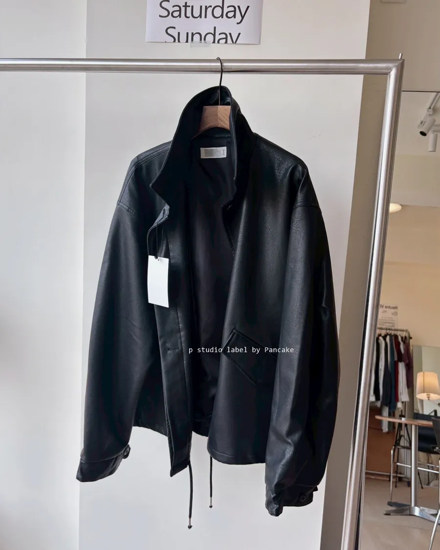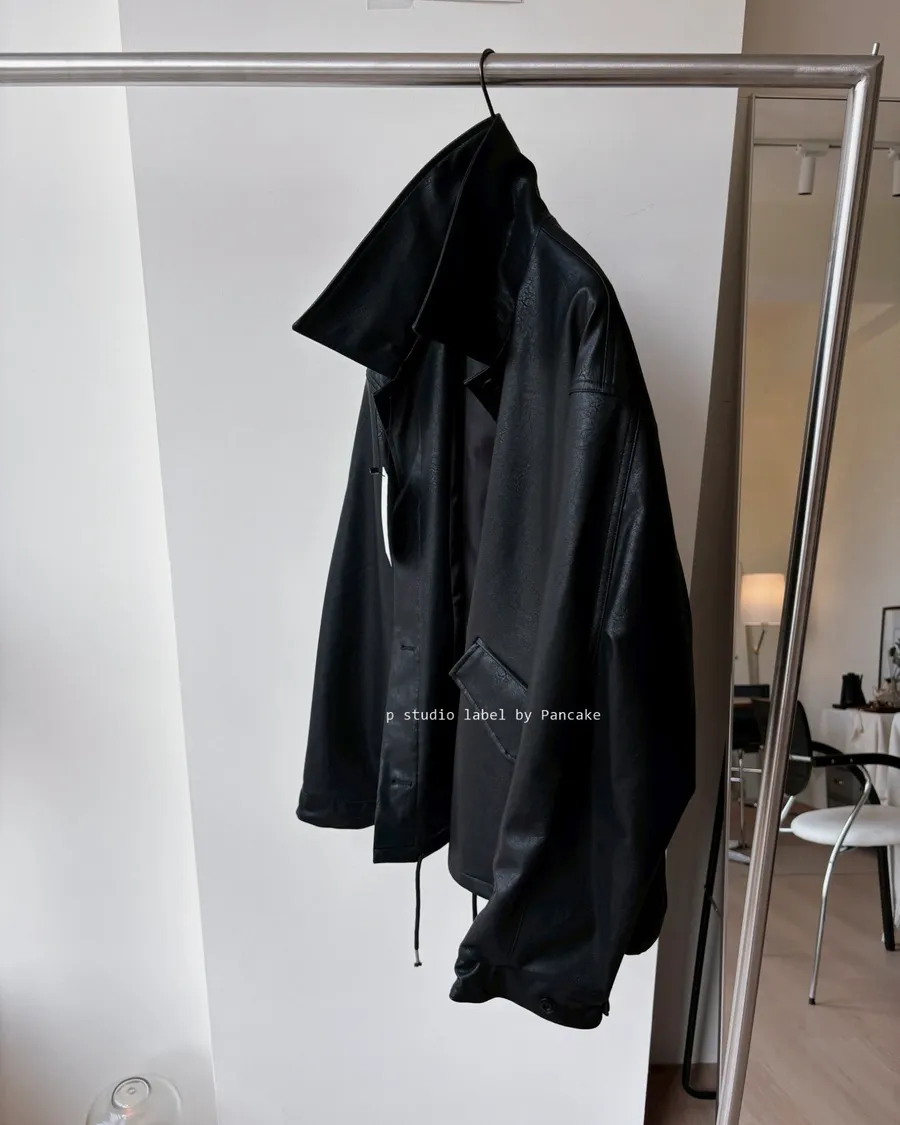 K618 落肩下擺抽繩皮革外套