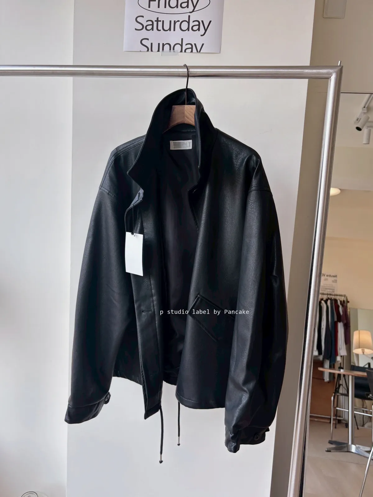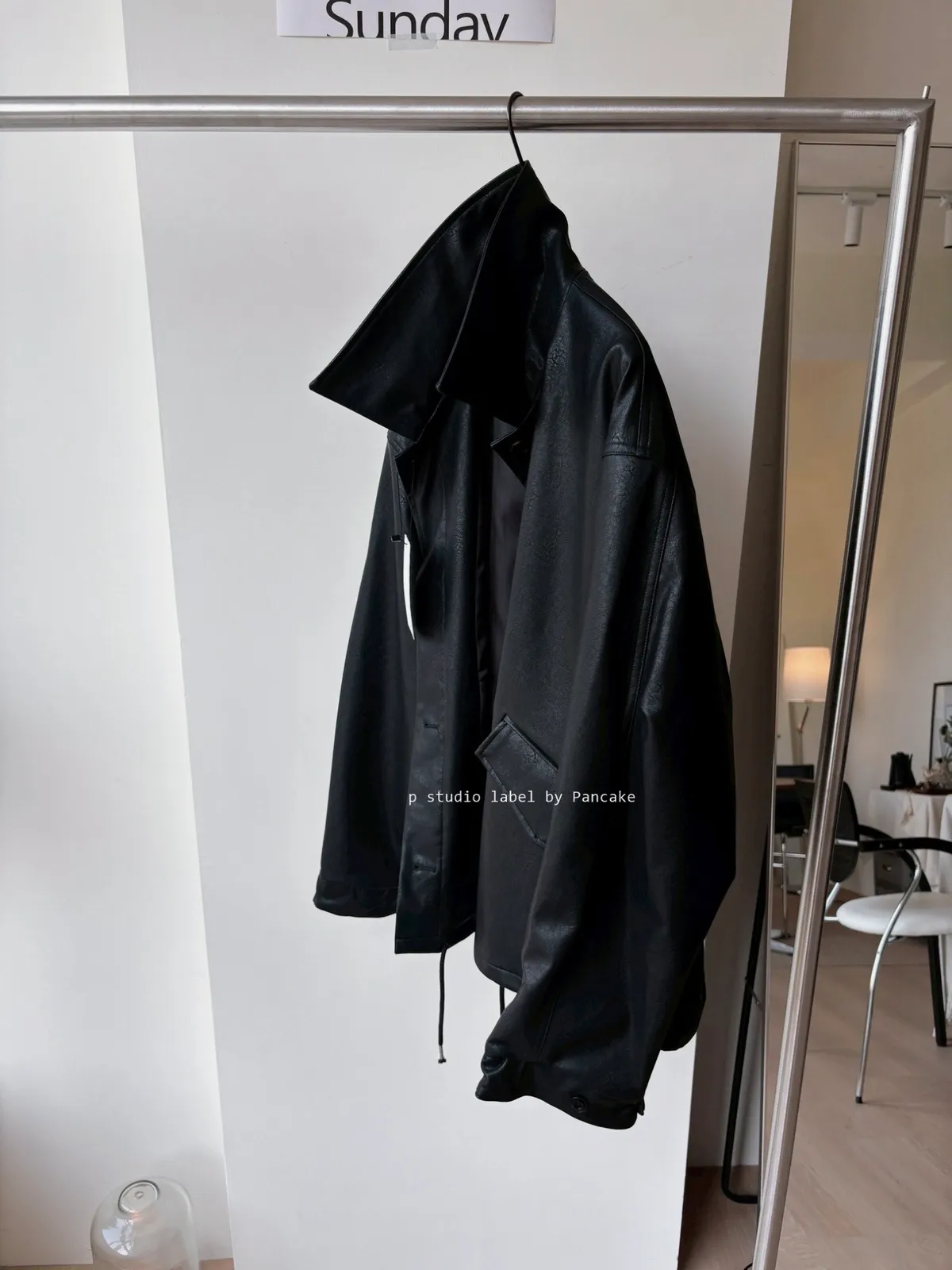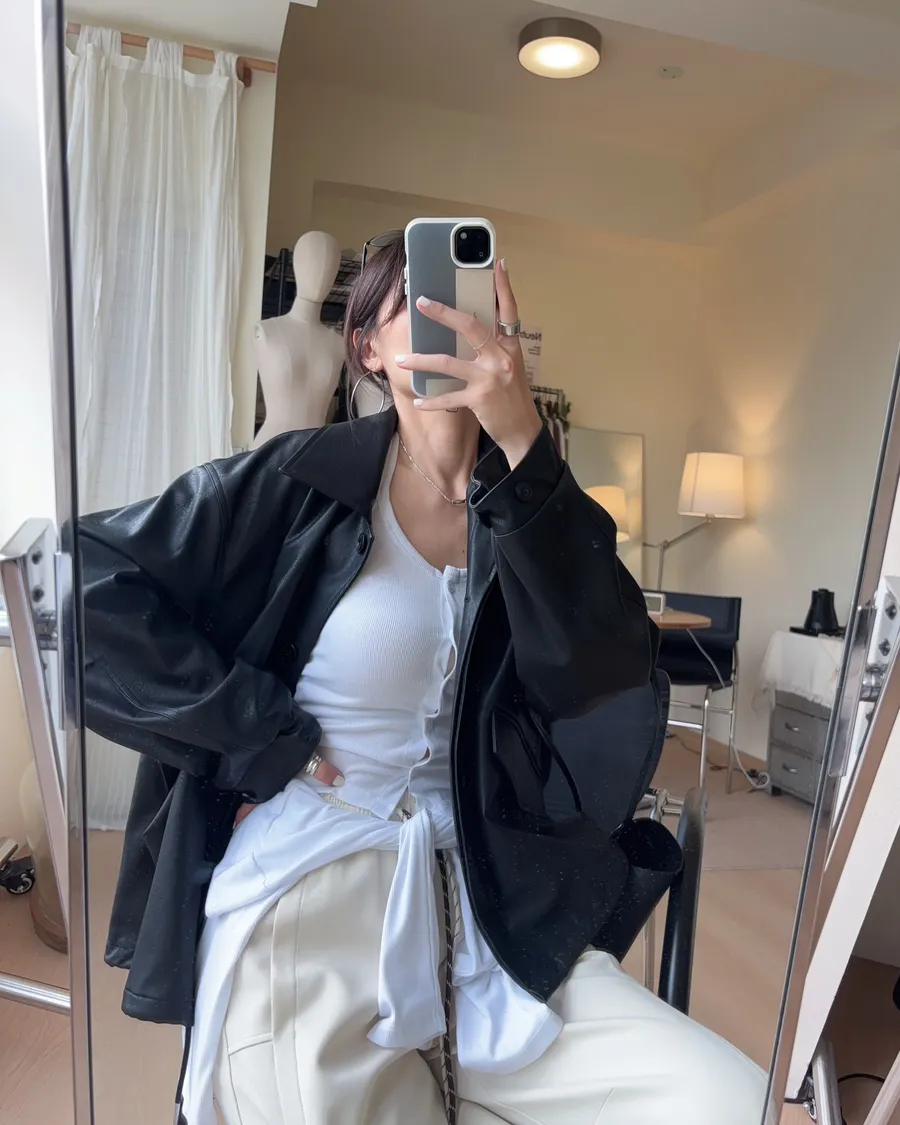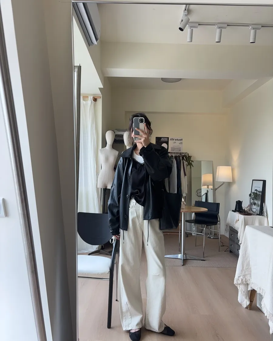 K618 落肩下擺抽繩皮革外套