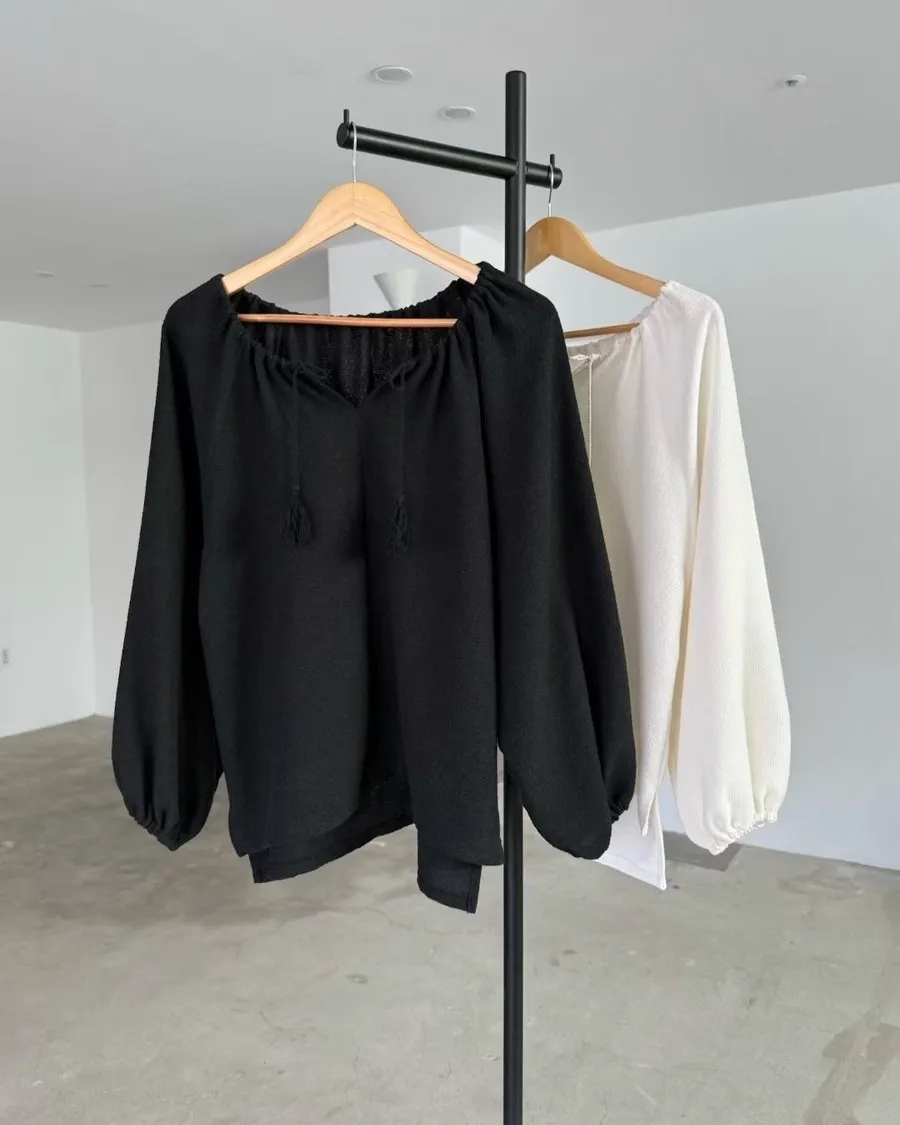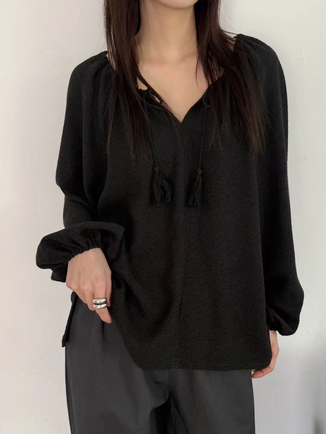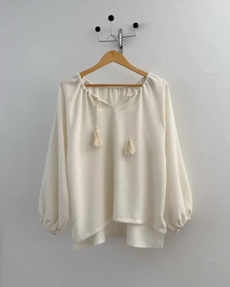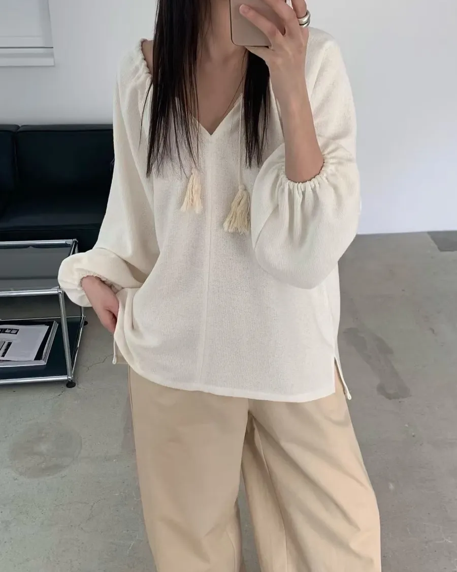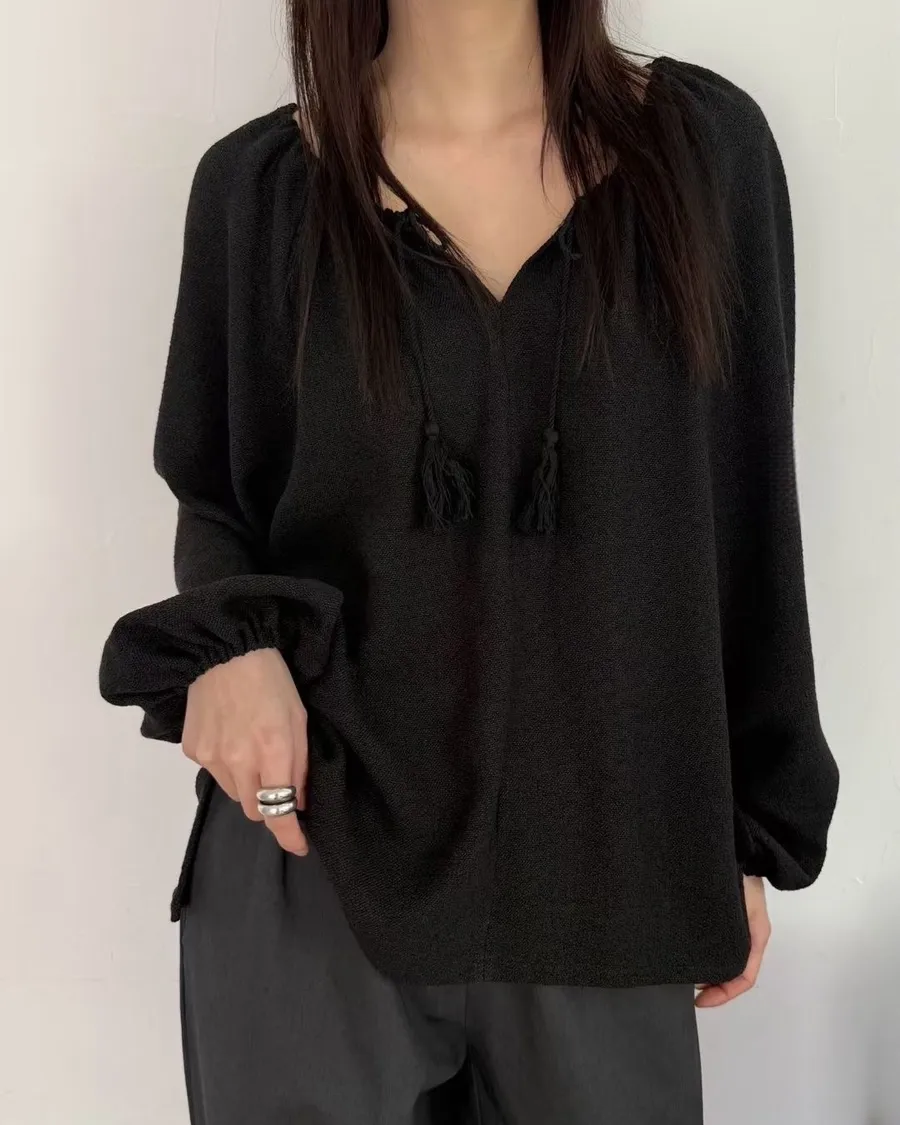 慵懶感抽繩流蘇寬鬆束口衫 2色