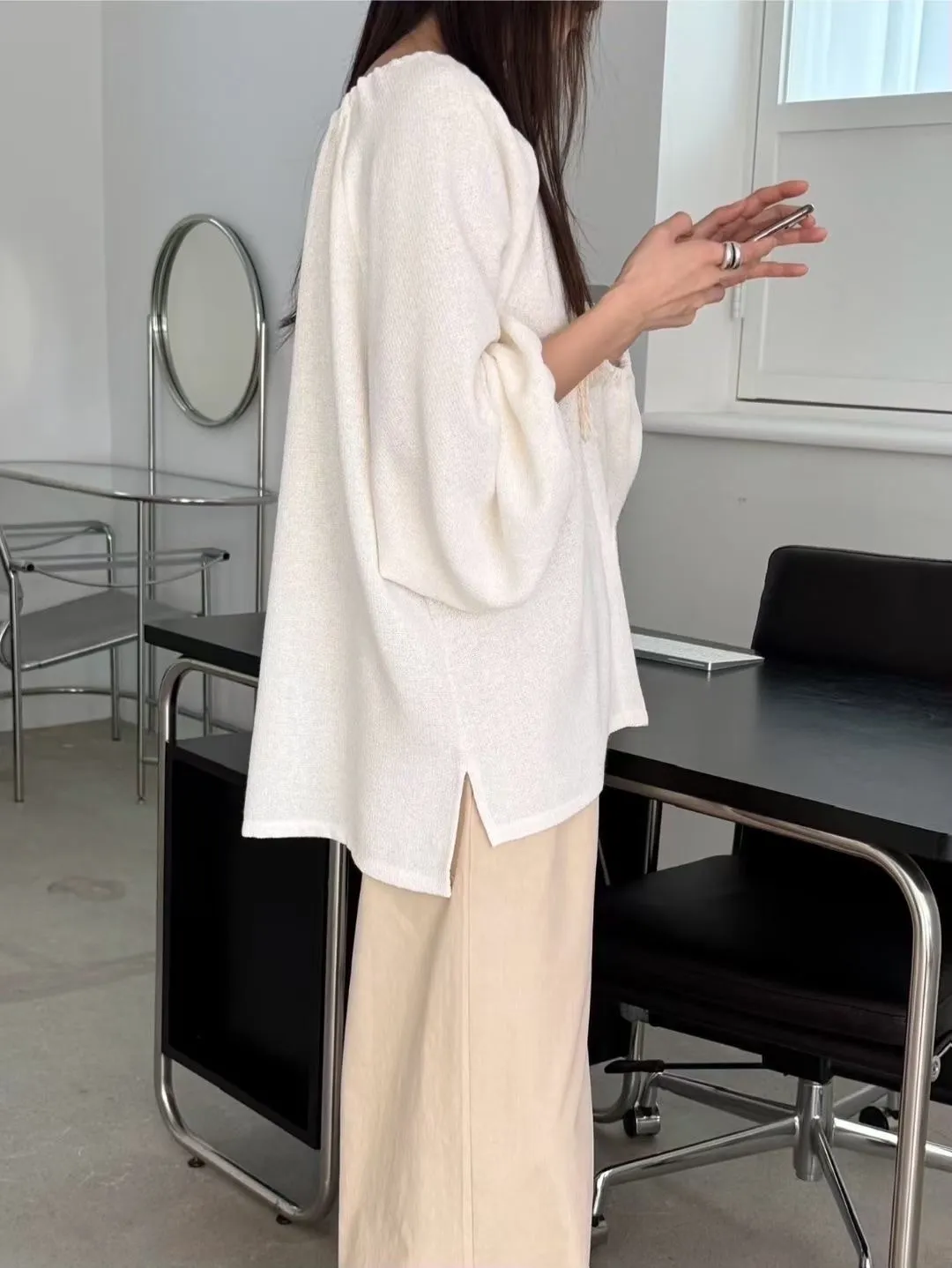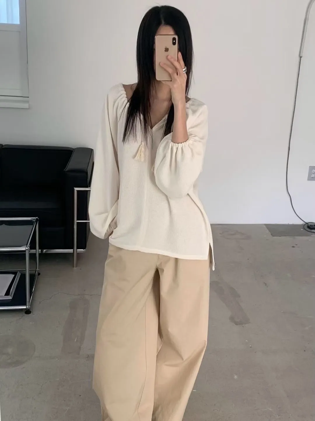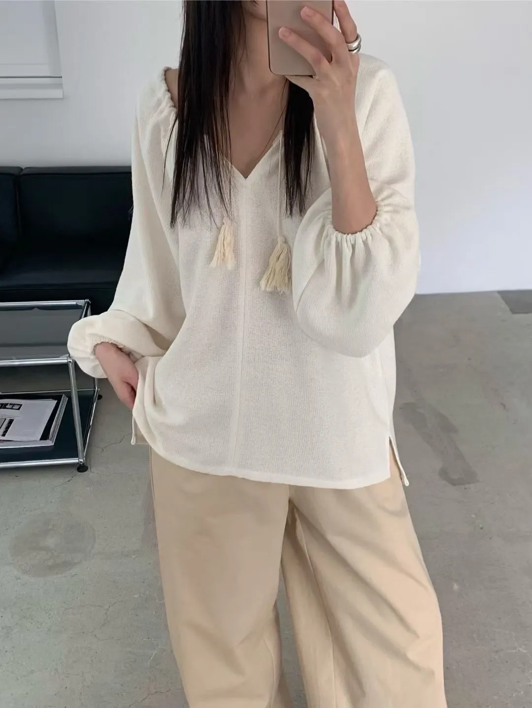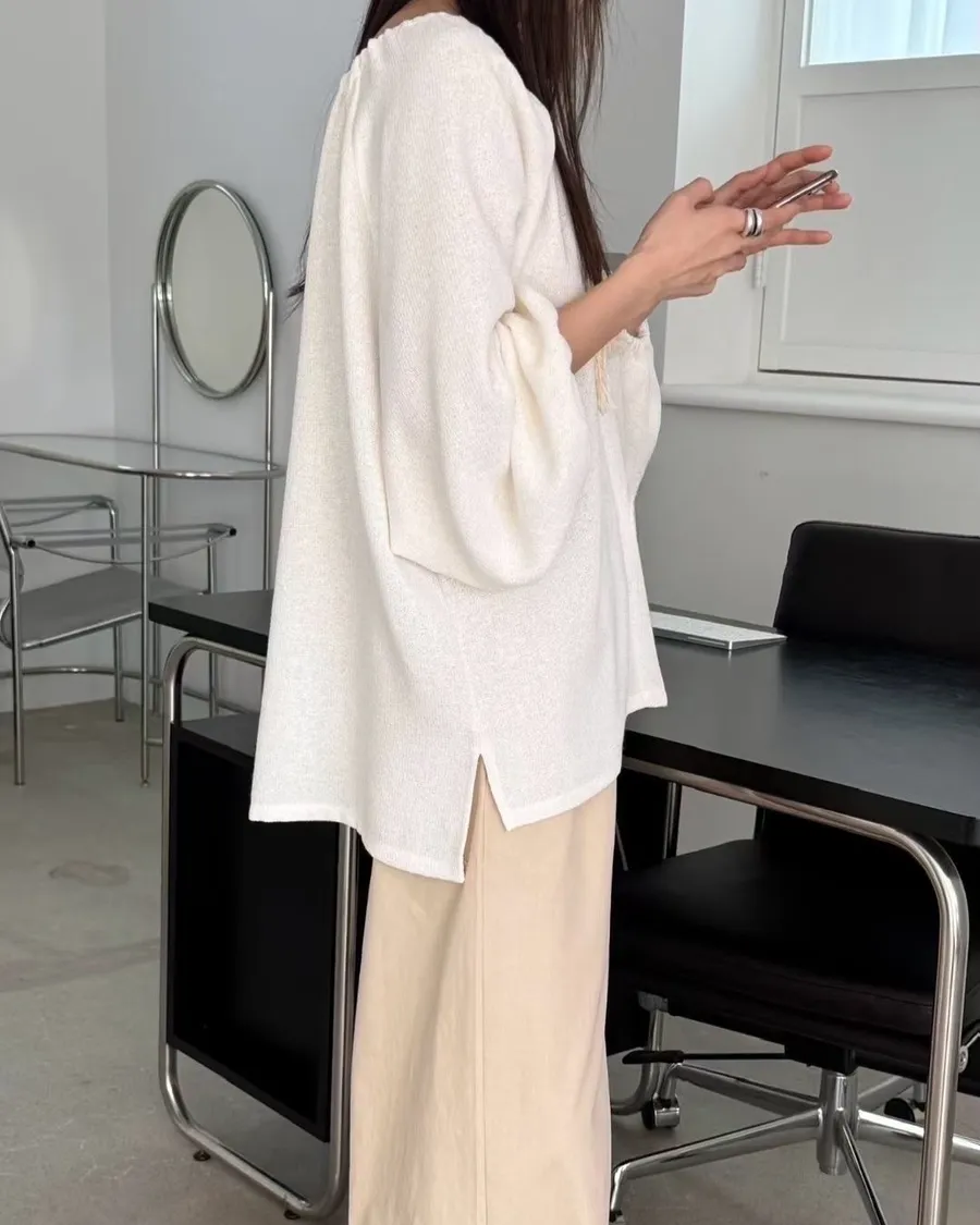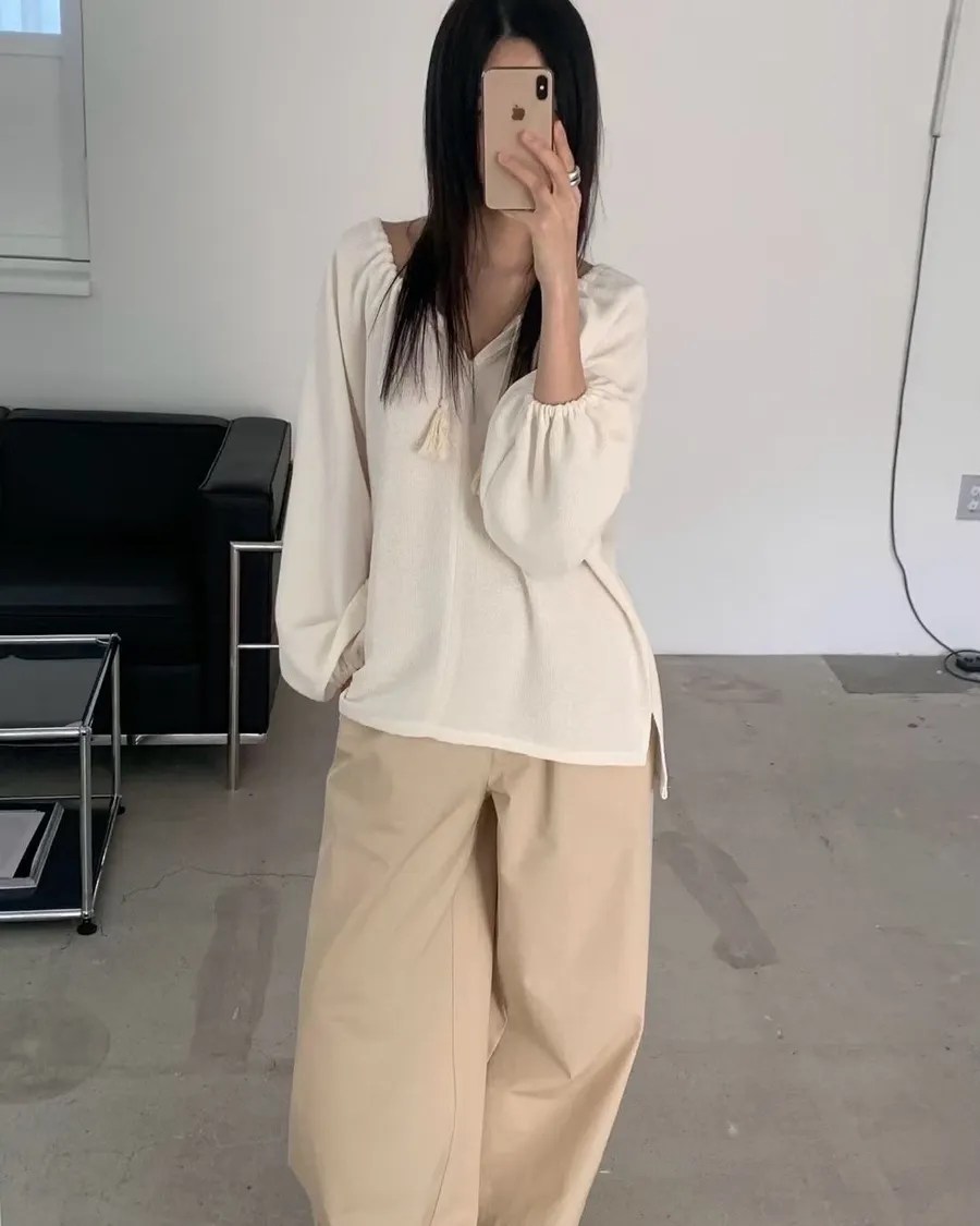 慵懶感抽繩流蘇寬鬆束口衫 2色
