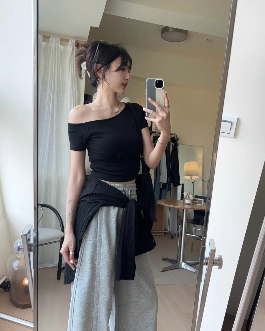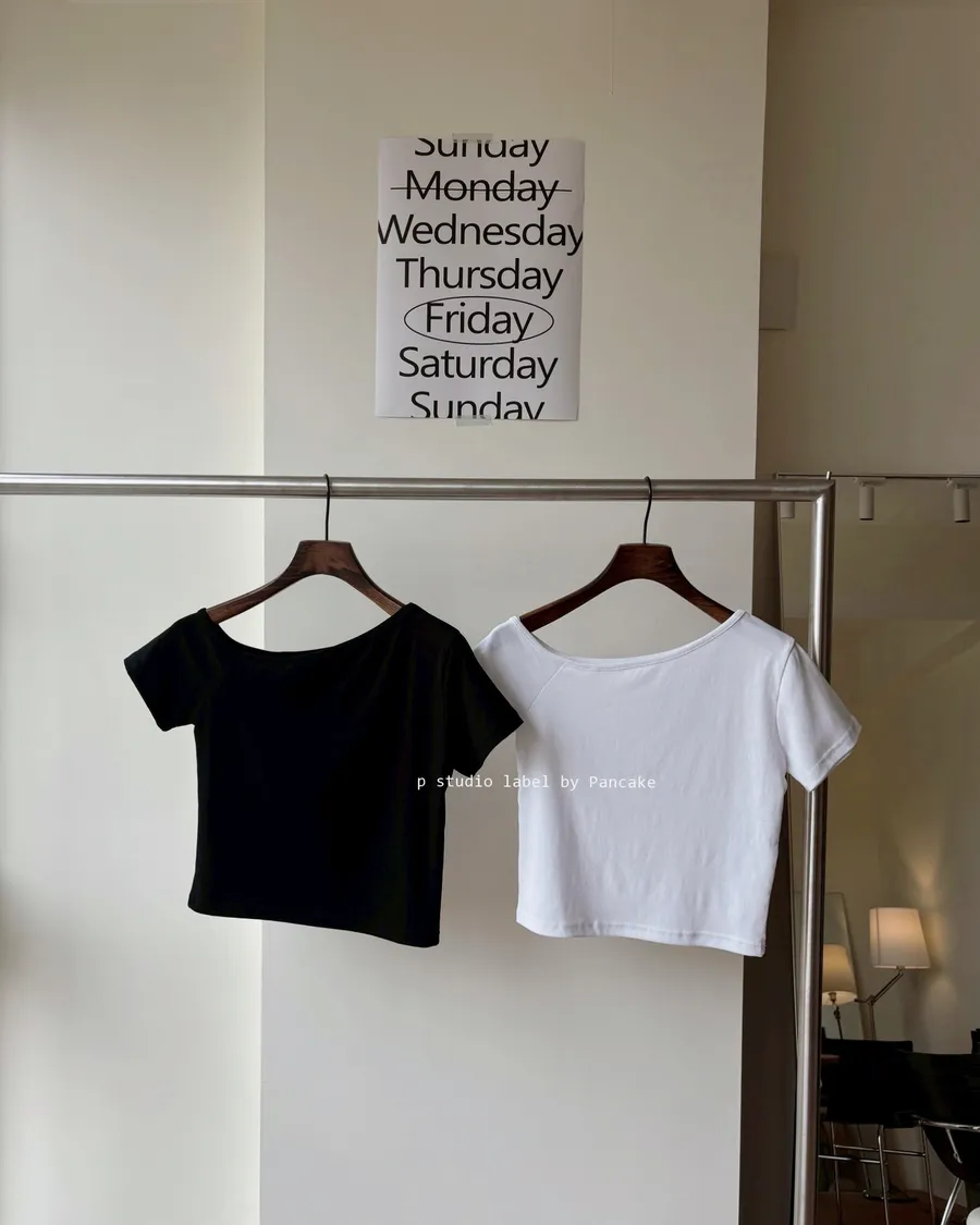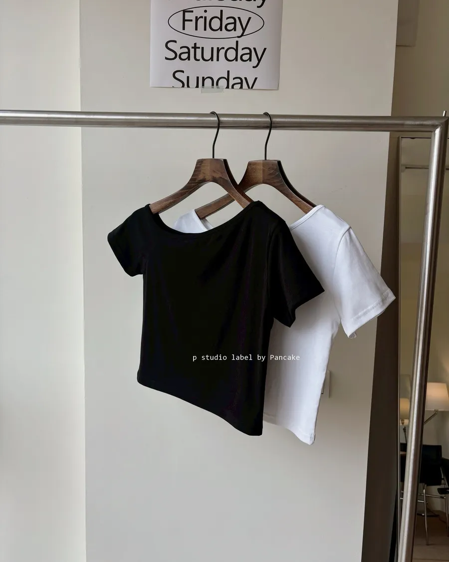 Best K624簡約斜肩不對稱短T 2色