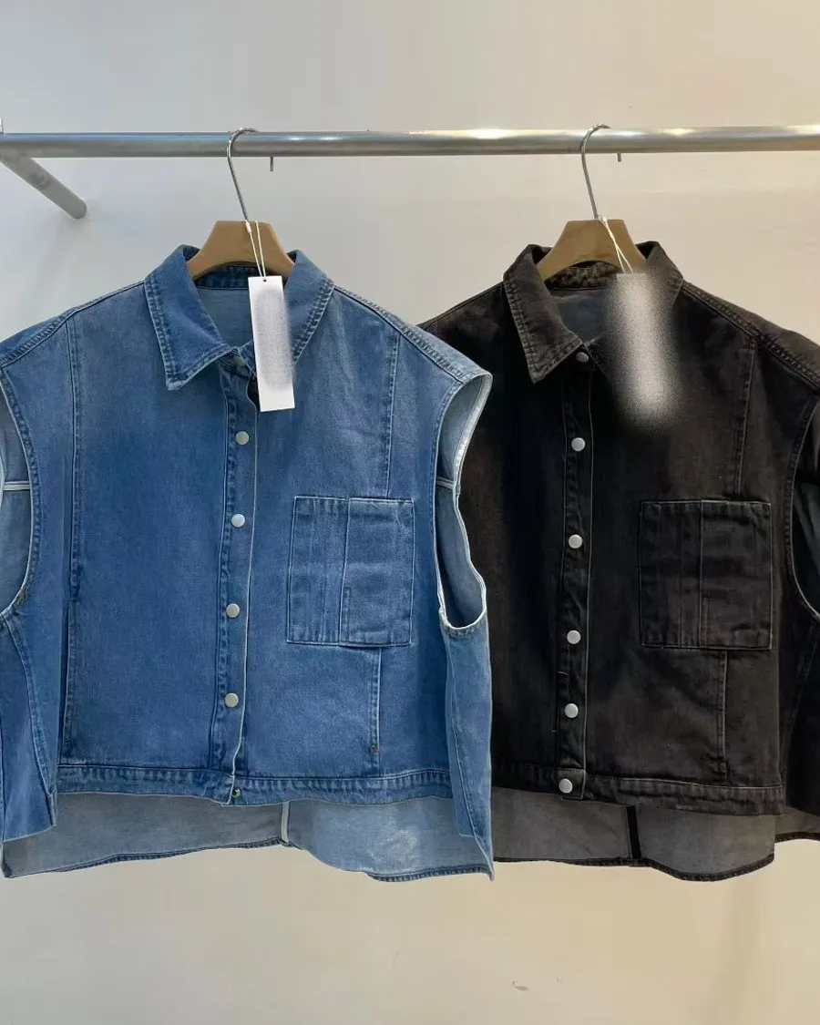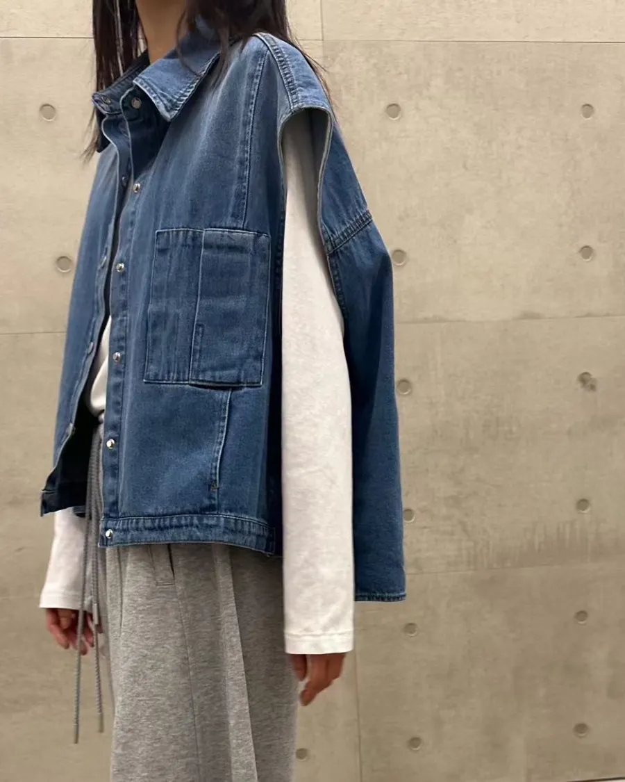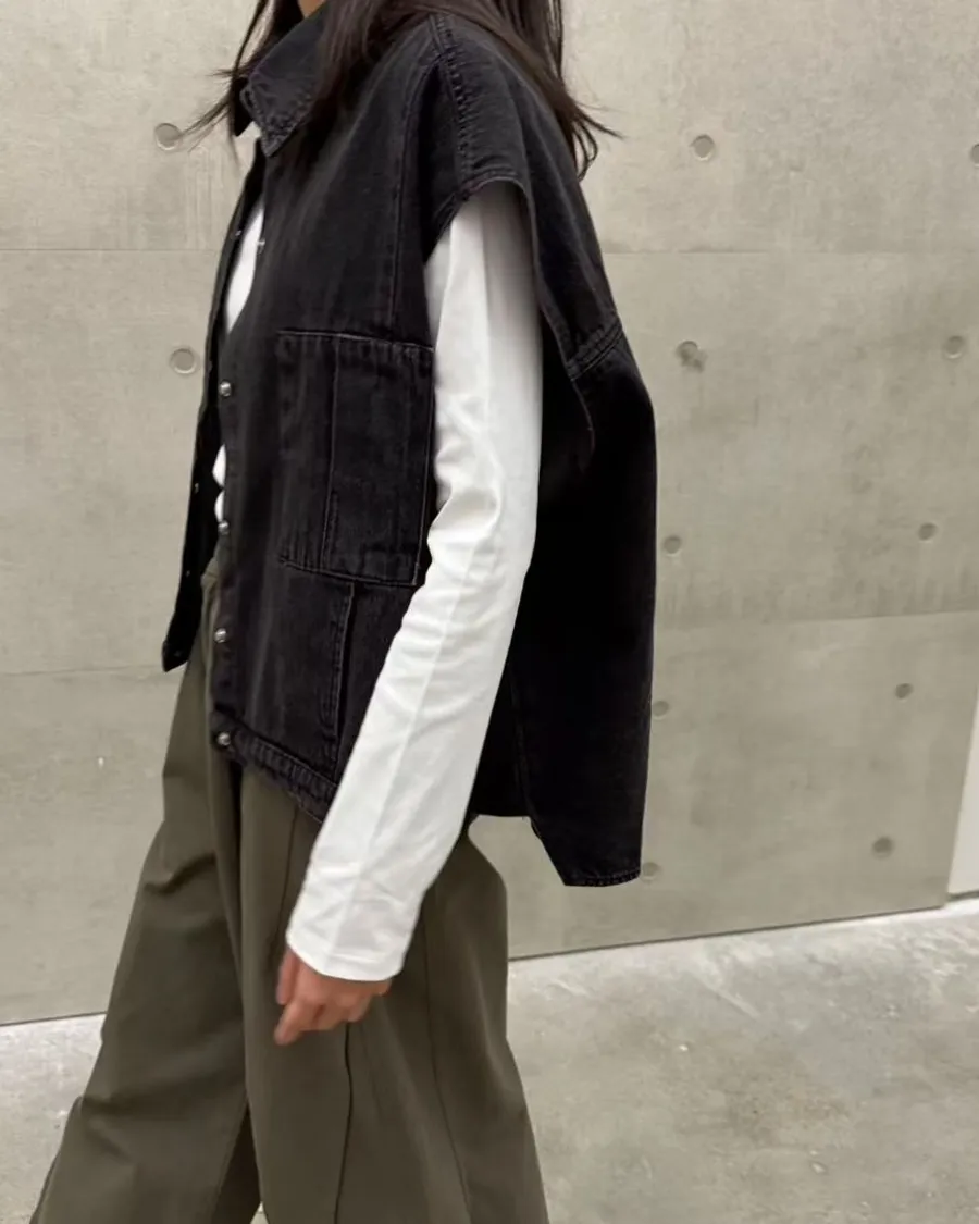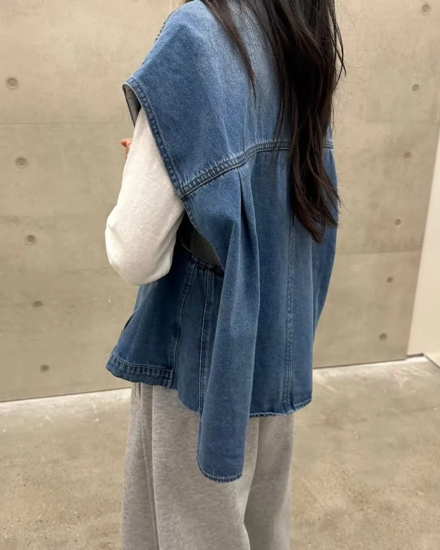 熱門代購|K628垂肩後長擺牛仔背心 2色
