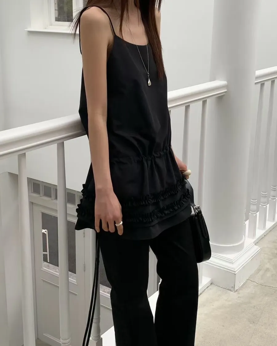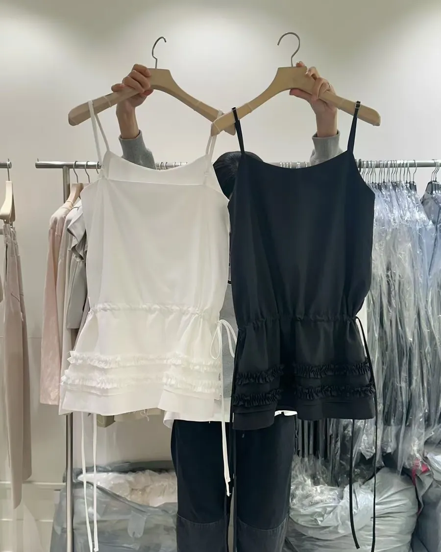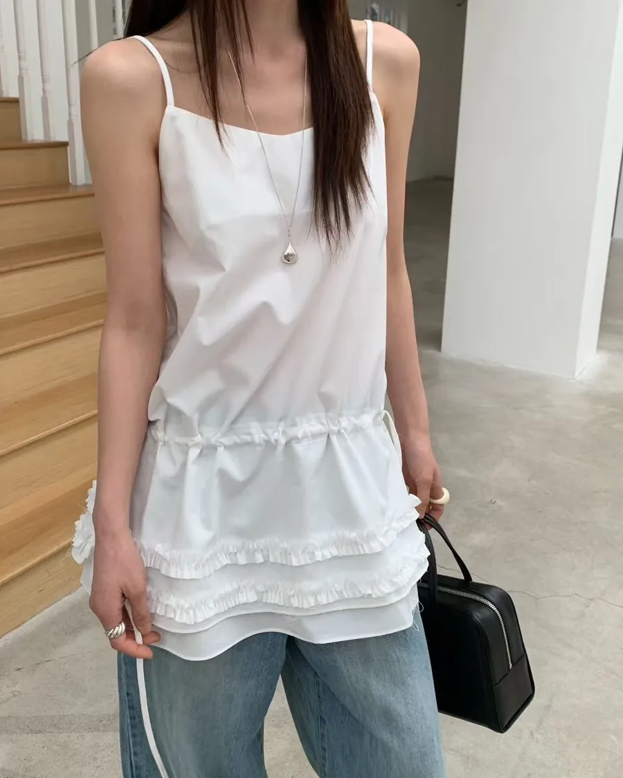 熱門代購 | K313層次蛋糕皺褶細帶背心 2色