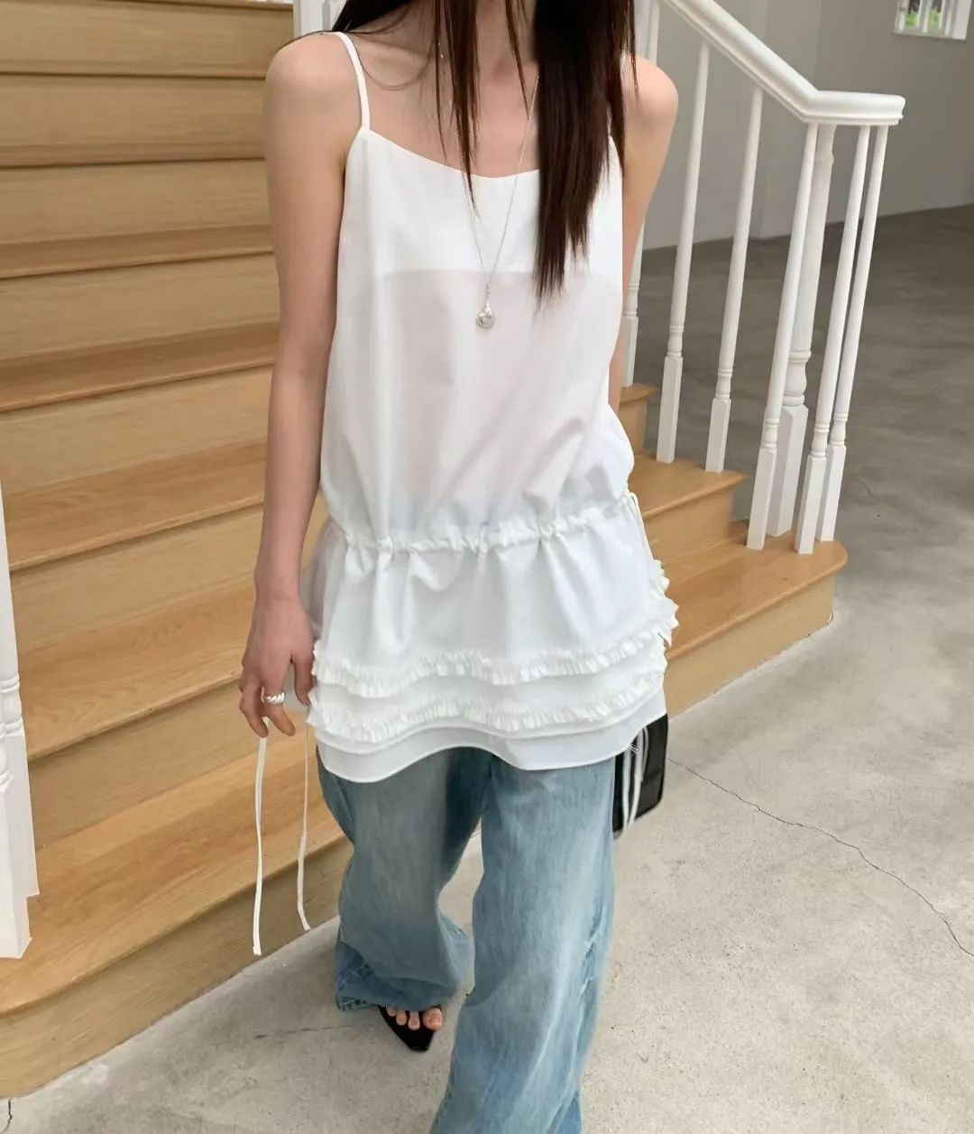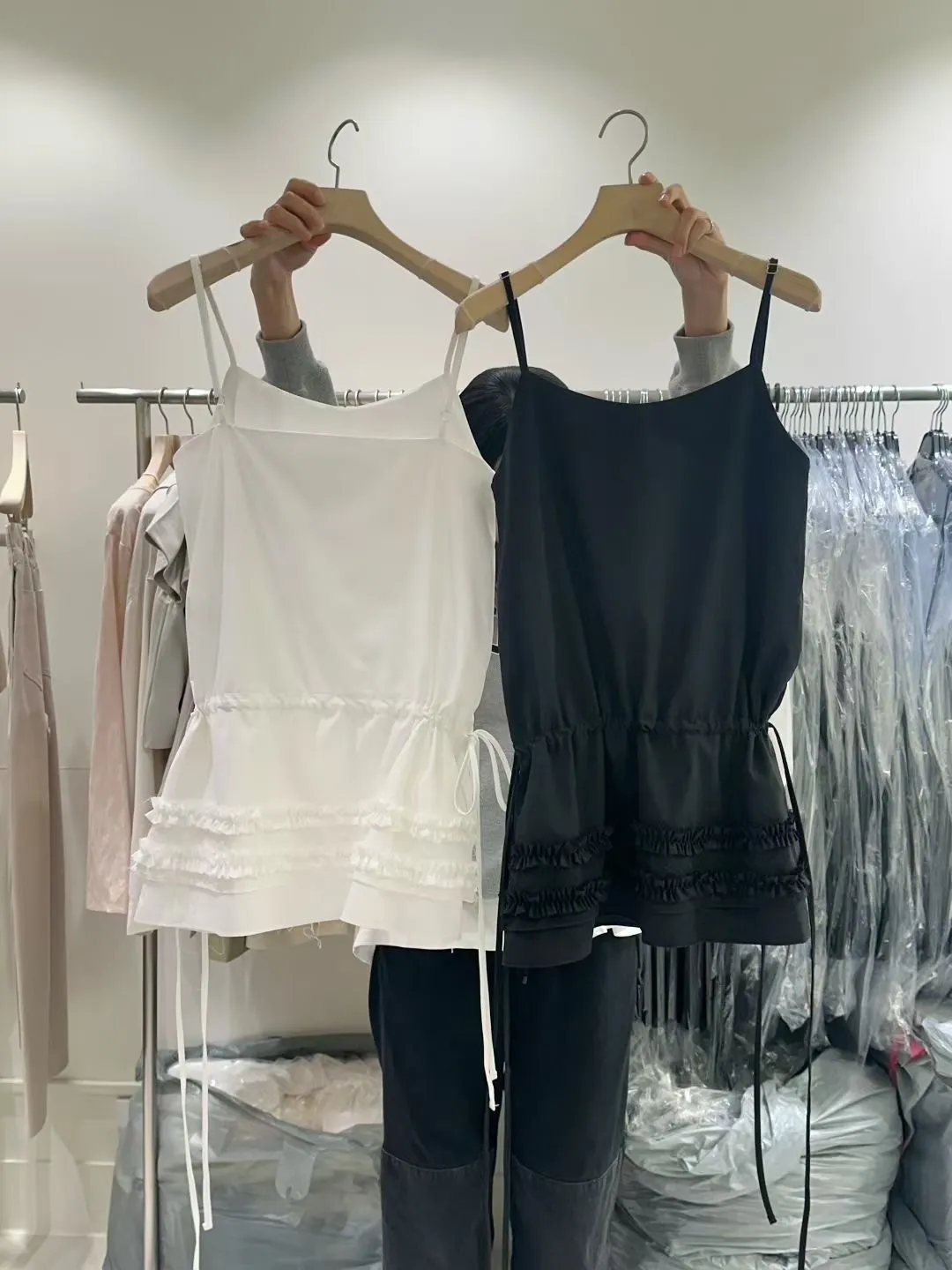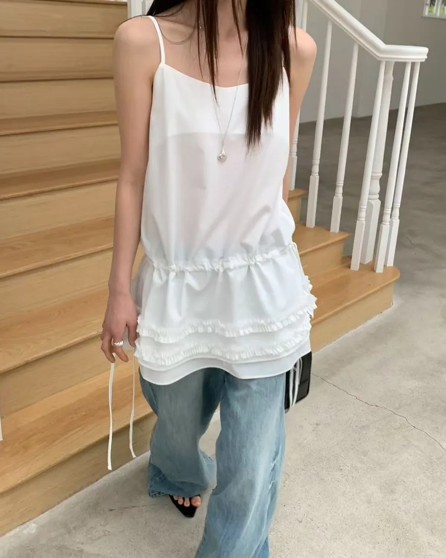 熱門代購 | K313層次蛋糕皺褶細帶背心 2色