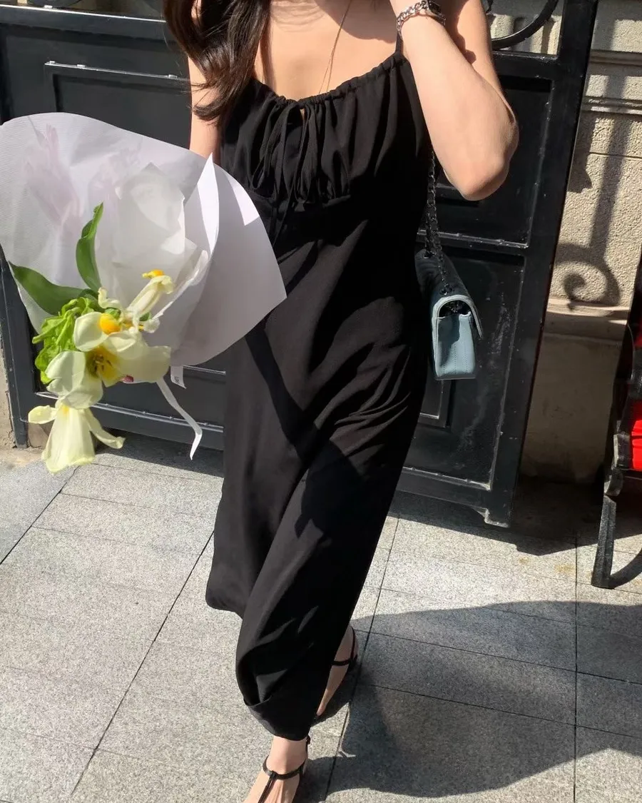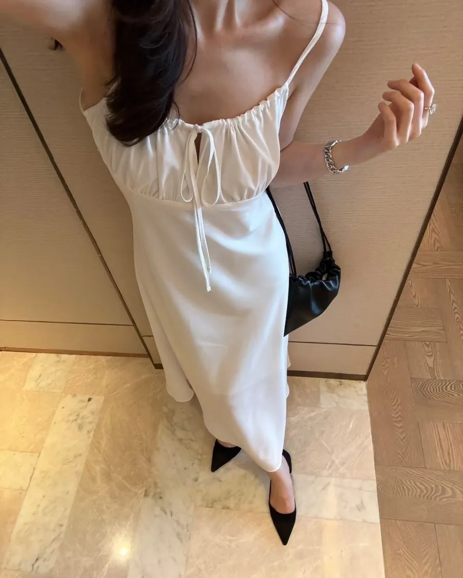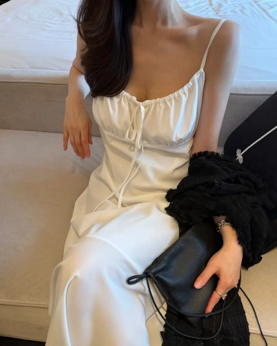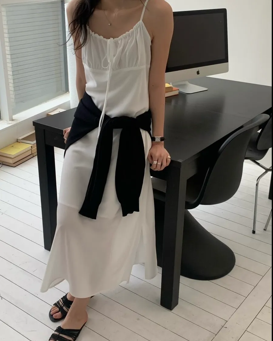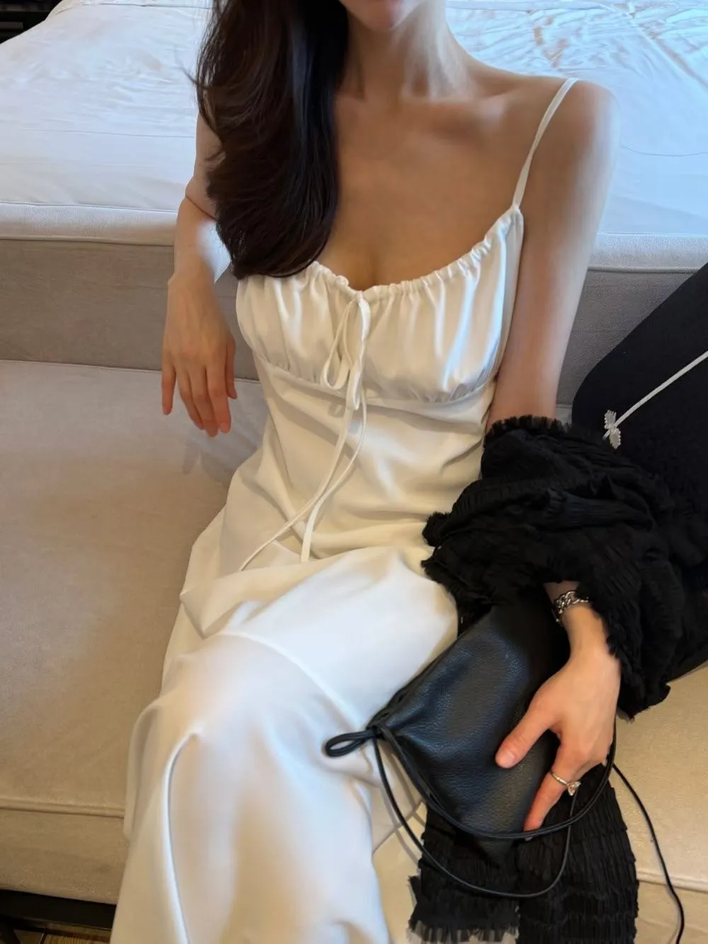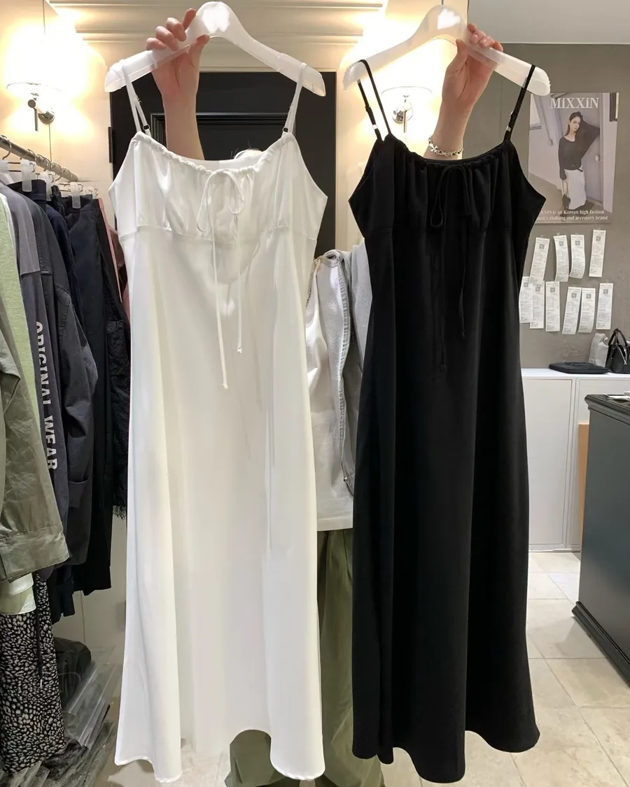 熱門代購| K315 法式微光抽繩細肩長裙 2色