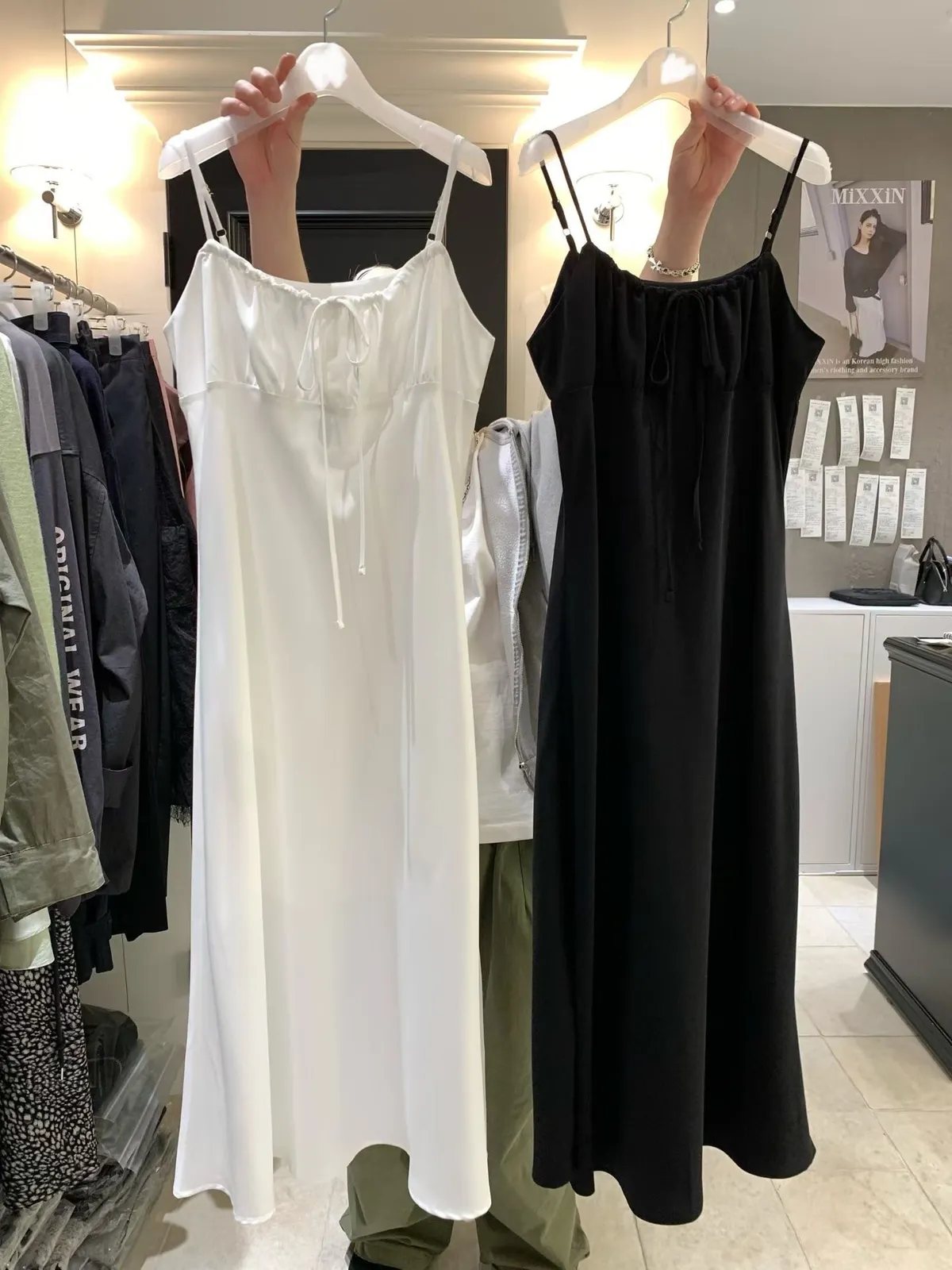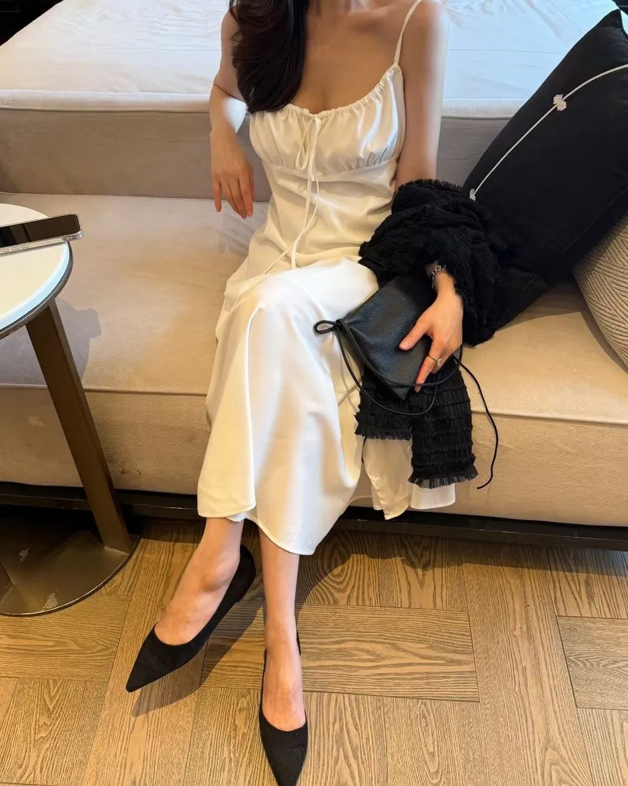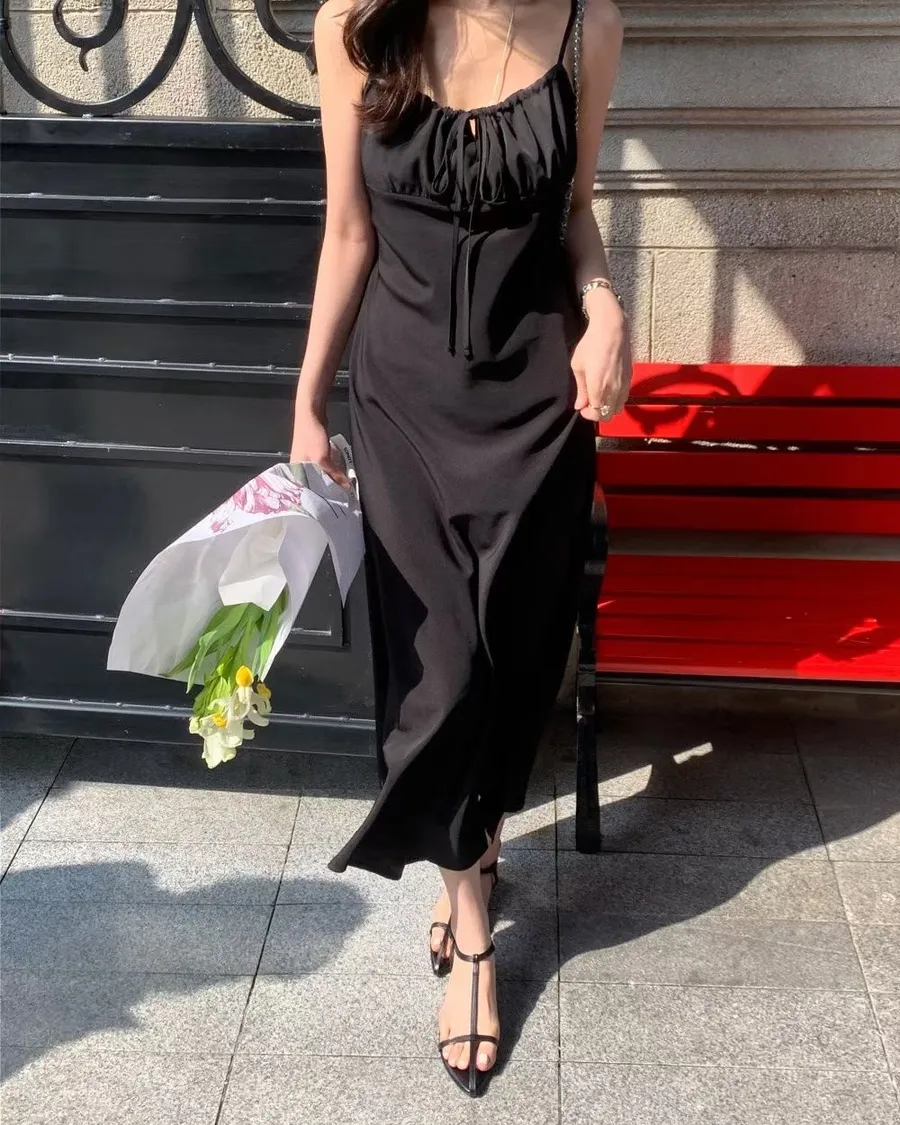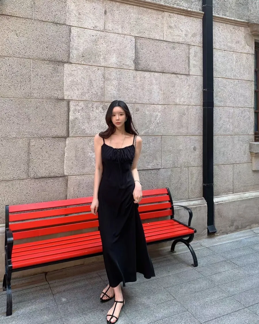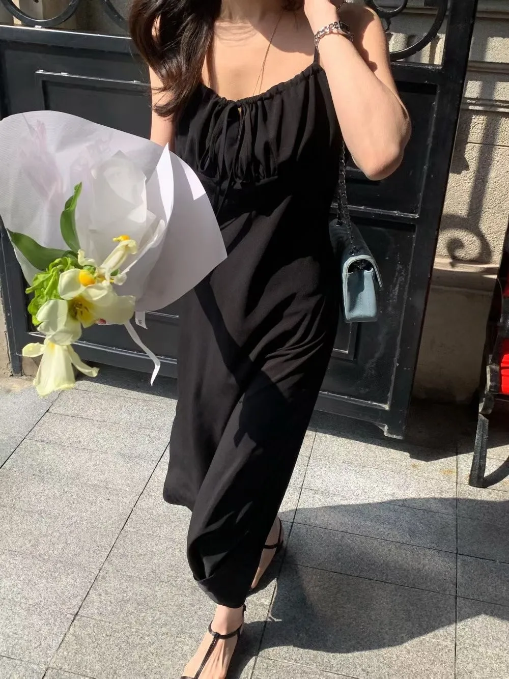熱門代購| K315 法式微光抽繩細肩長裙 2色