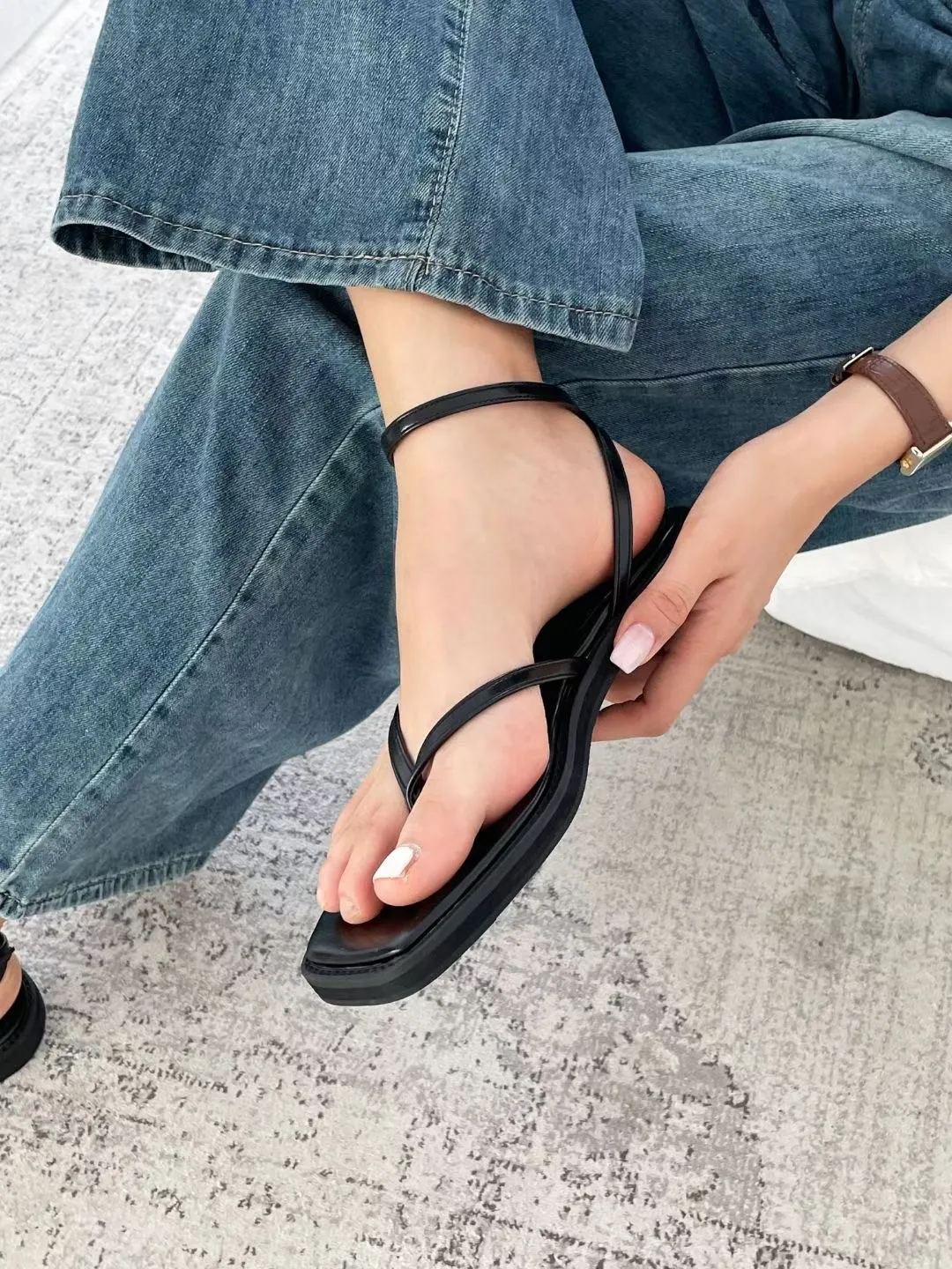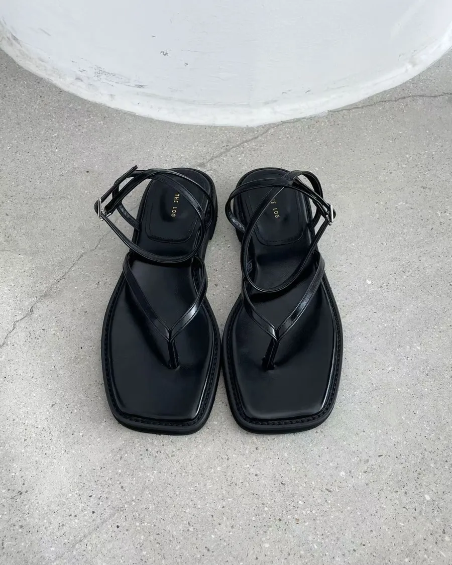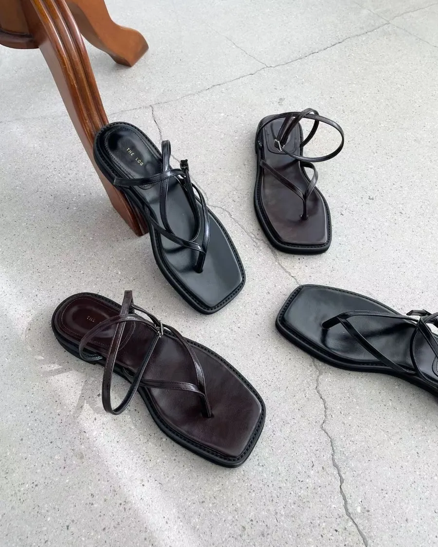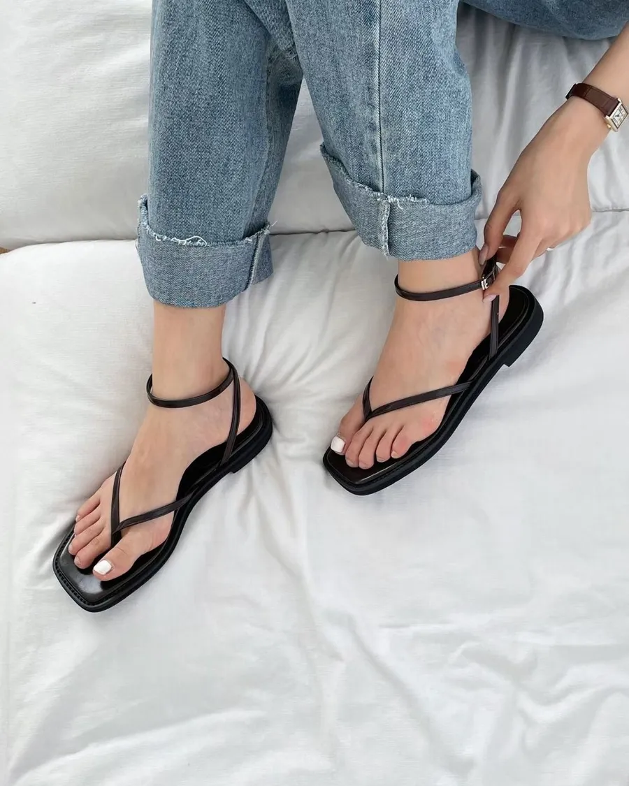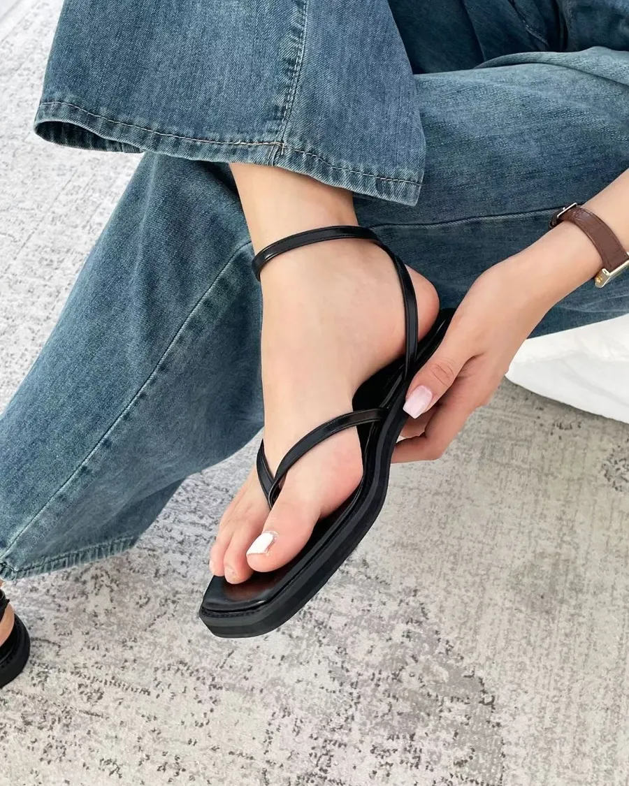 俐落時髦 夾腳繞帶平底涼鞋 2色