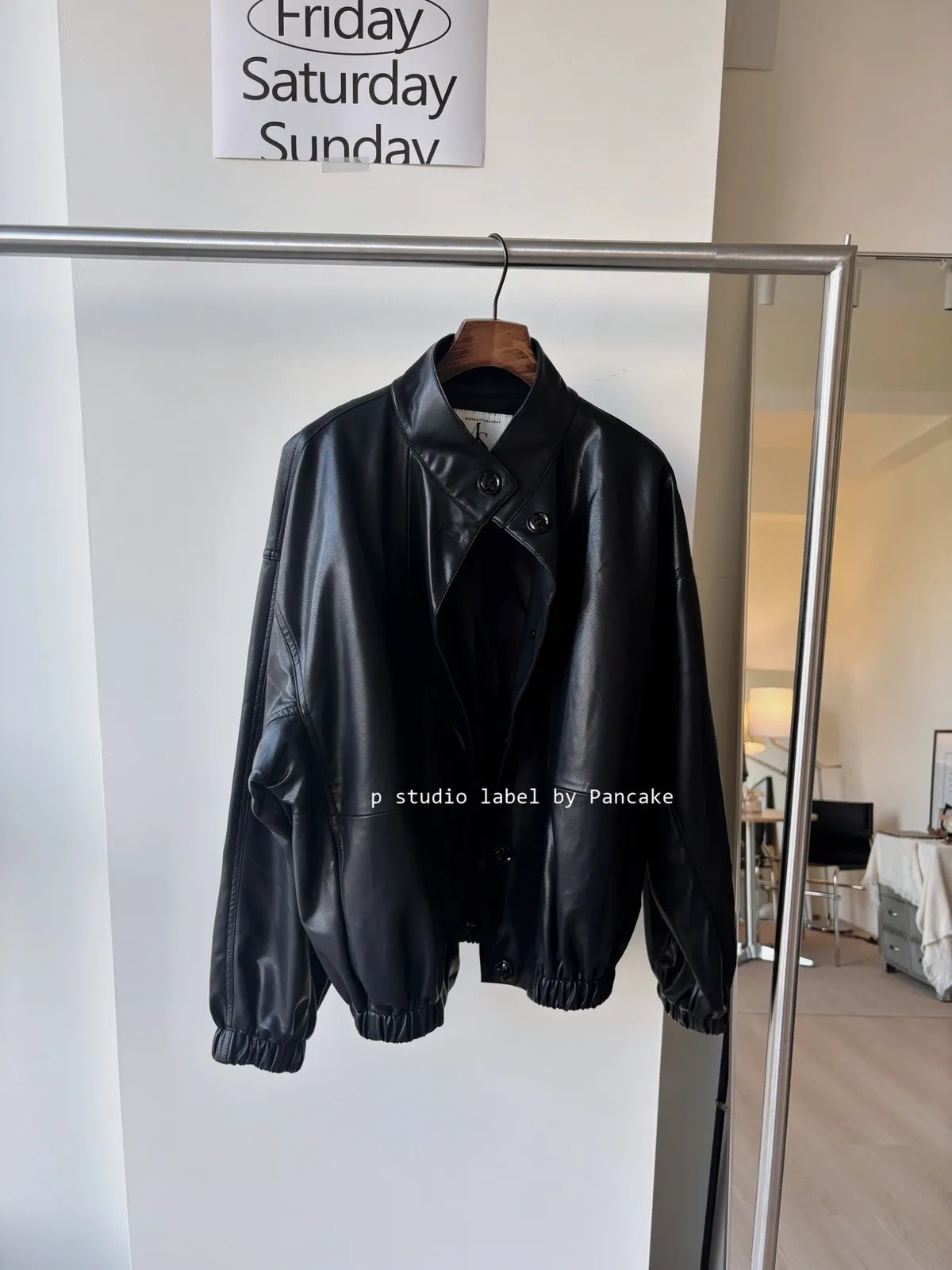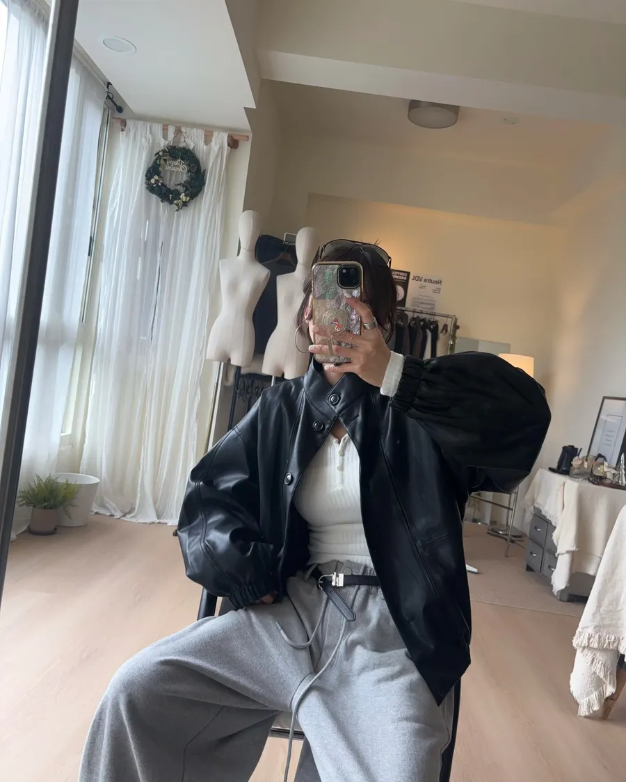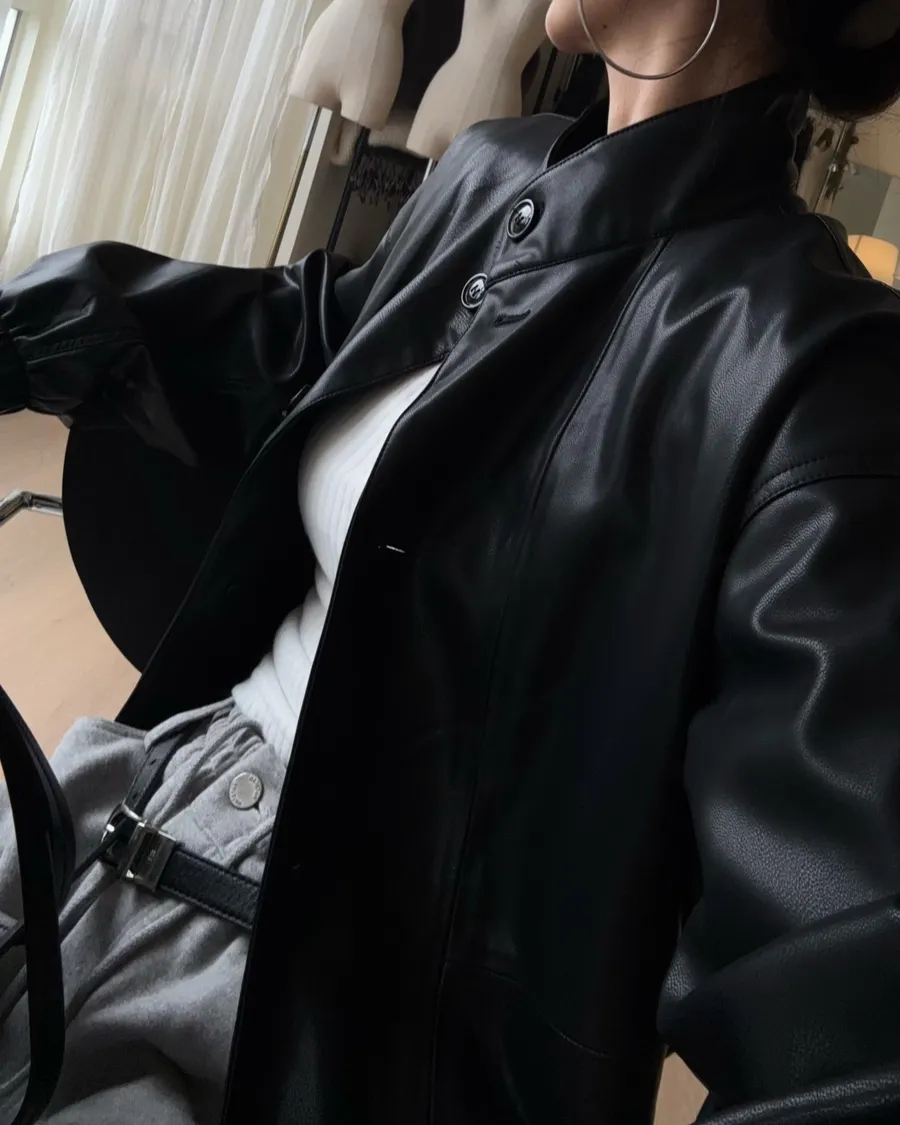 J114立領柔軟皮夾克 黑