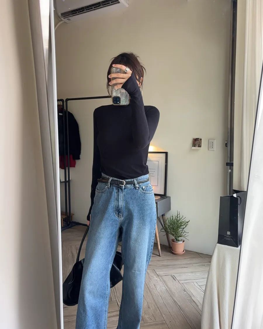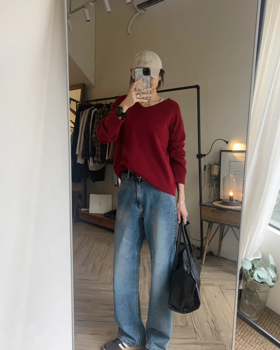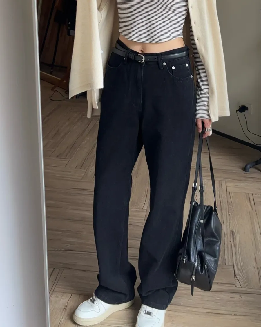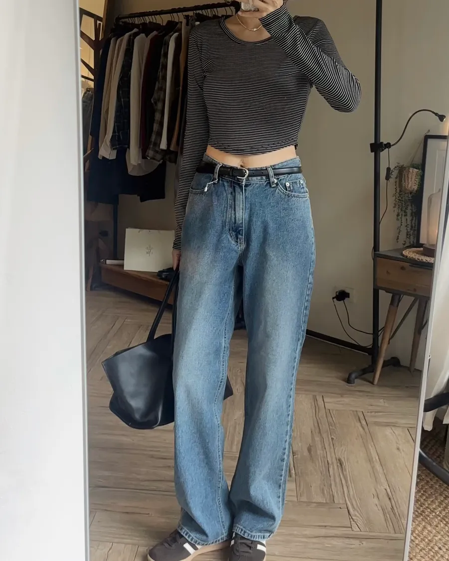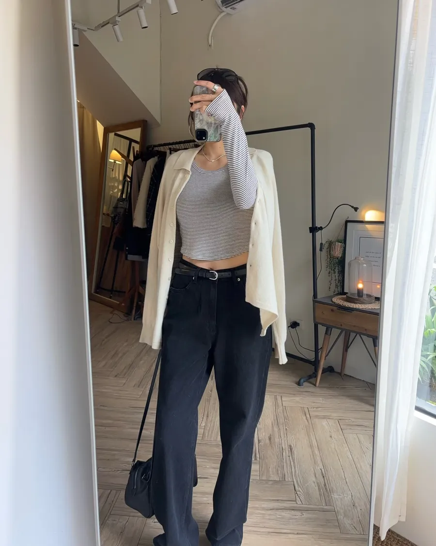 褲型看起來像寬褲,但實際上是偏收一點的寬褲版
