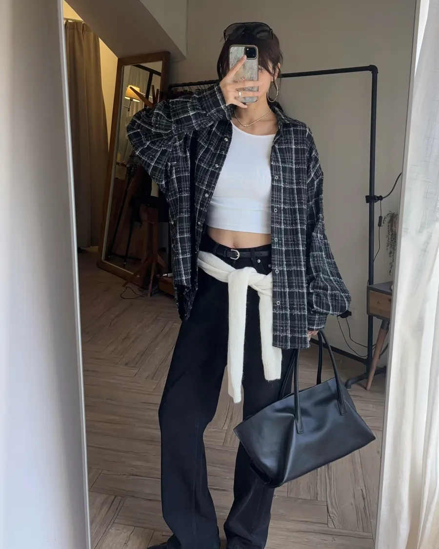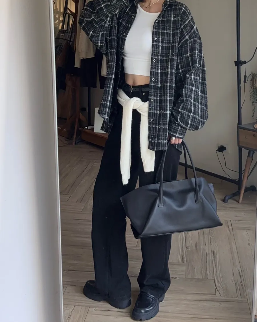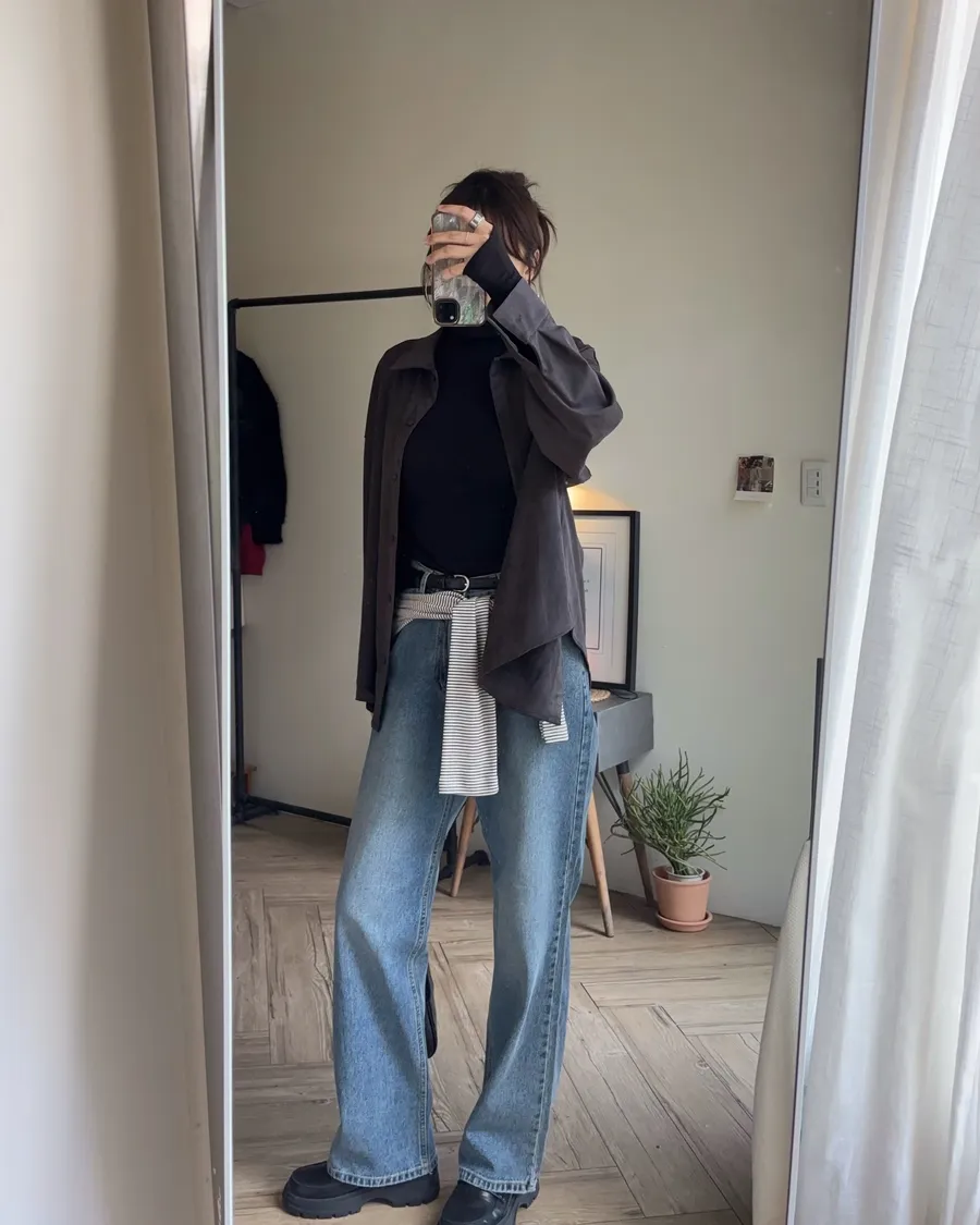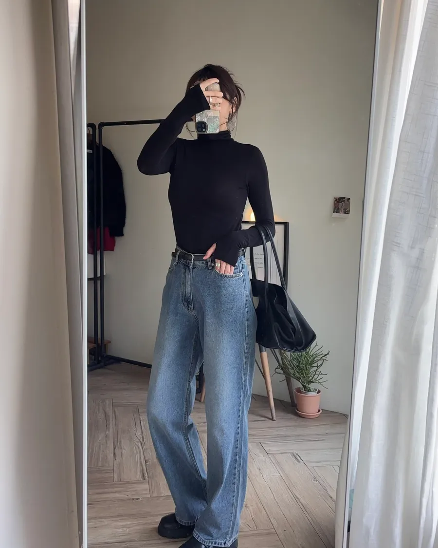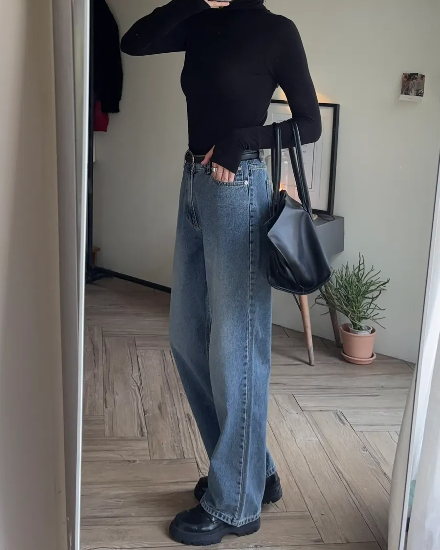 褲型看起來像寬褲,但實際上是偏收一點的寬褲版