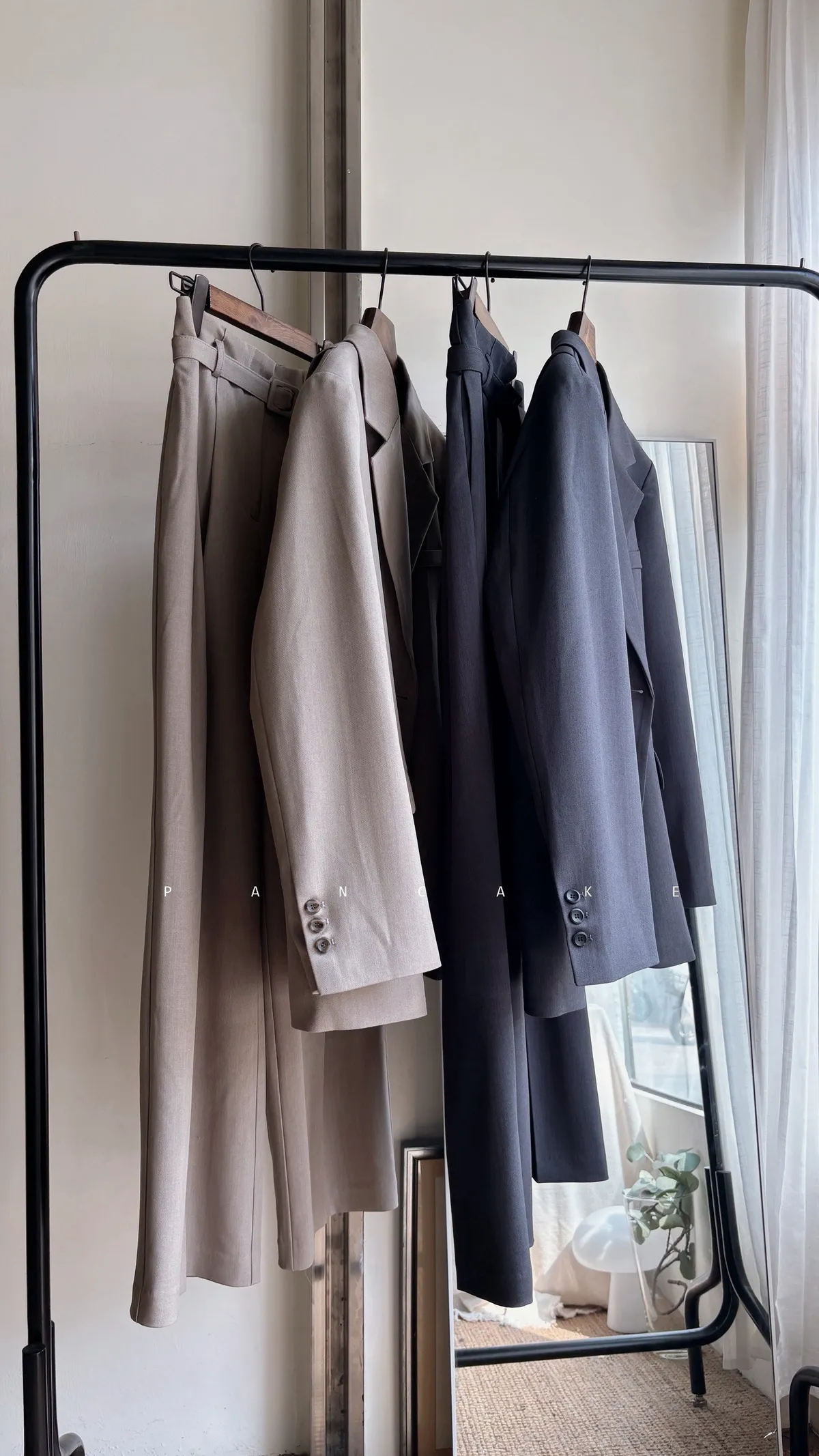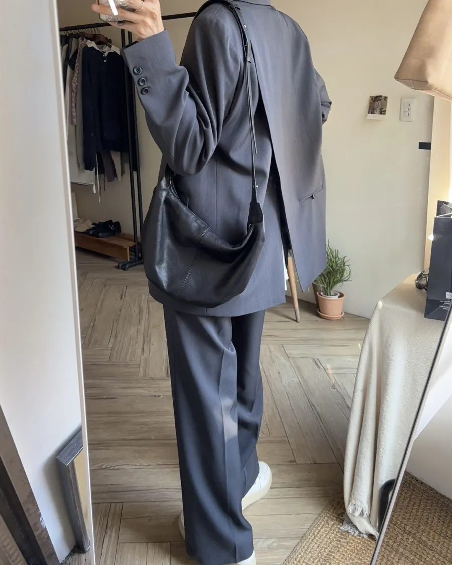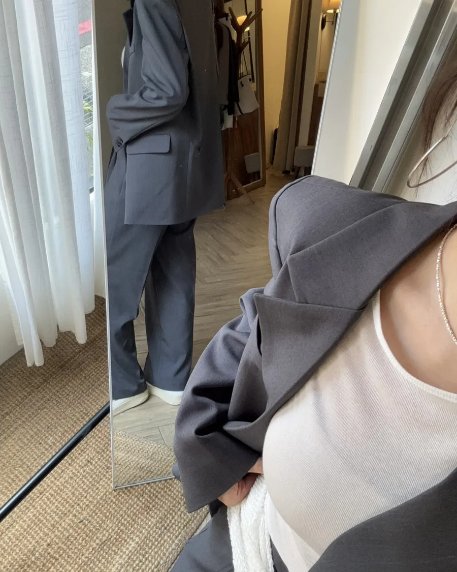 後開叉設計感墊肩西外 灰
