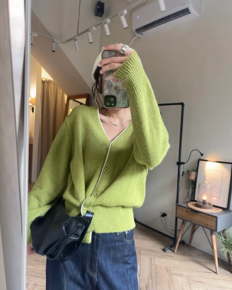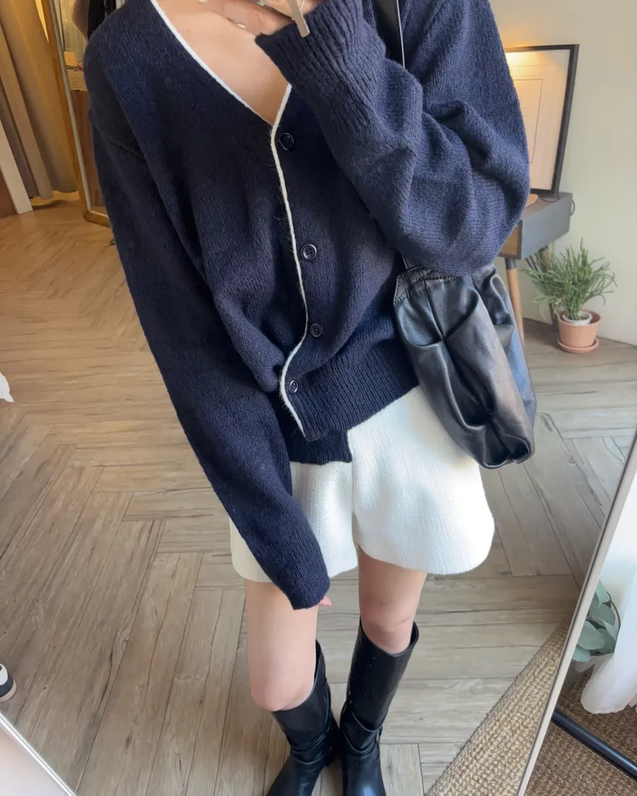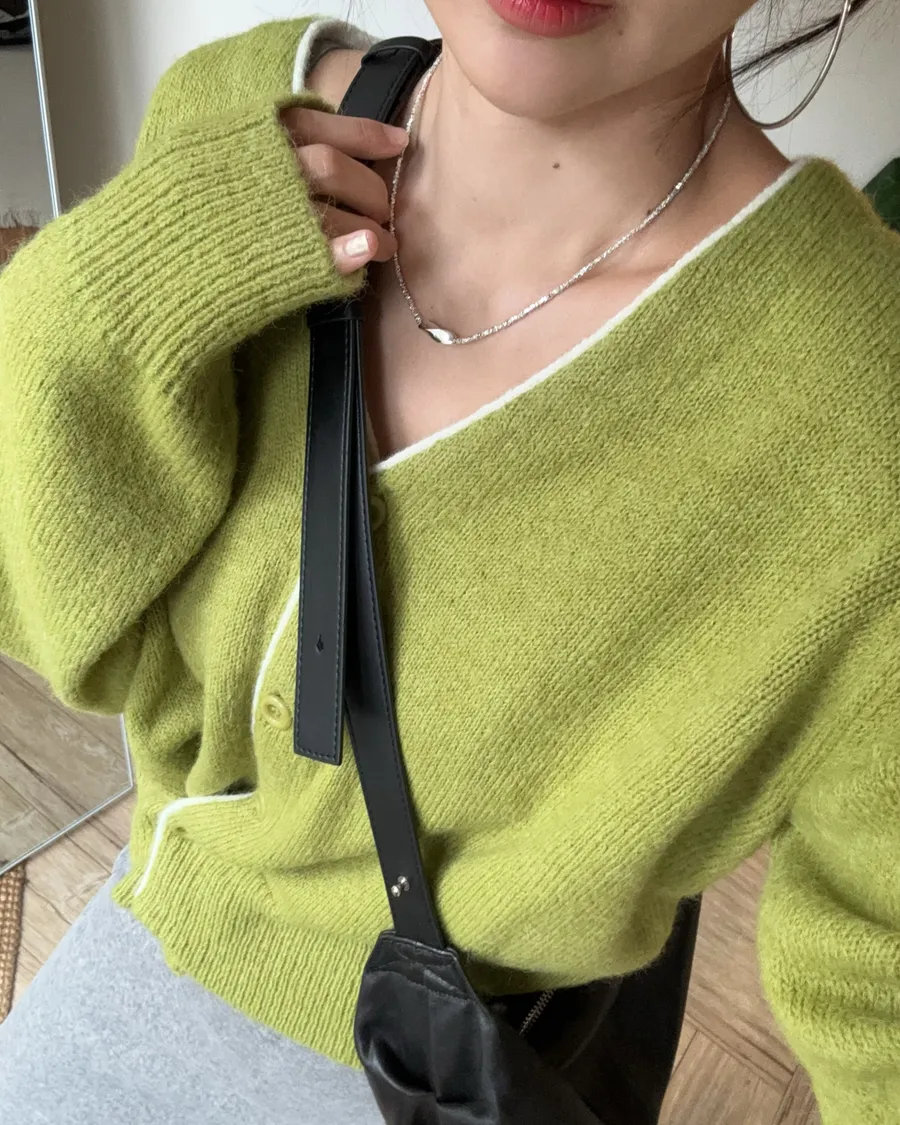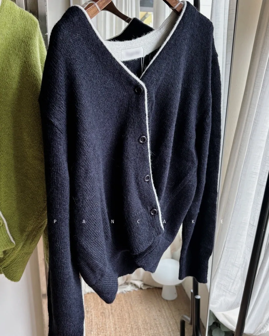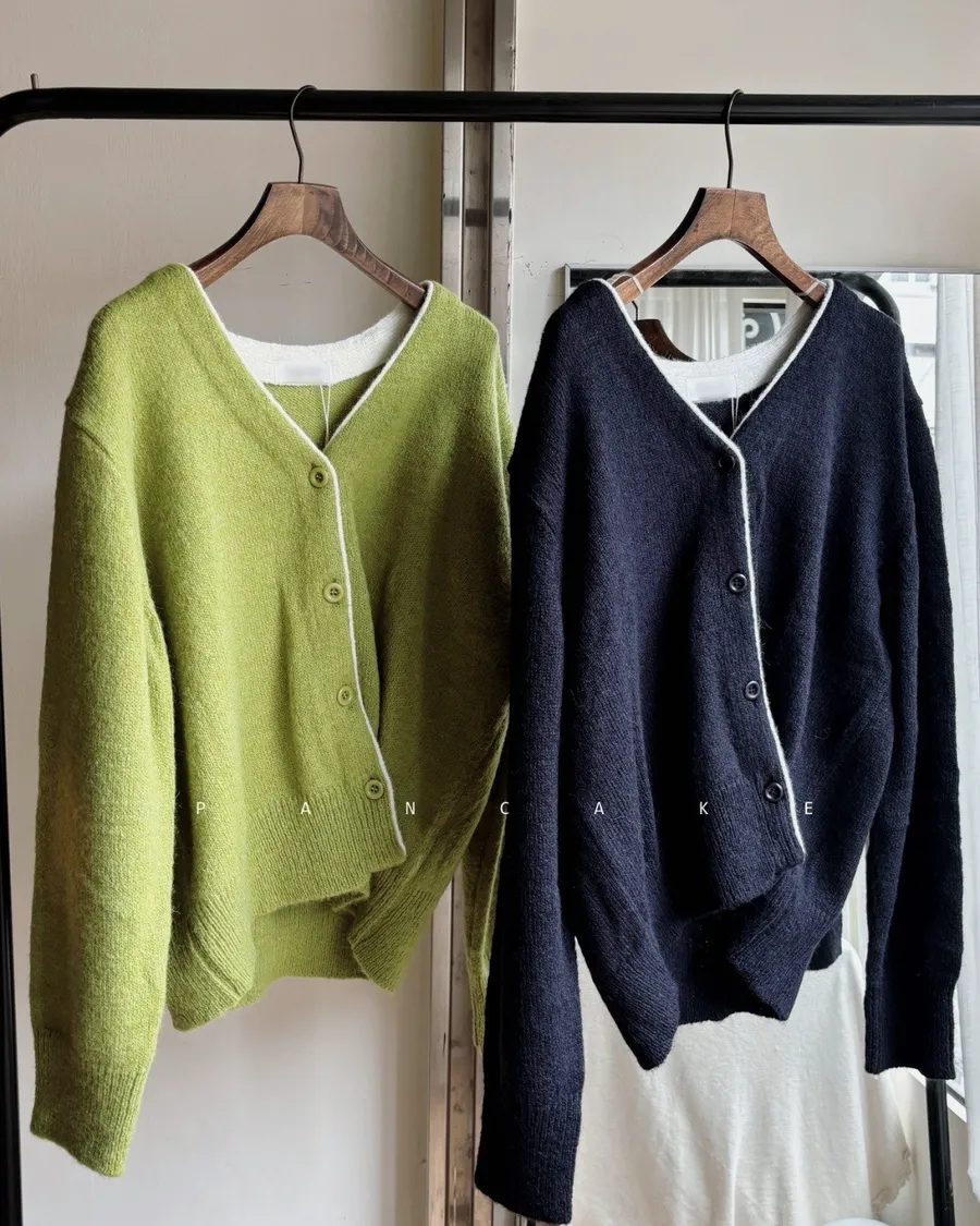 熱賣重上 細滾邊配色斜釦織衫 2色