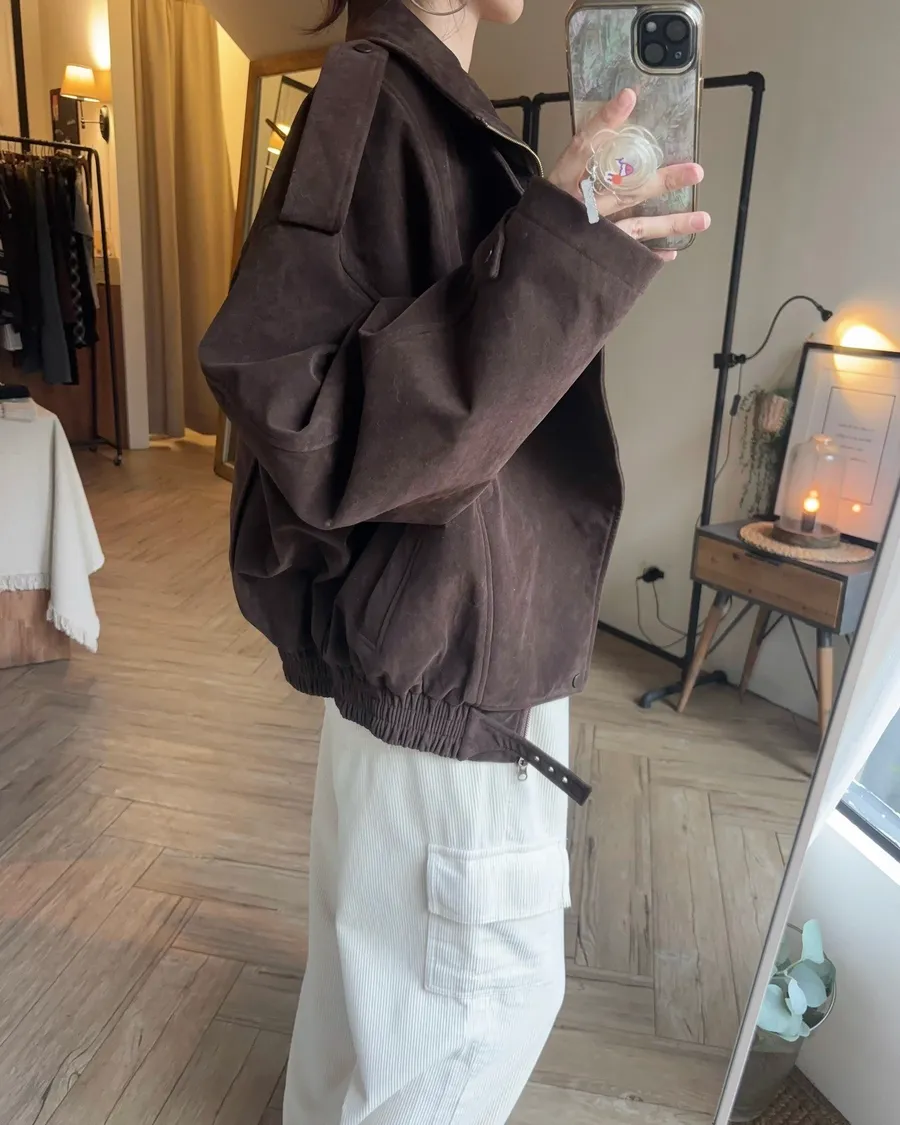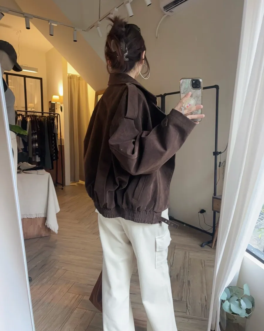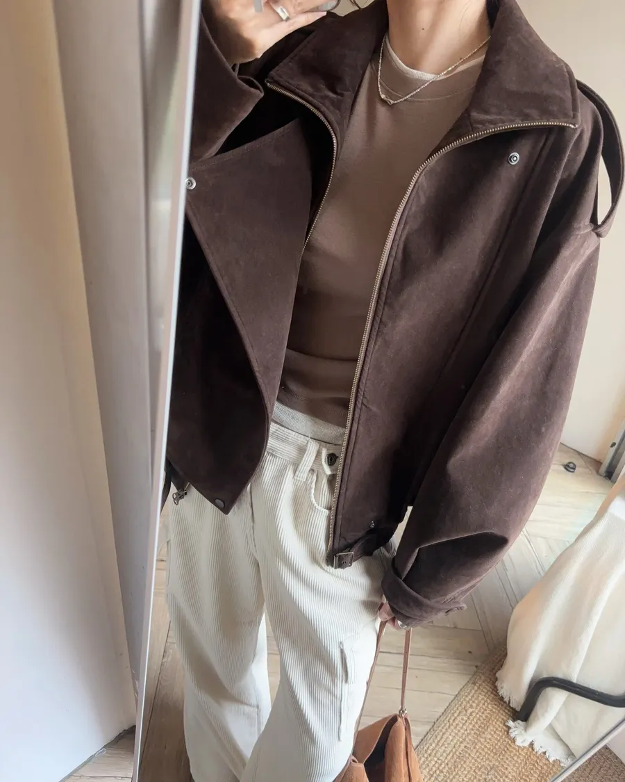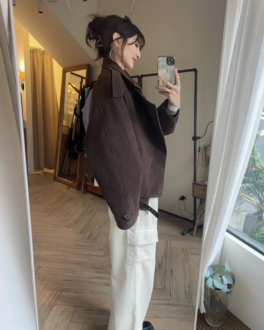 咖啡挺質麂皮騎士夾克