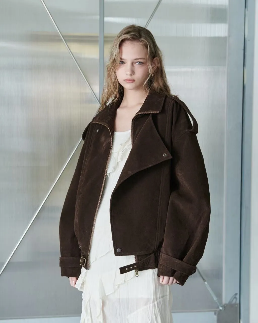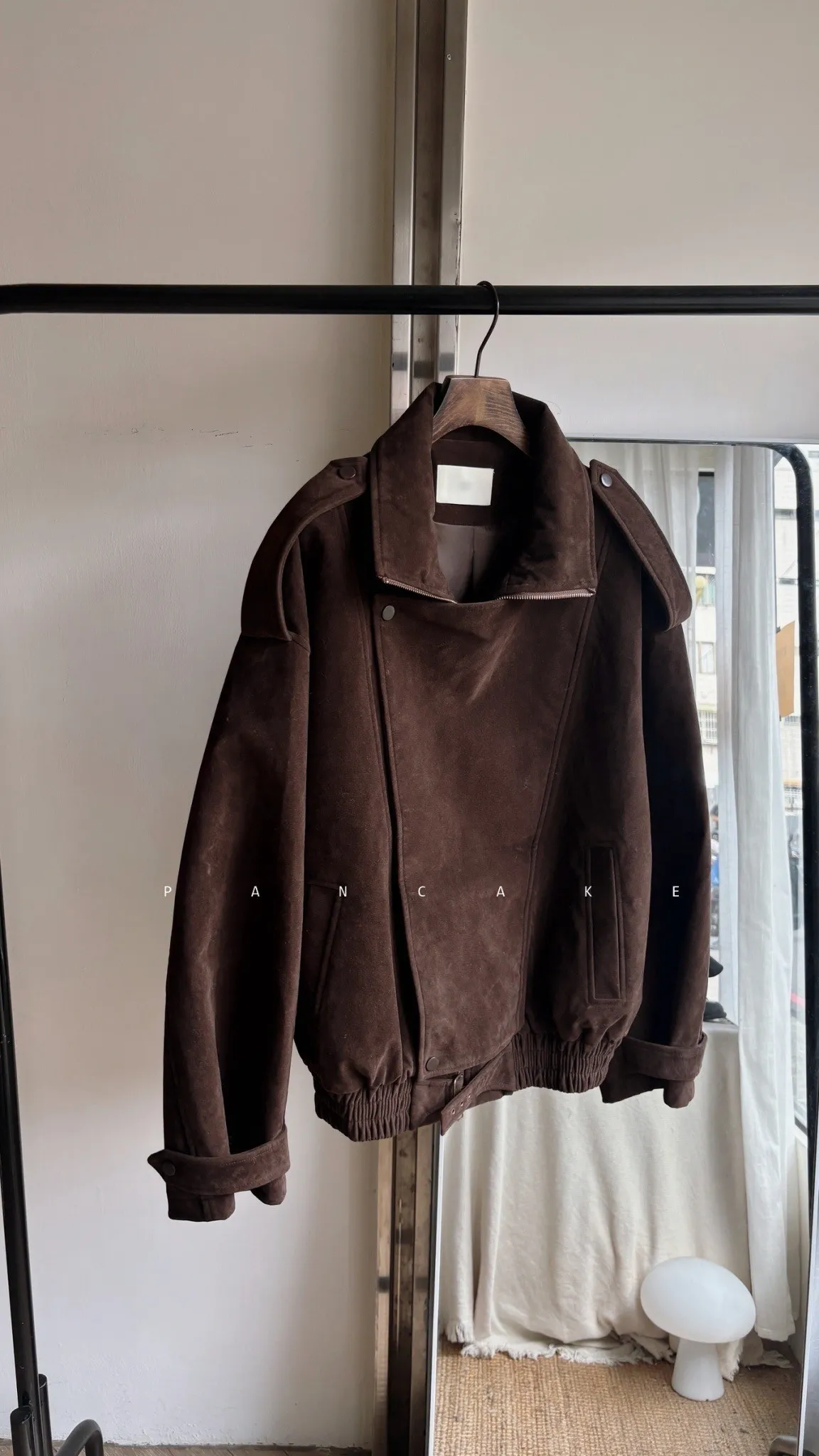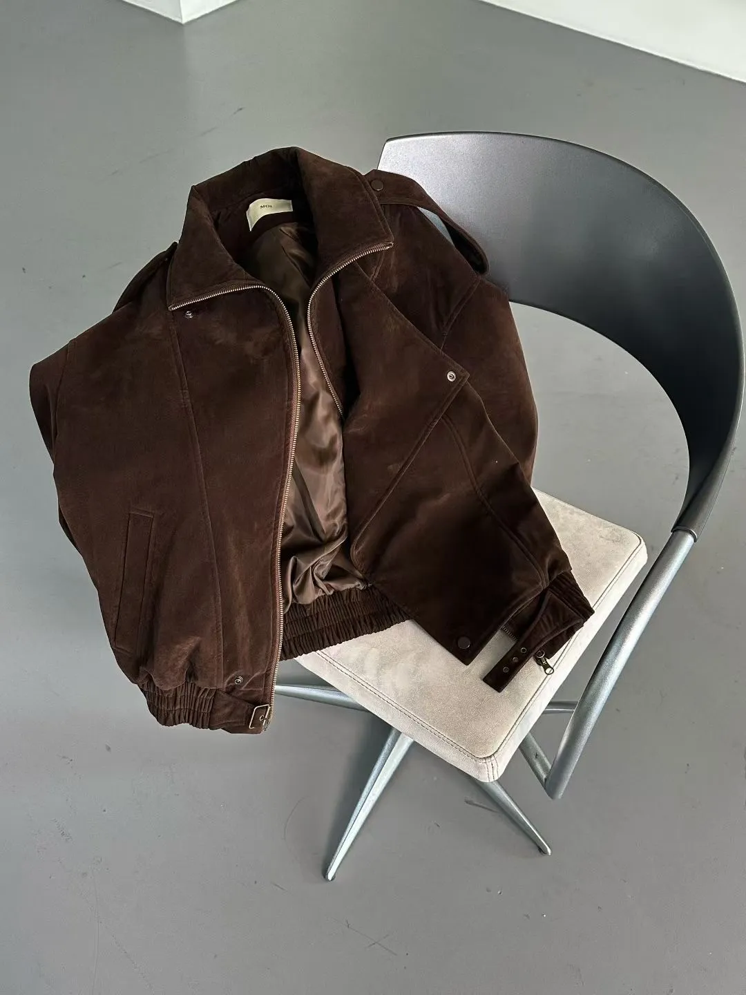 咖啡挺質麂皮騎士夾克