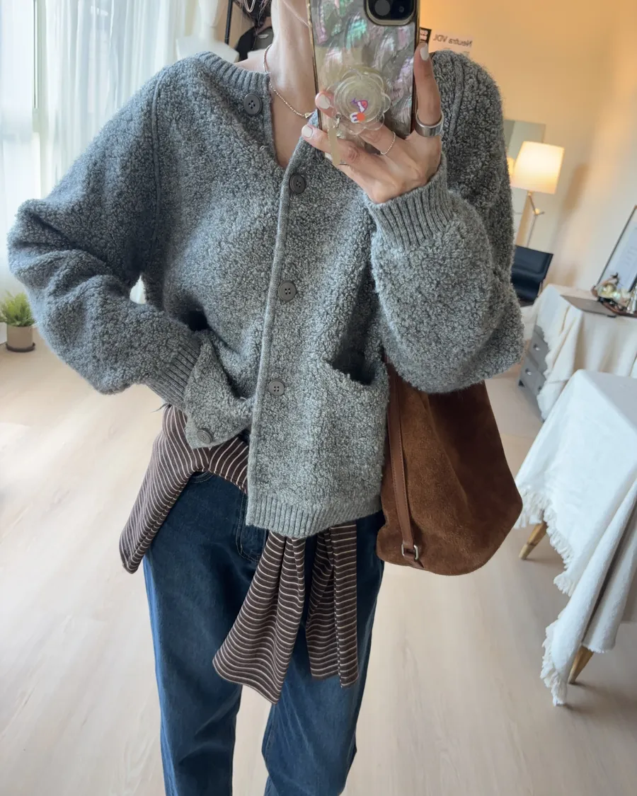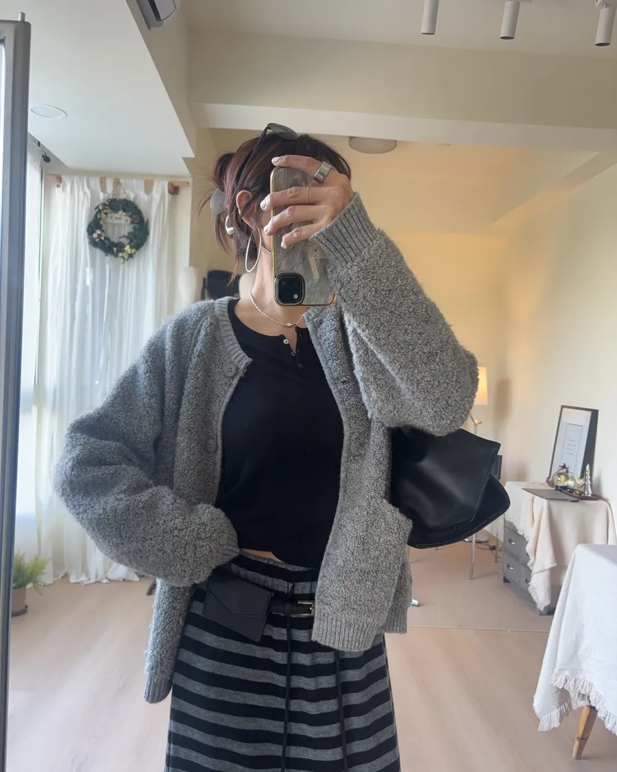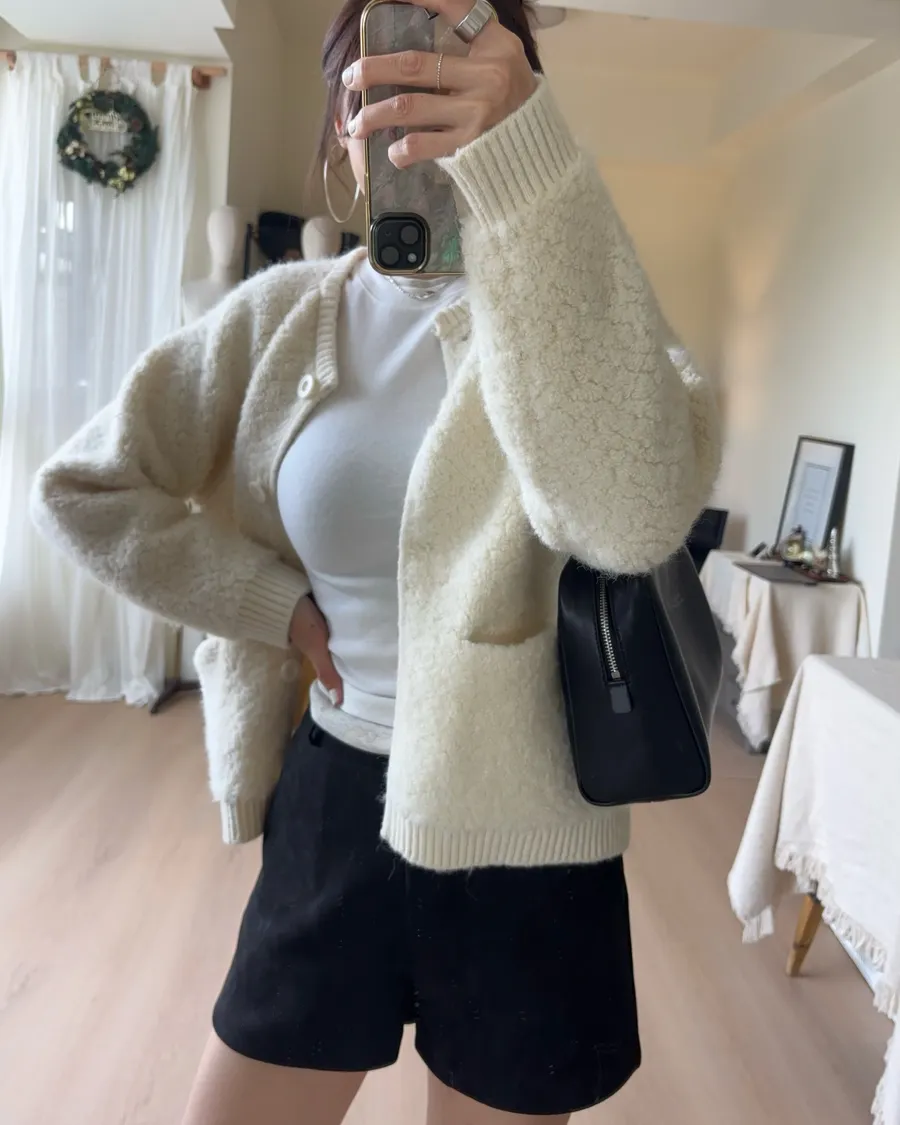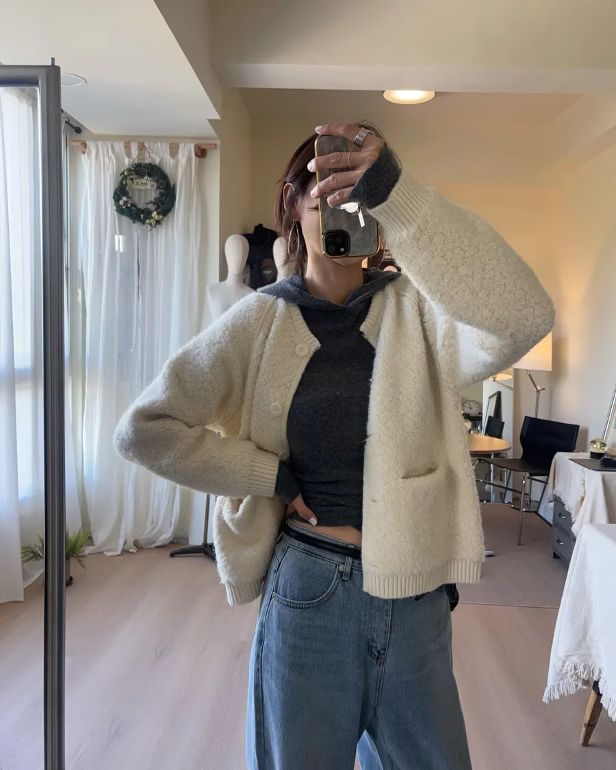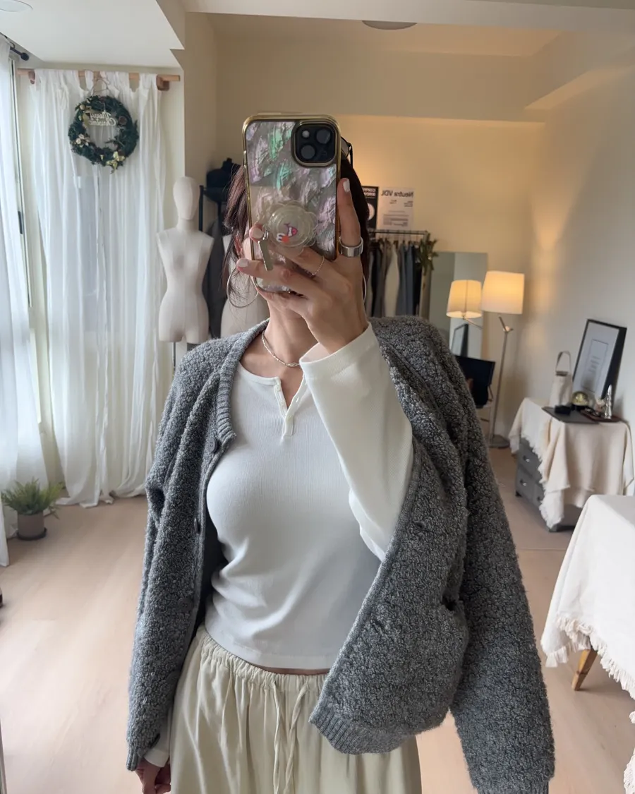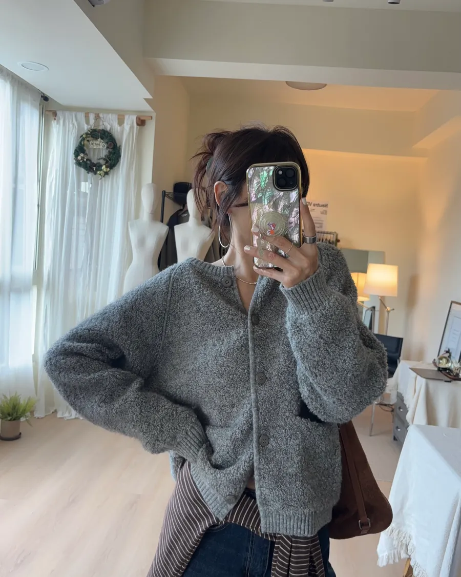 這件的材質毛顆粒近看觸感很立體