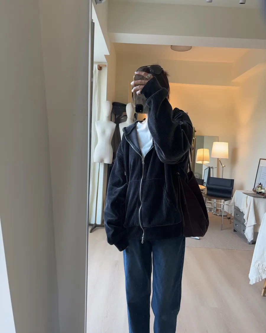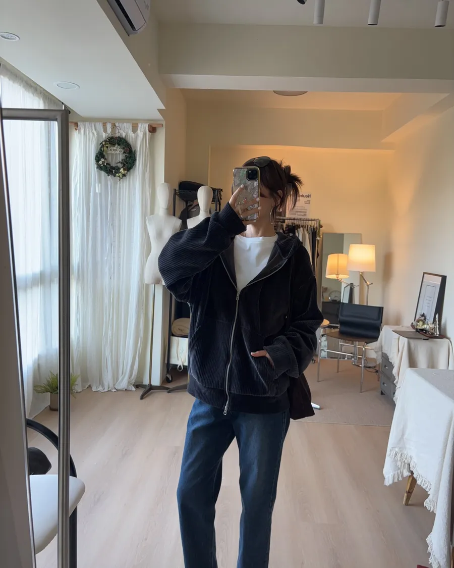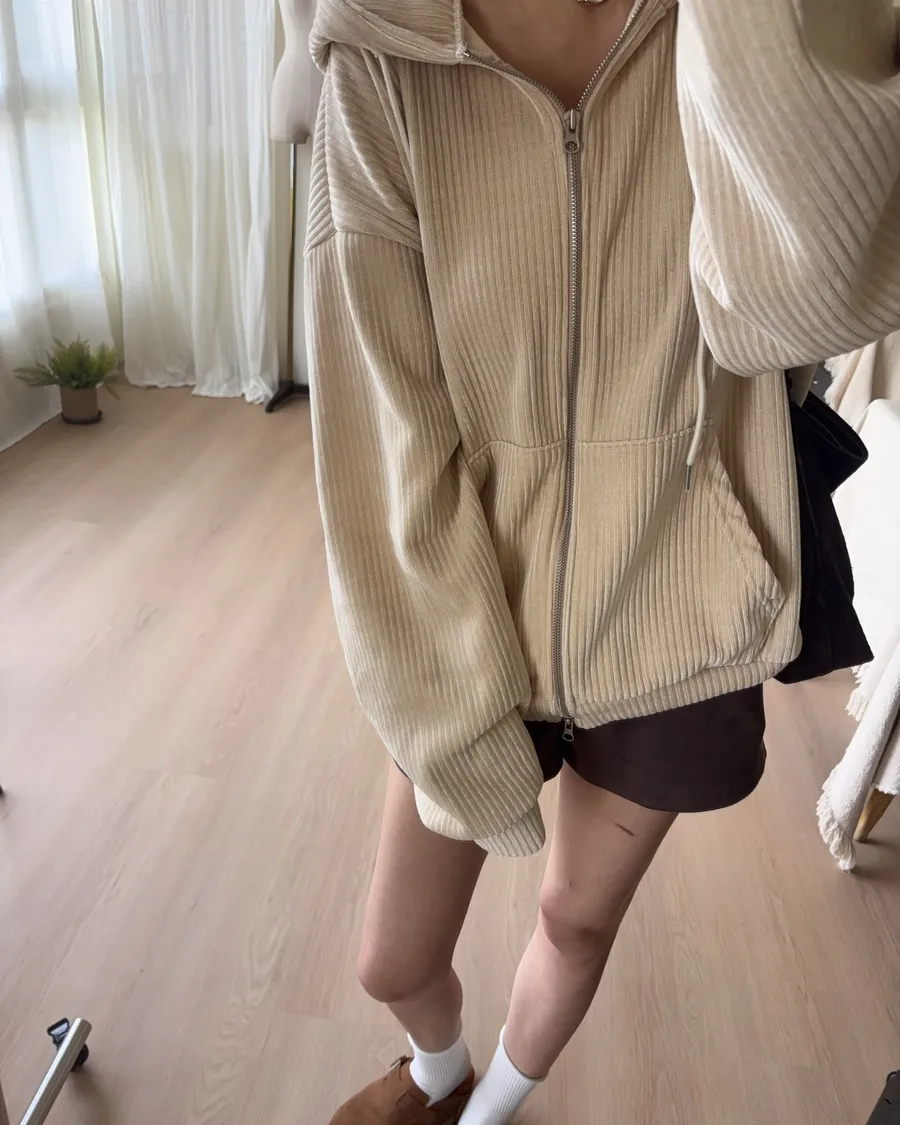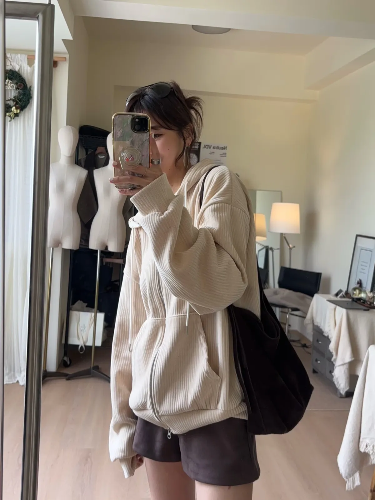 整件看起來輪廓也更立體略帶寬鬆的隨性版型拉鏈是上下雙開的穿著變化度更多