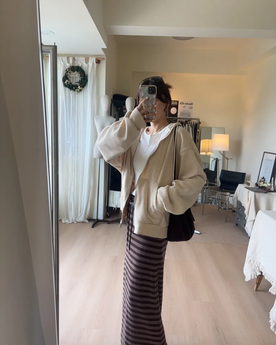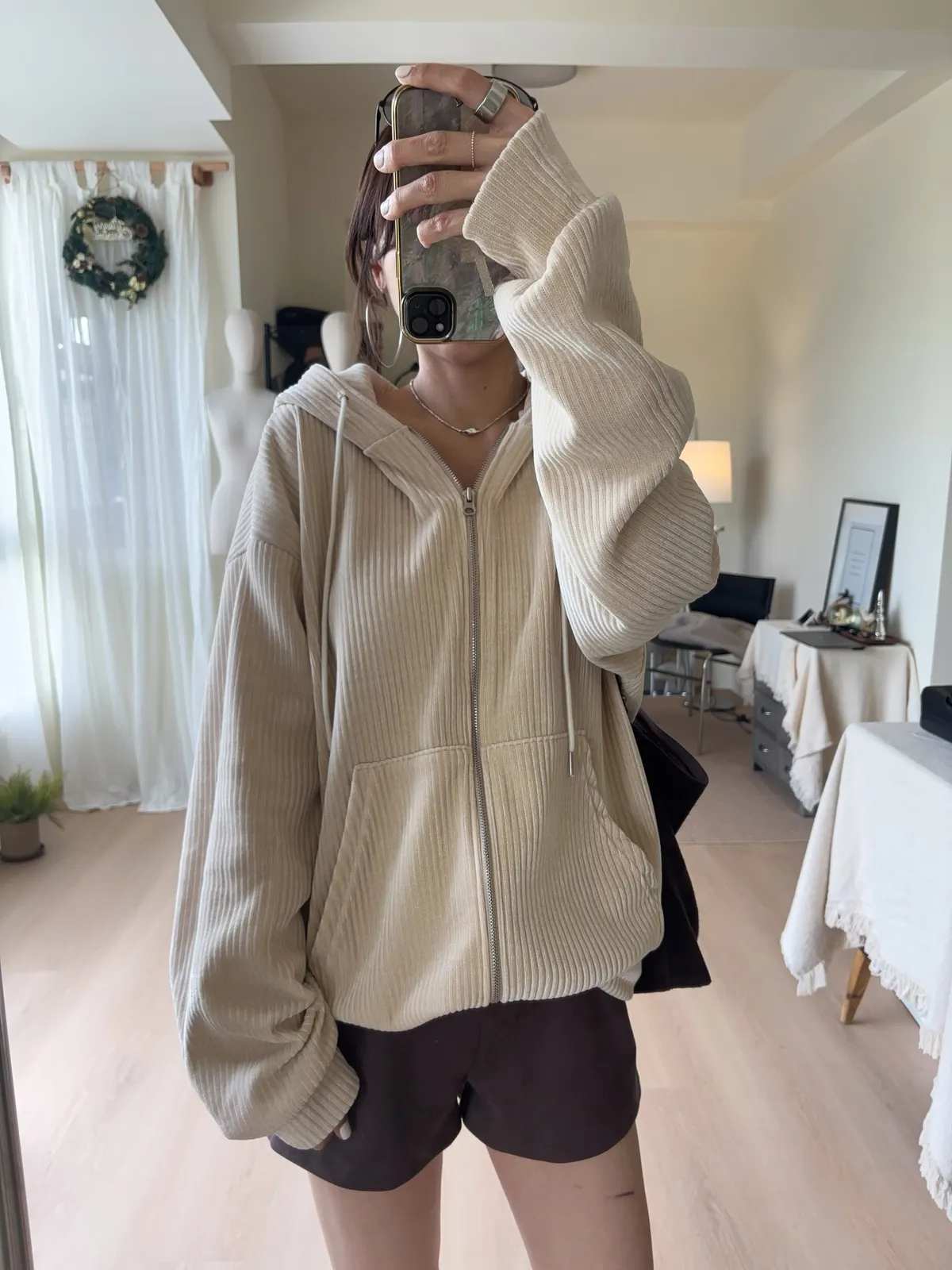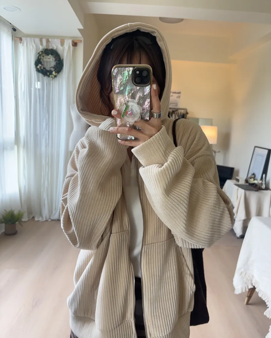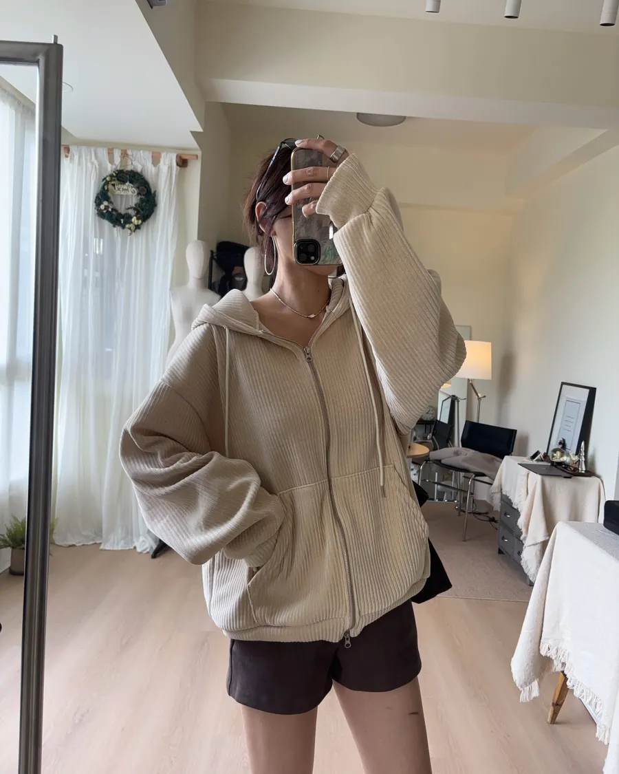 整件看起來輪廓也更立體略帶寬鬆的隨性版型拉鏈是上下雙開的穿著變化度更多