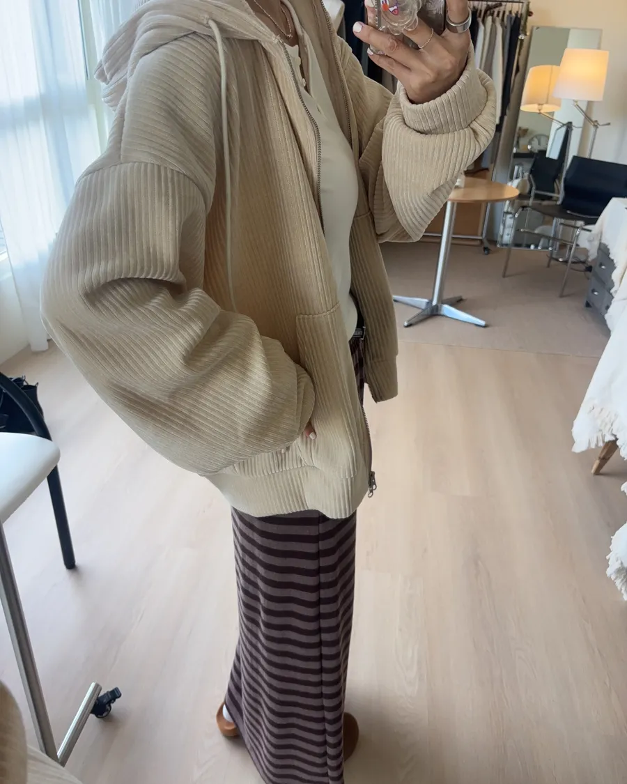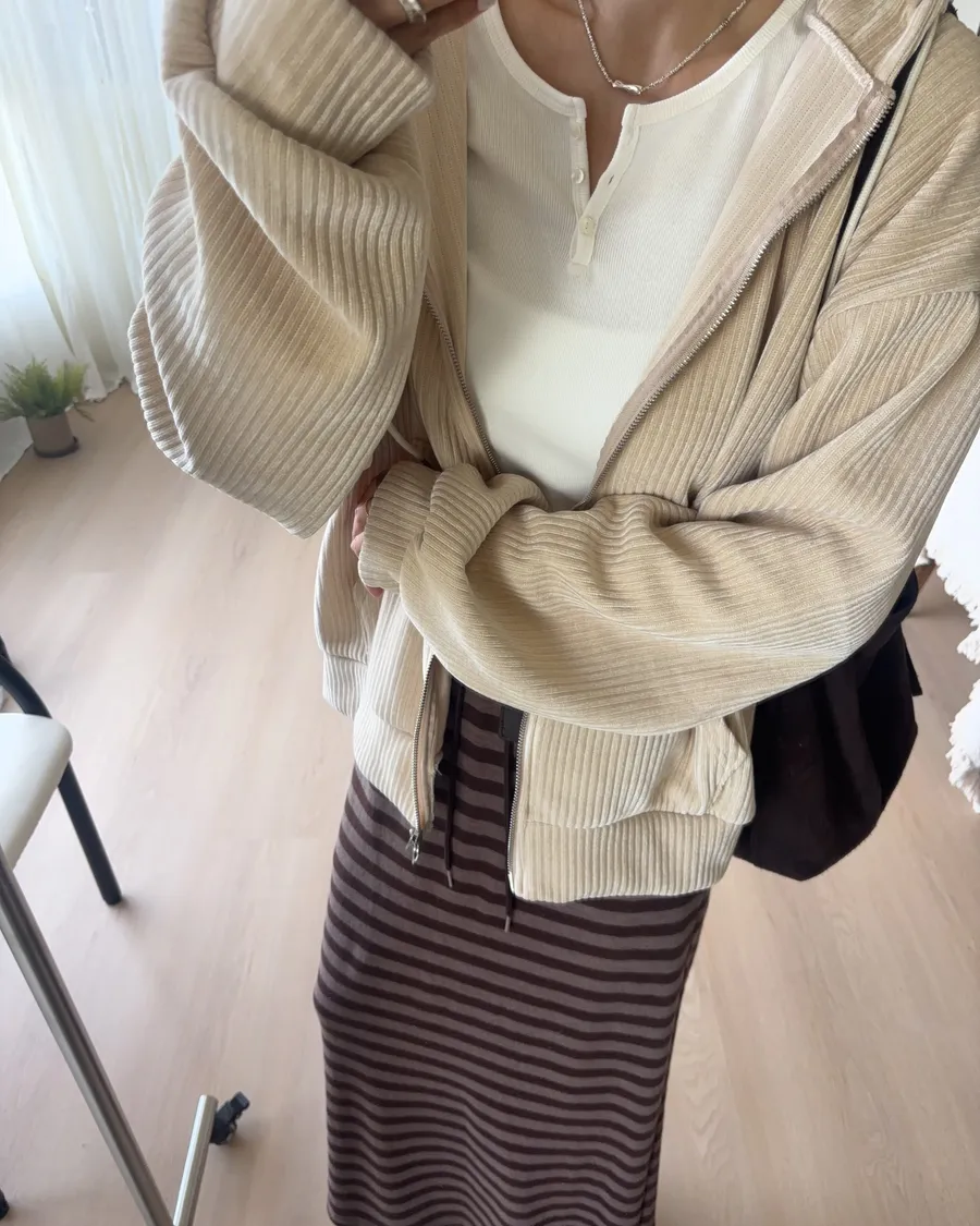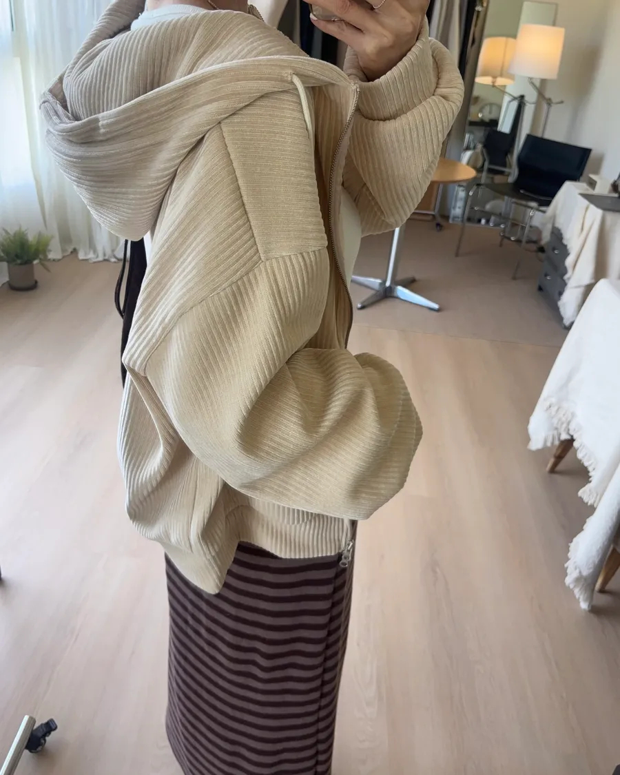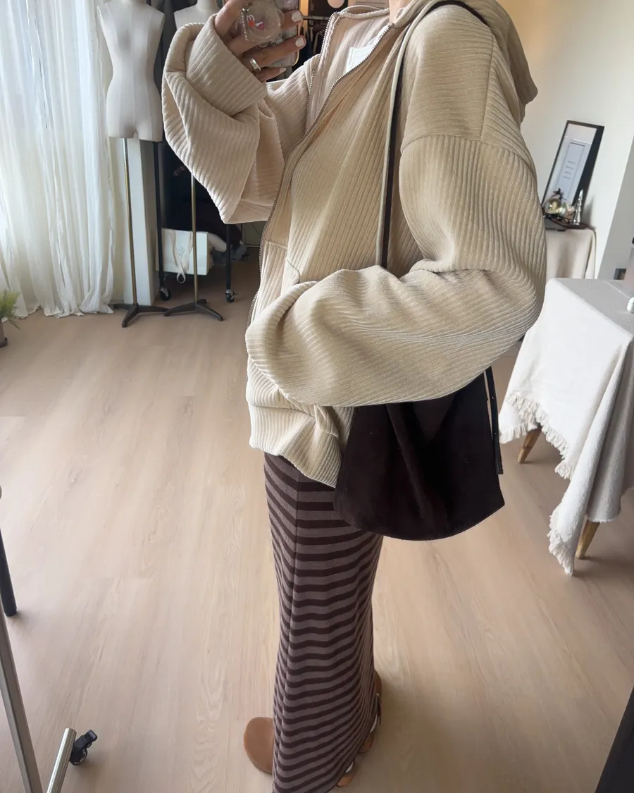 整件看起來輪廓也更立體略帶寬鬆的隨性版型拉鏈是上下雙開的穿著變化度更多