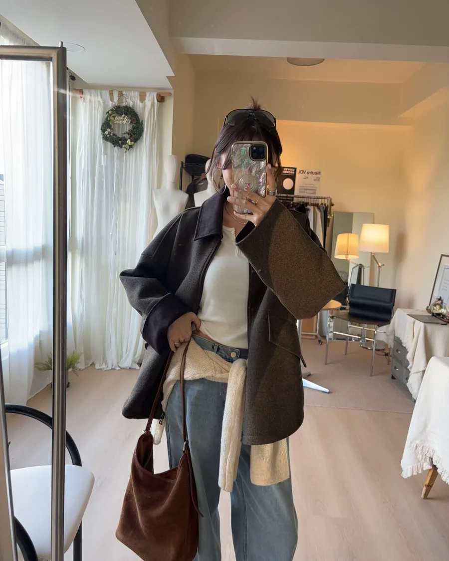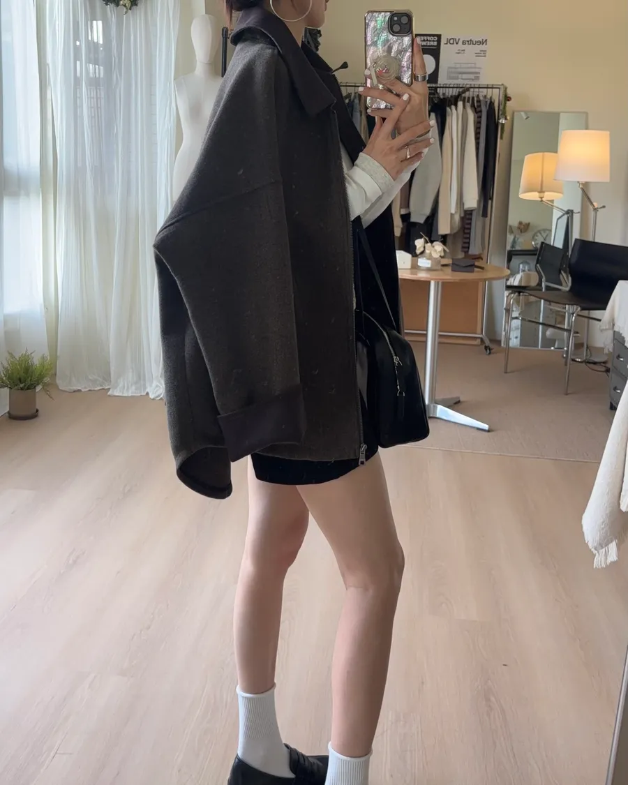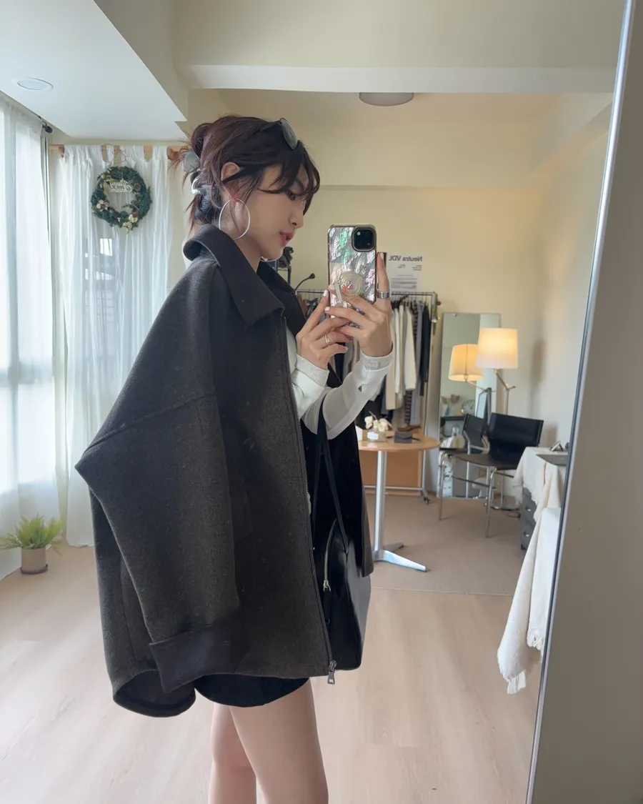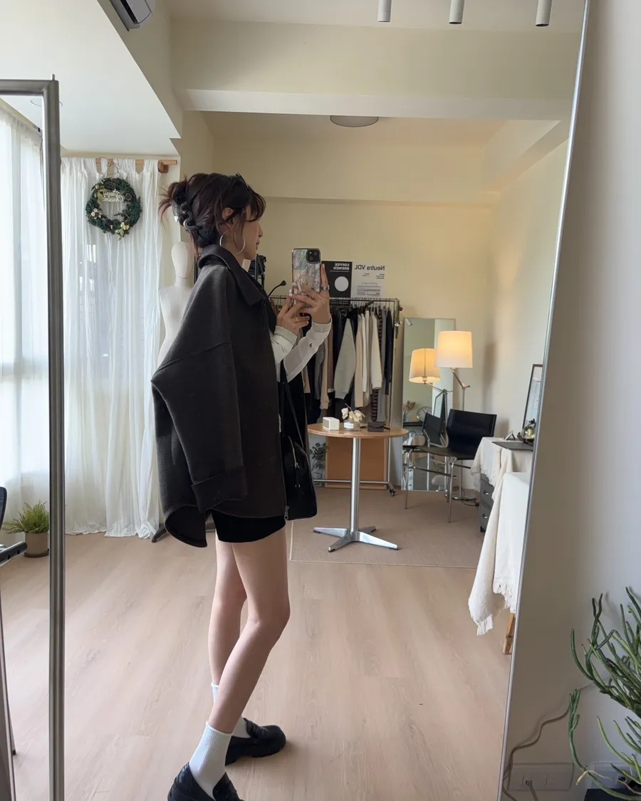 大大的落肩讓羊毛外套看起來隨性一些