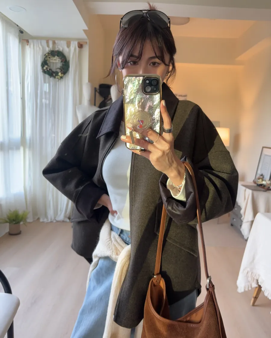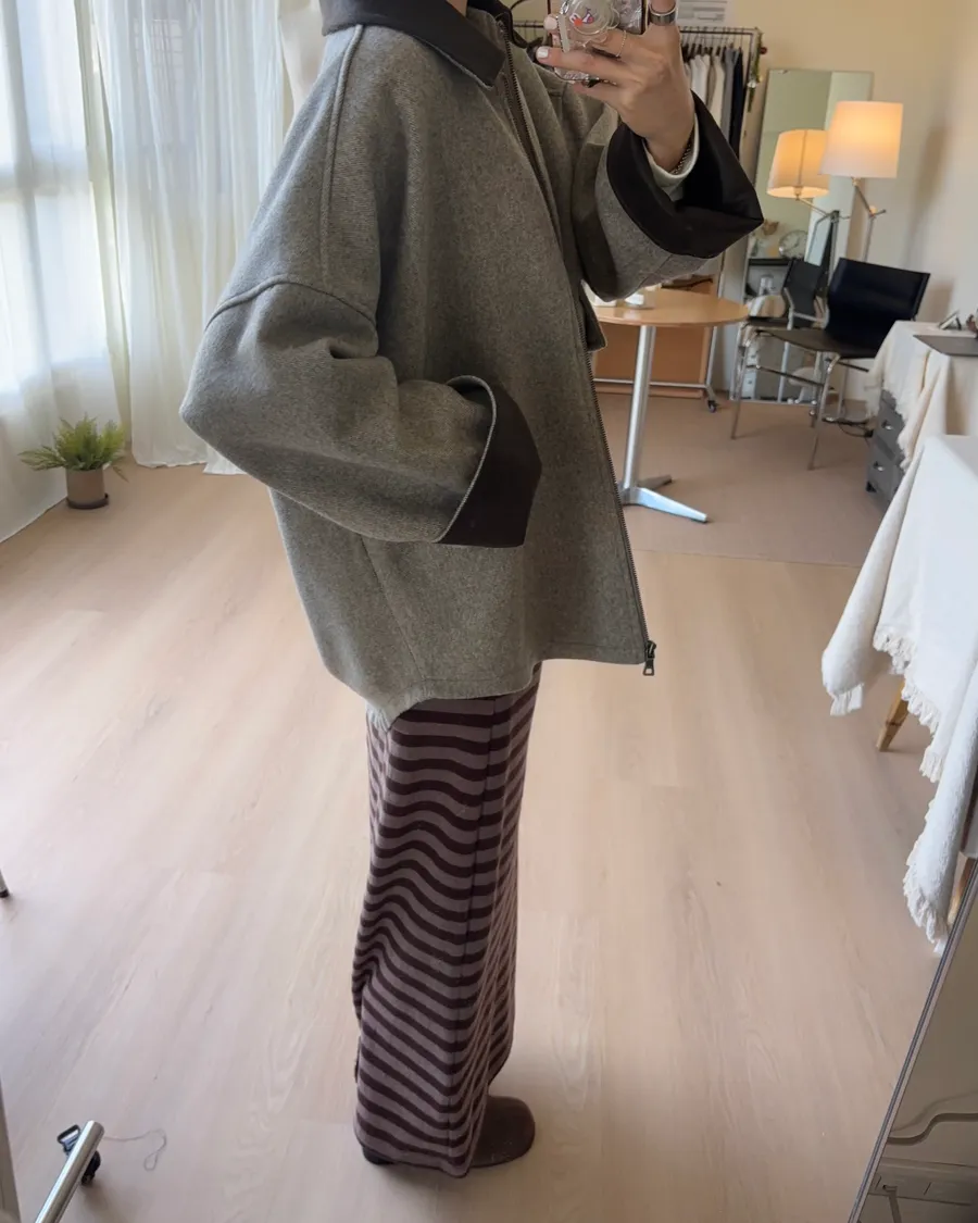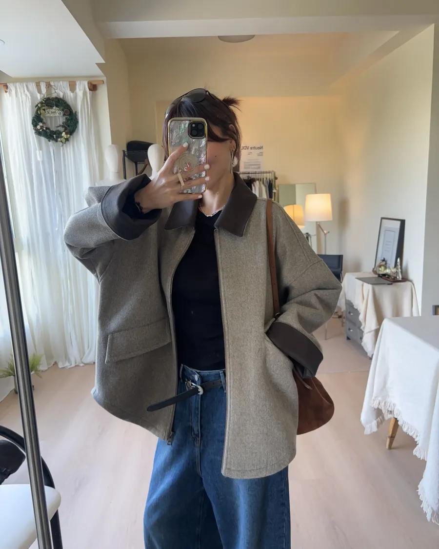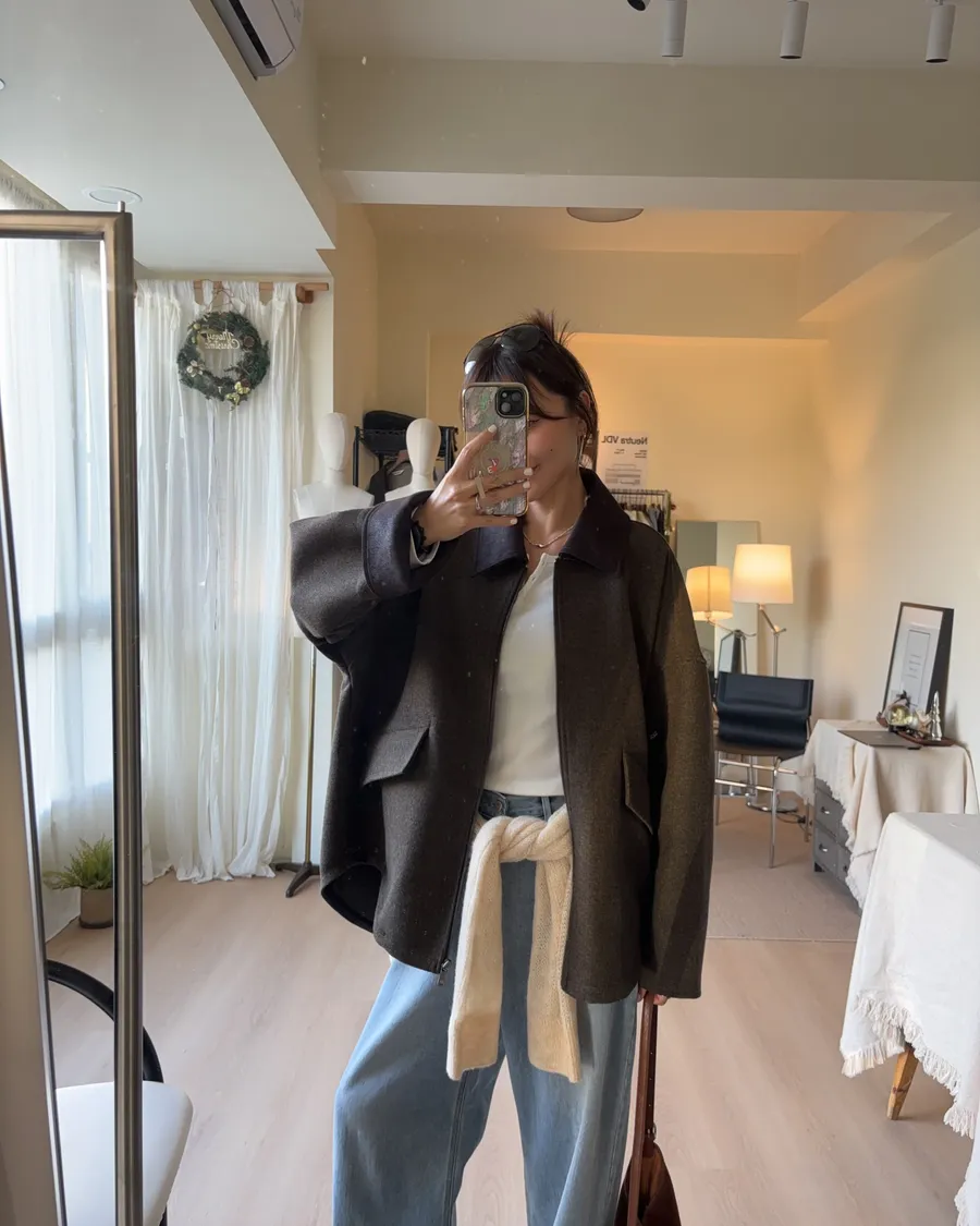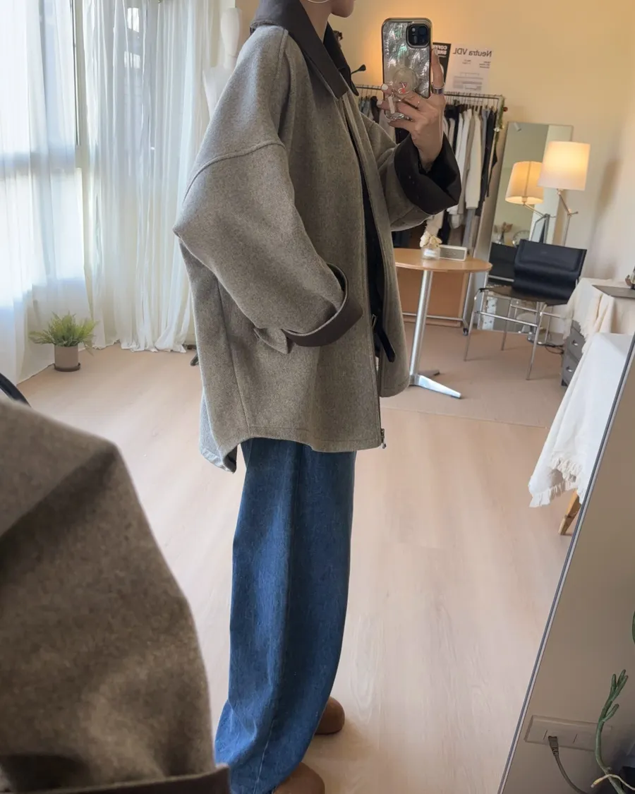 大大的落肩讓羊毛外套看起來隨性一些