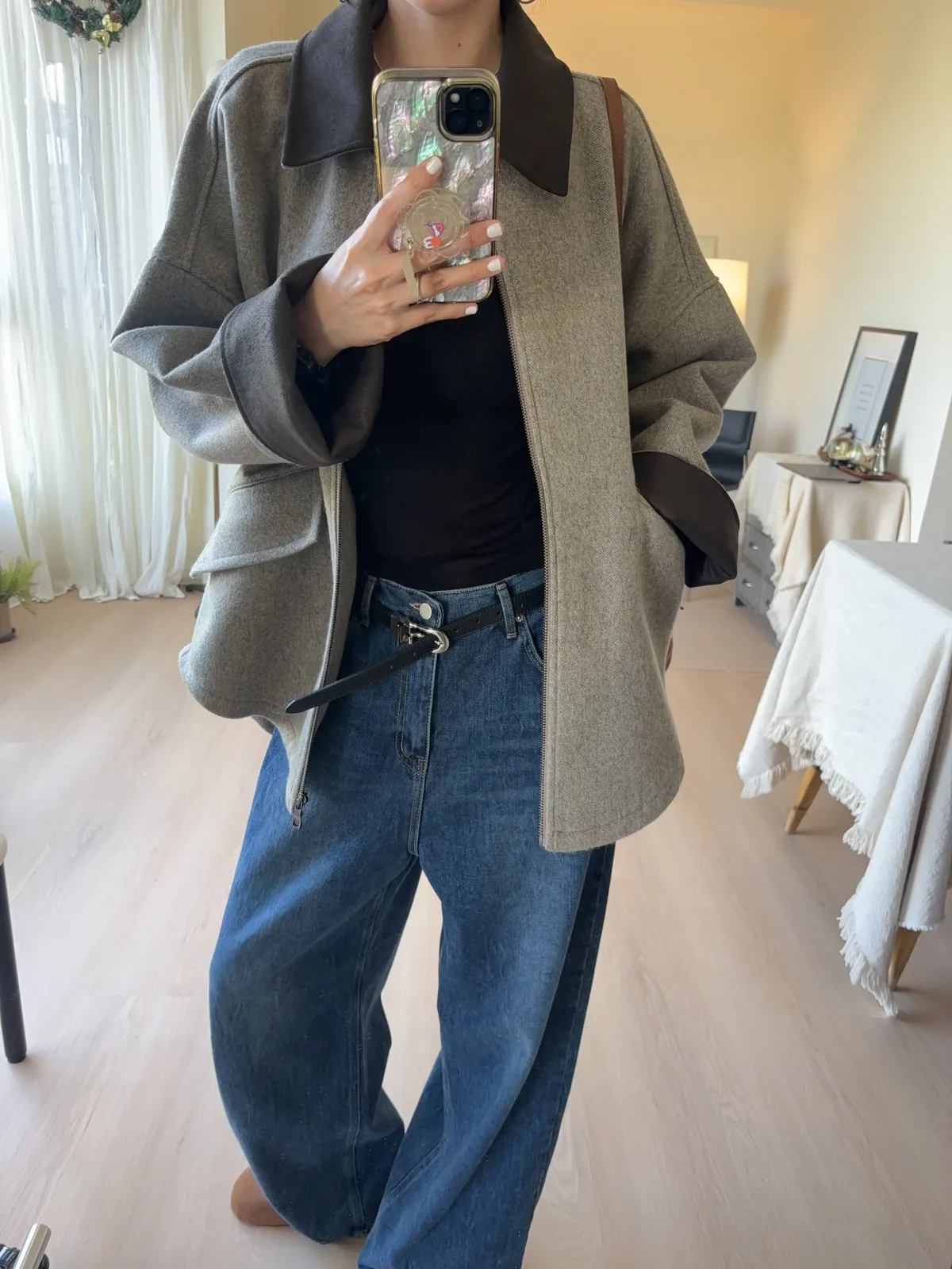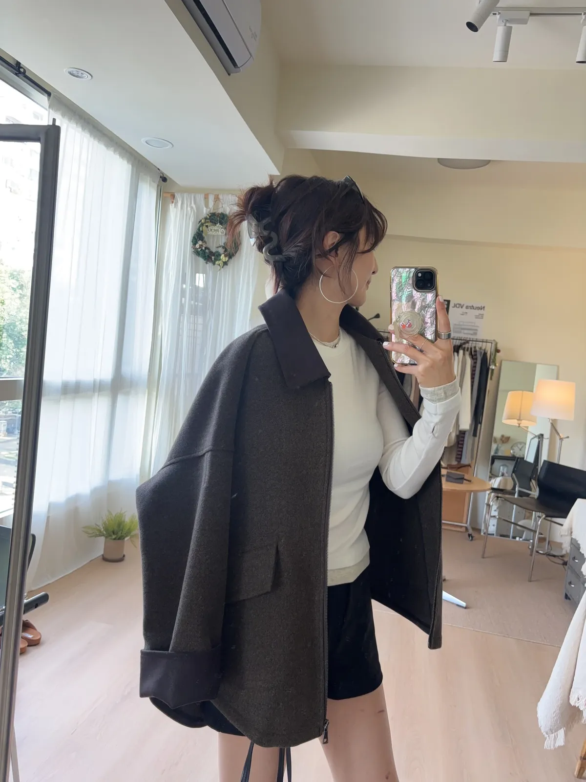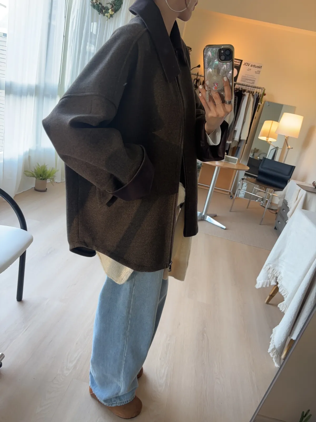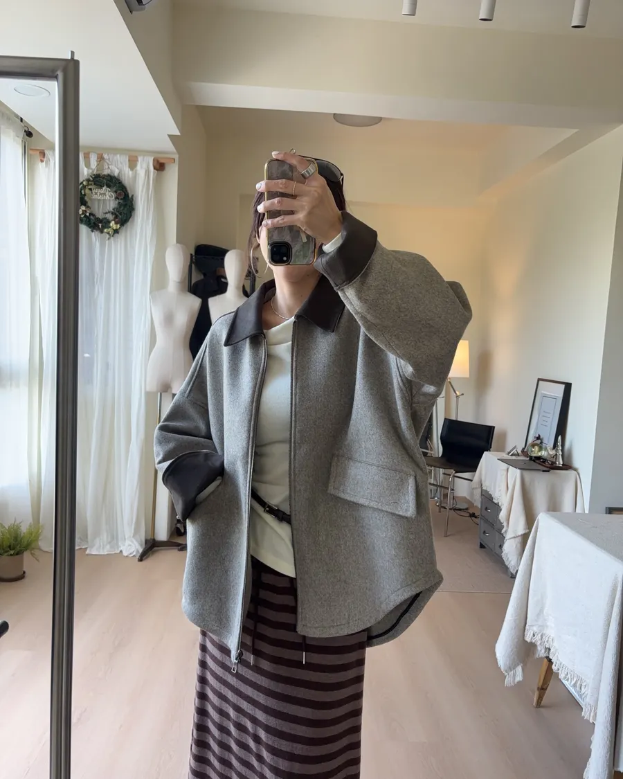 大大的落肩讓羊毛外套看起來隨性一些