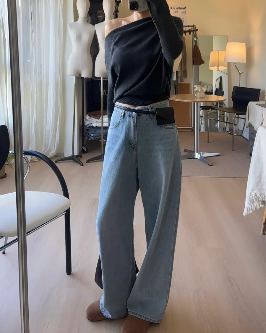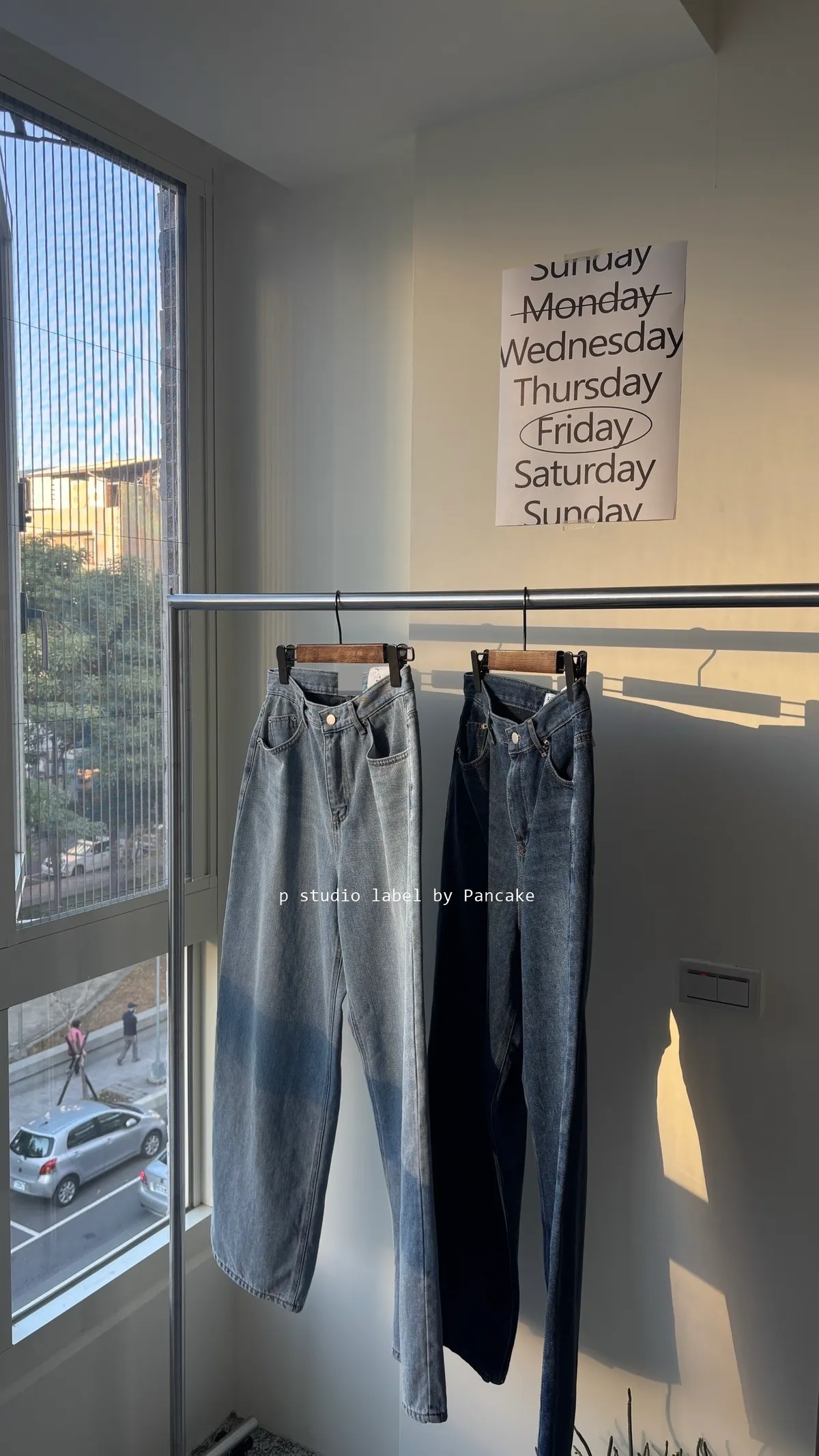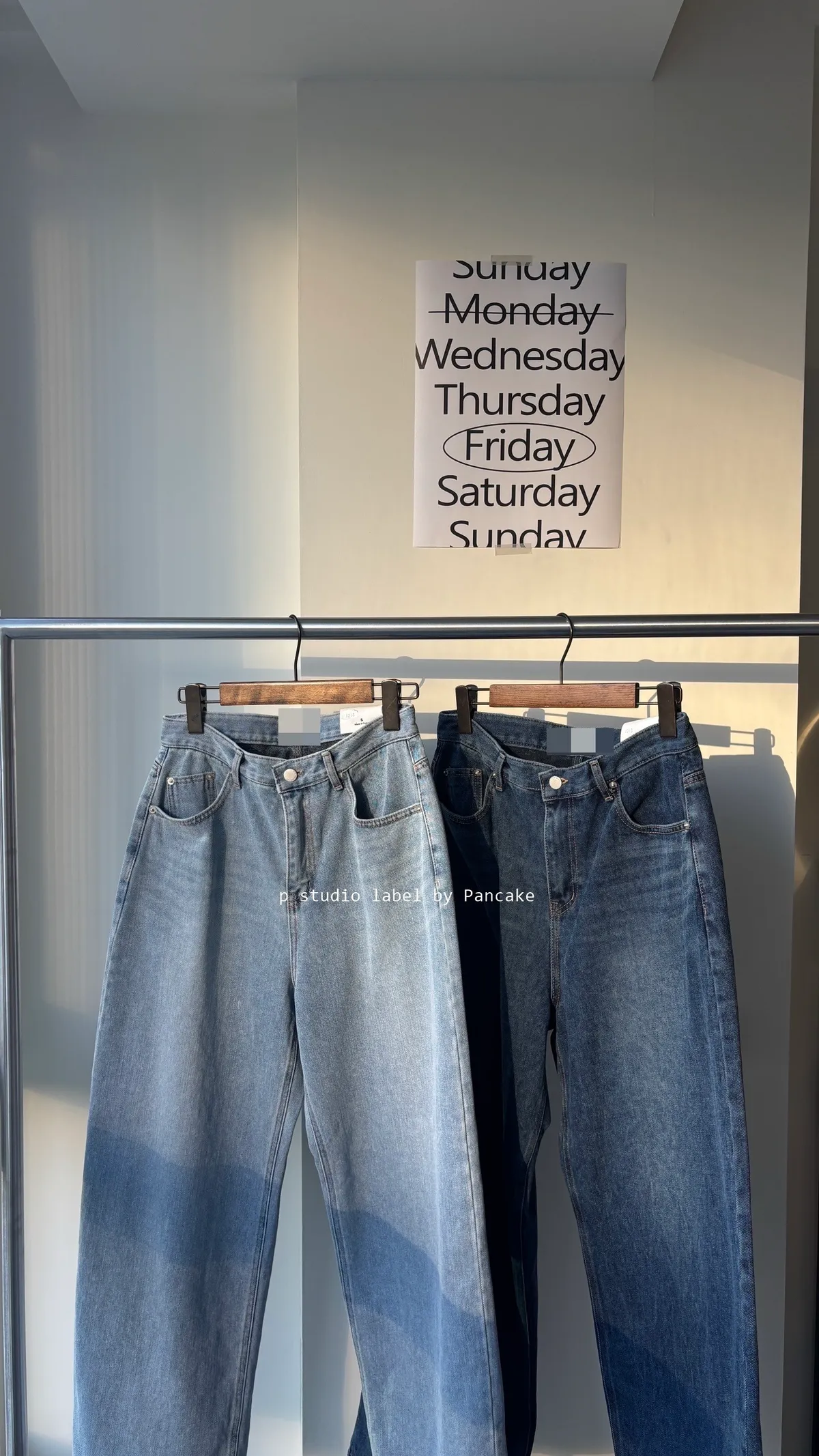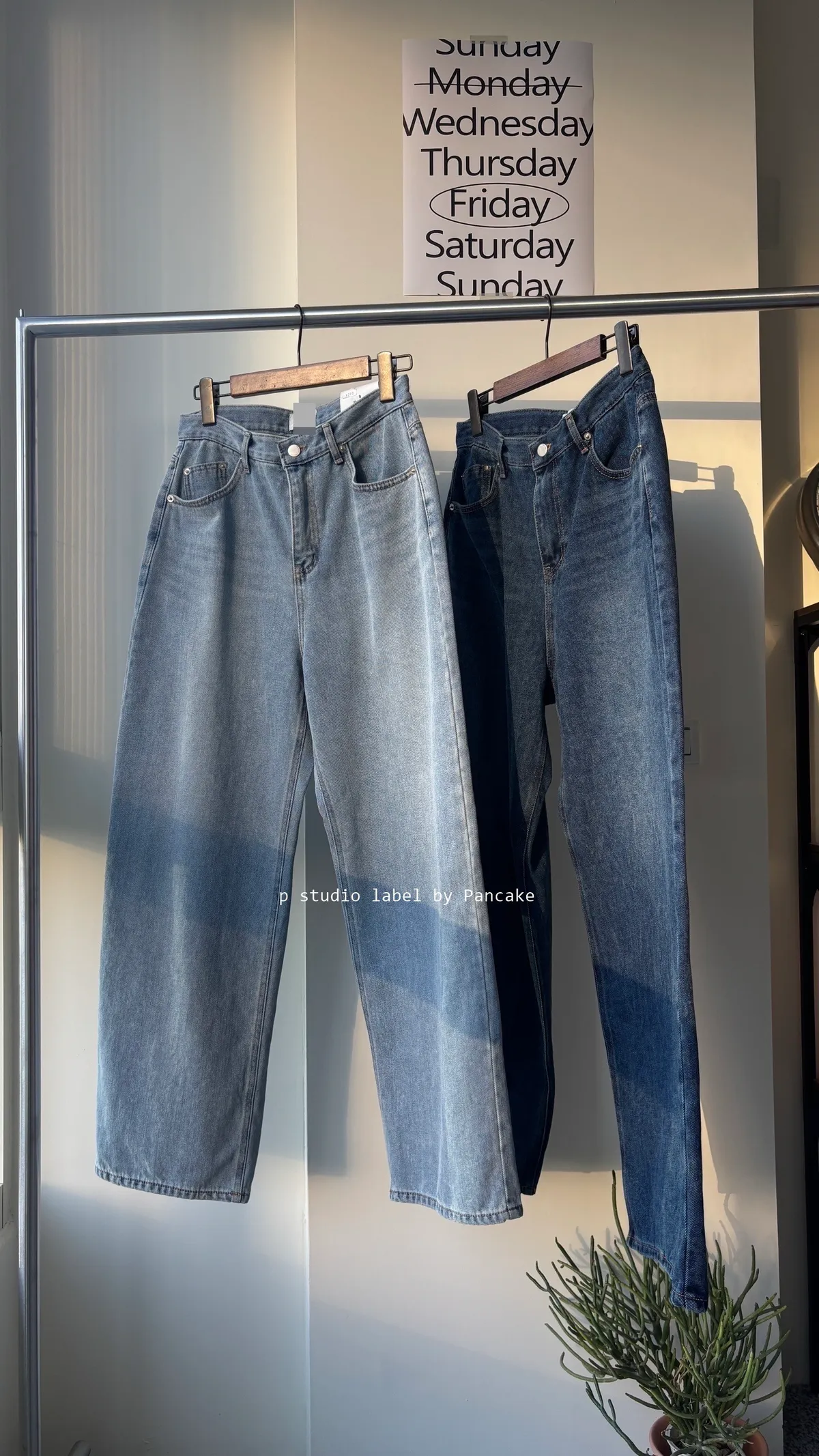 D233 率性洗色牛仔寬褲 2色 S/M/L