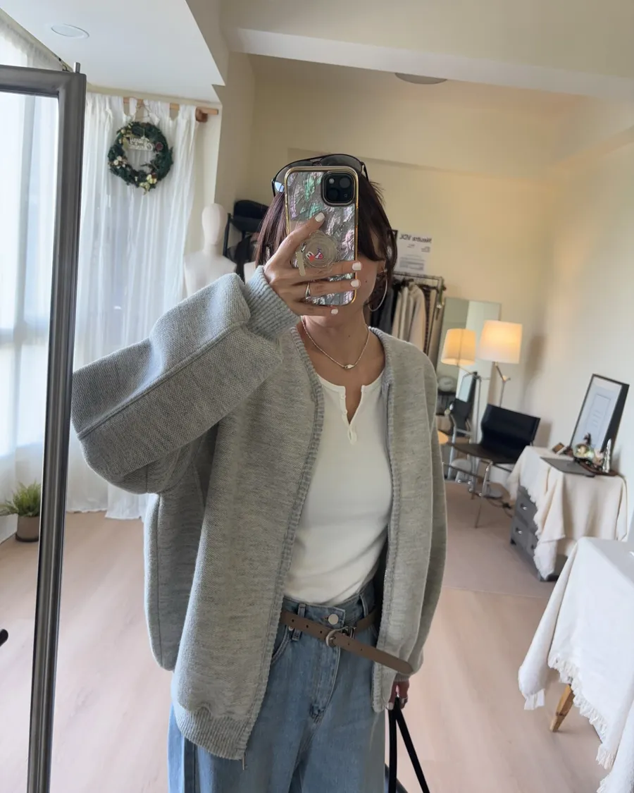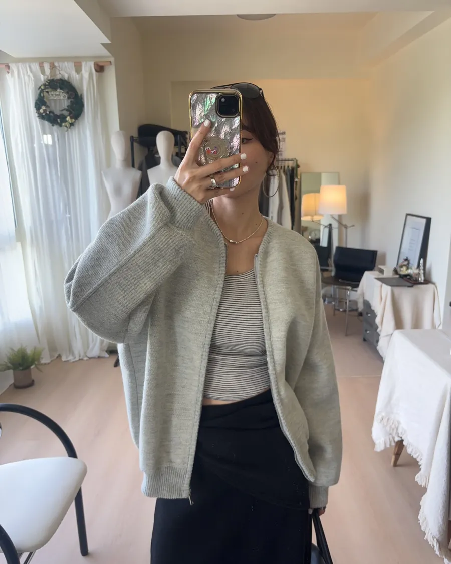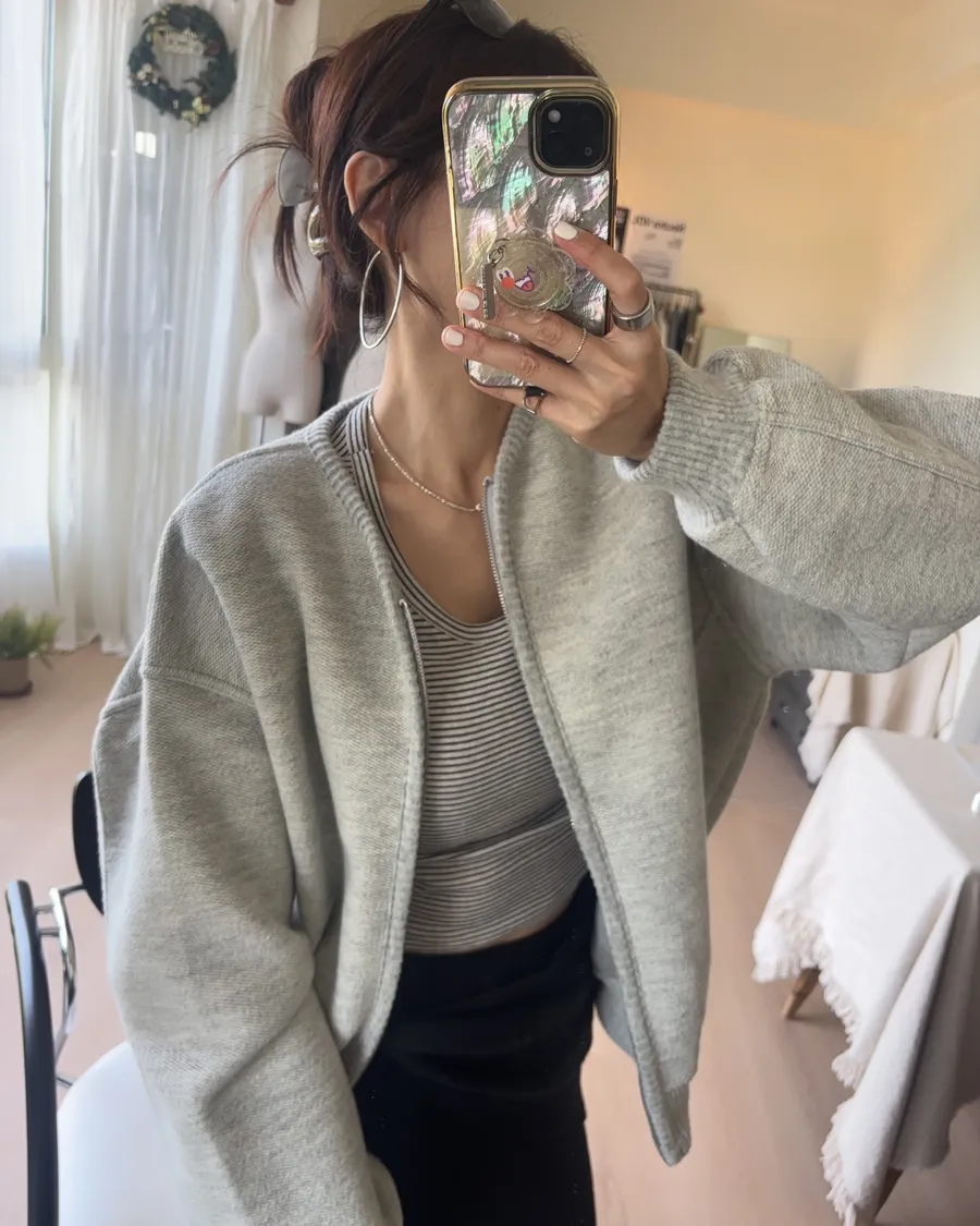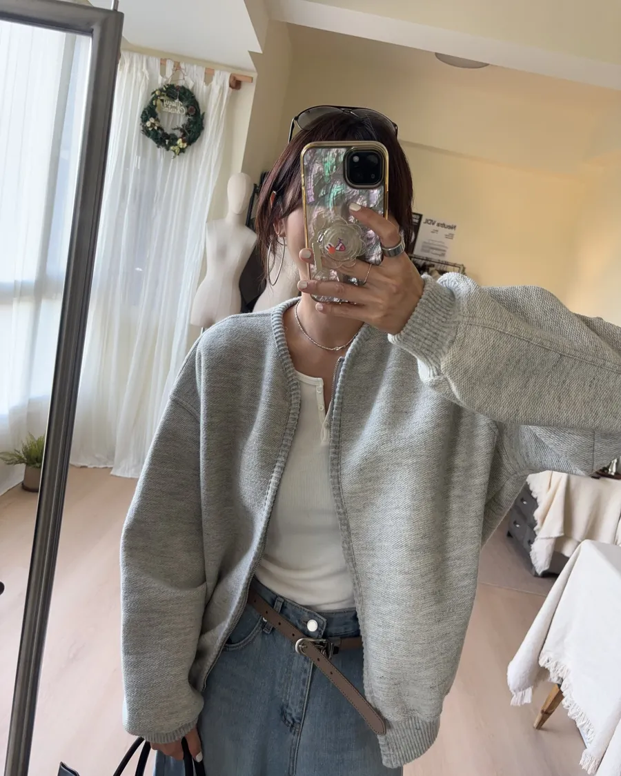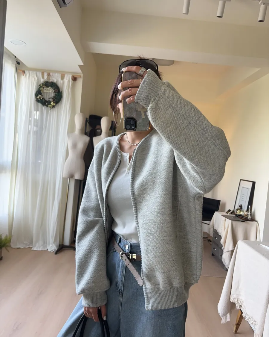 D238 織紋開襟羊毛夾克 灰