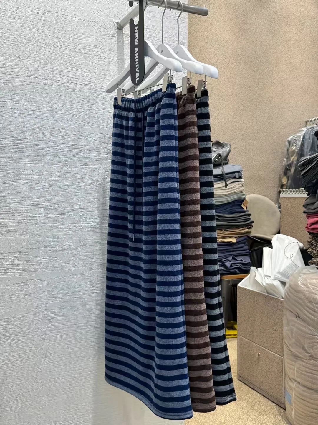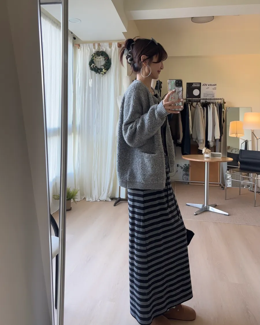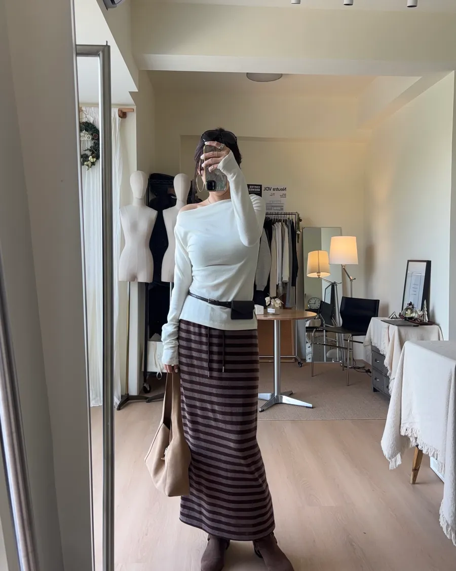 D239 隨性條紋抽繩長裙 3色