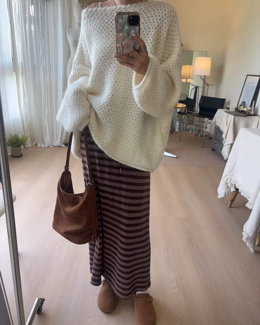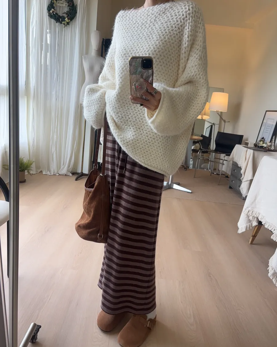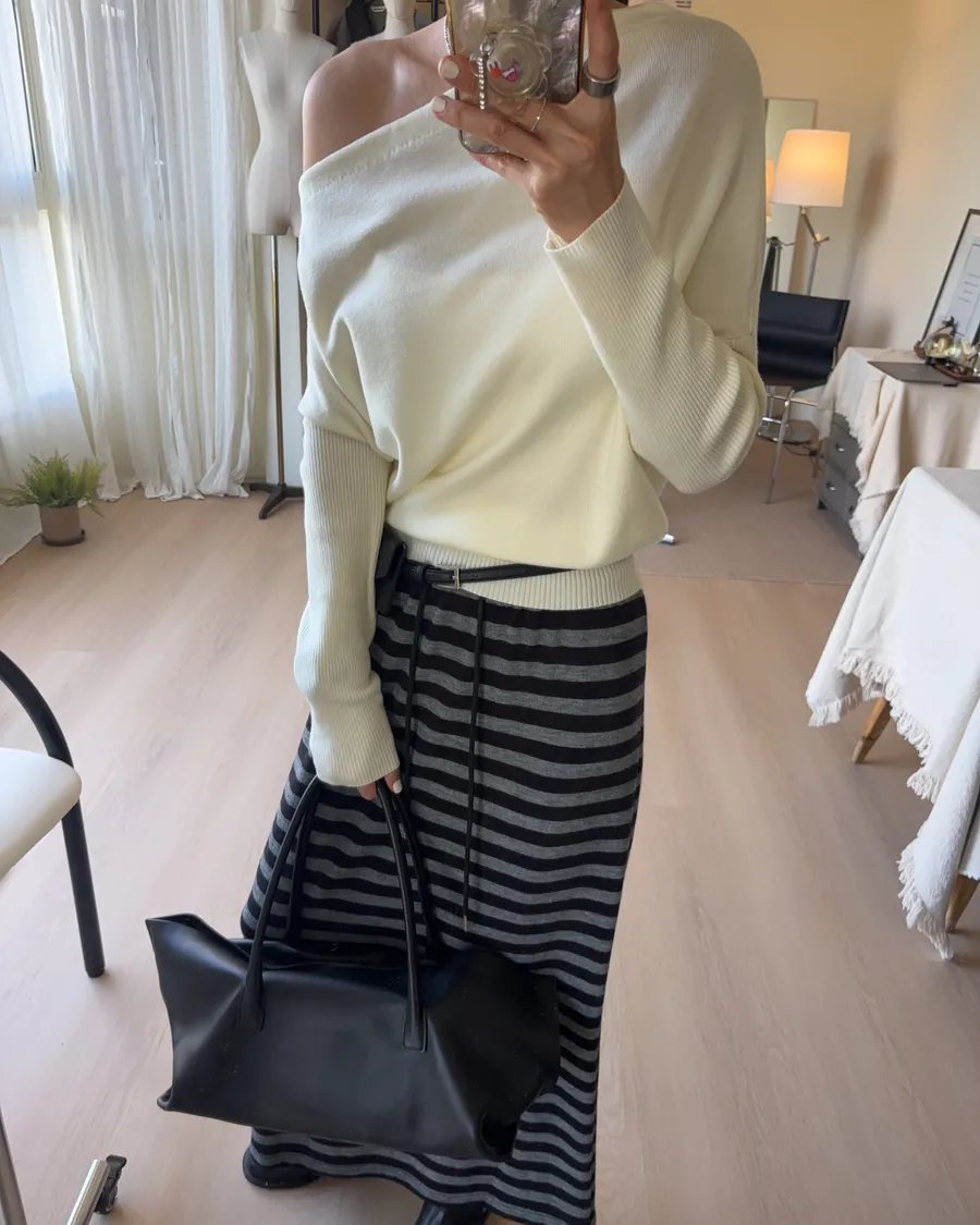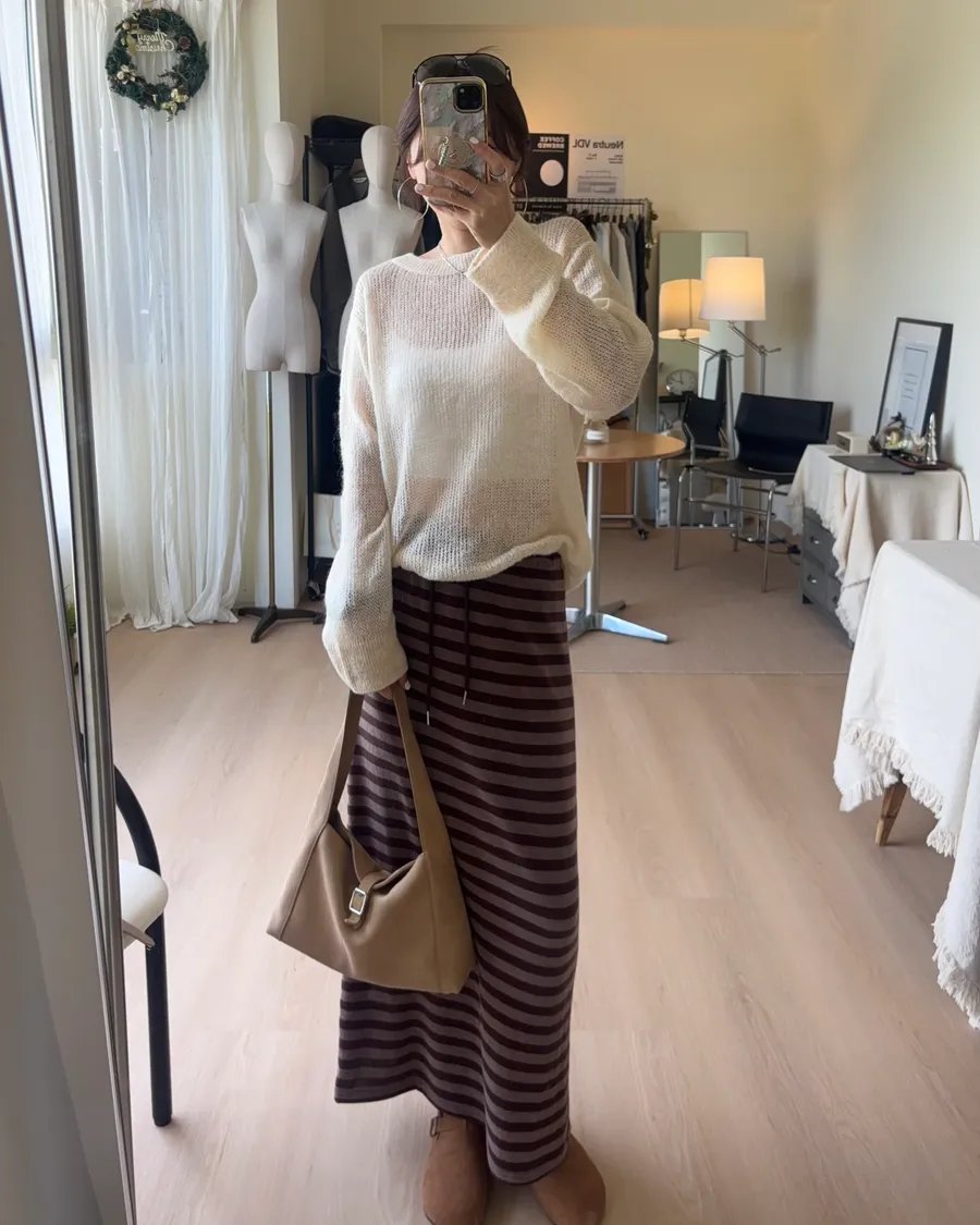 D239 隨性條紋抽繩長裙 3色