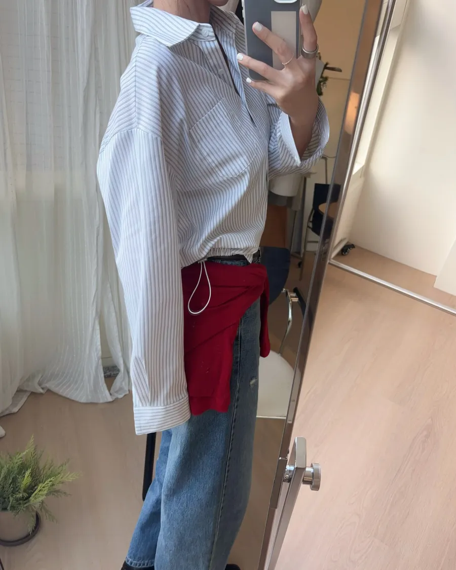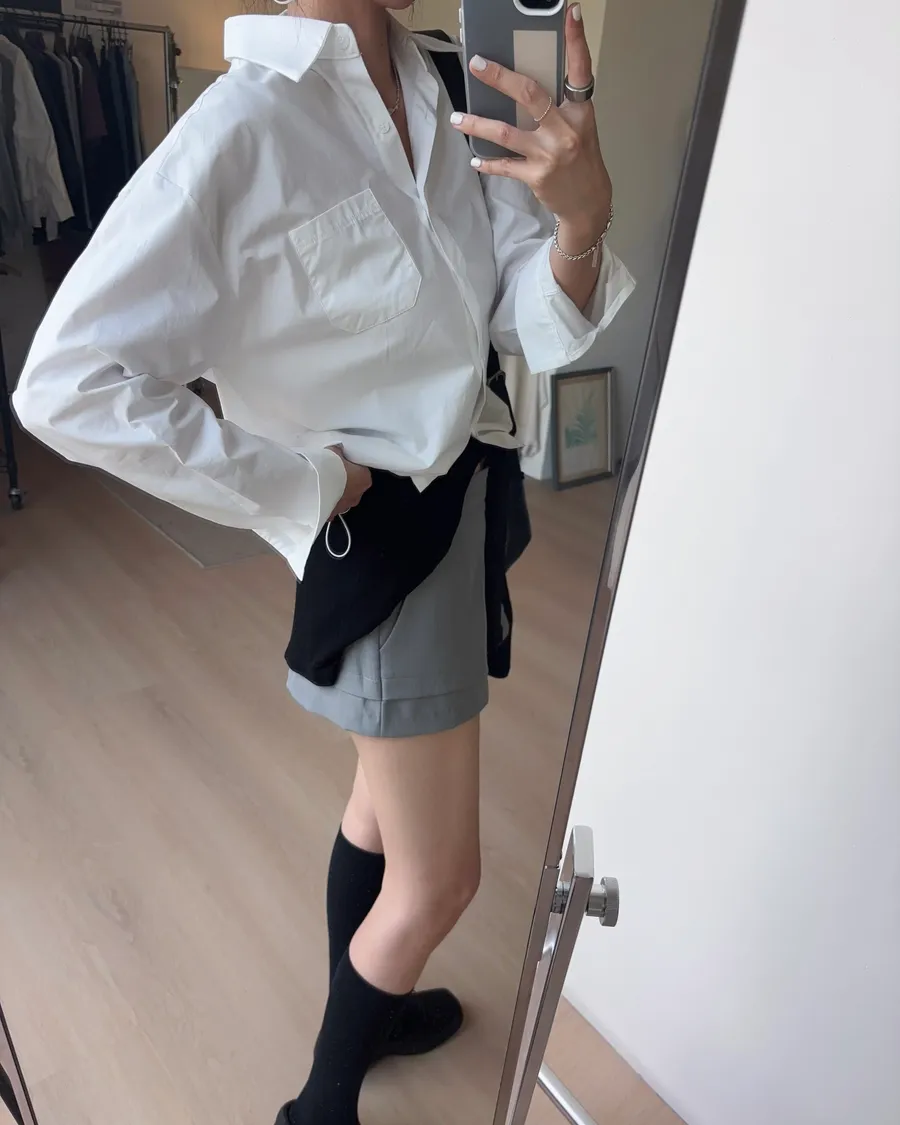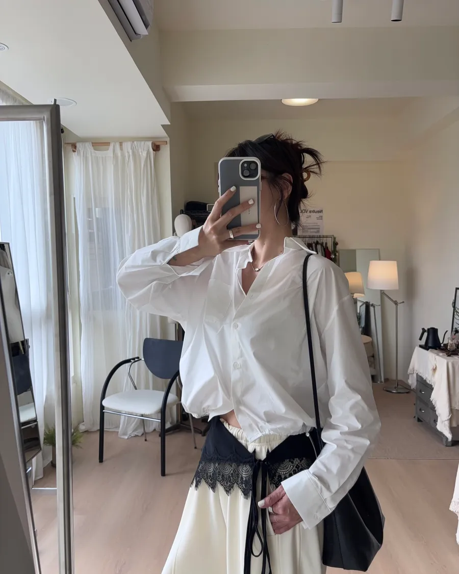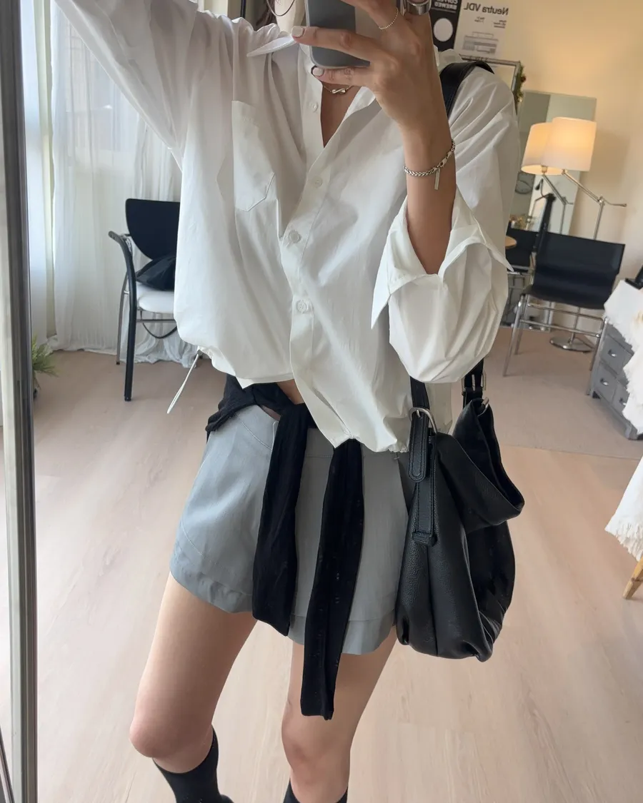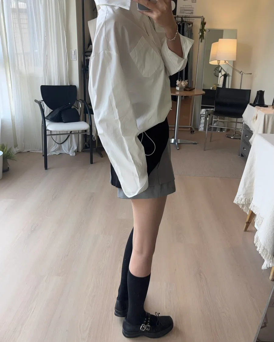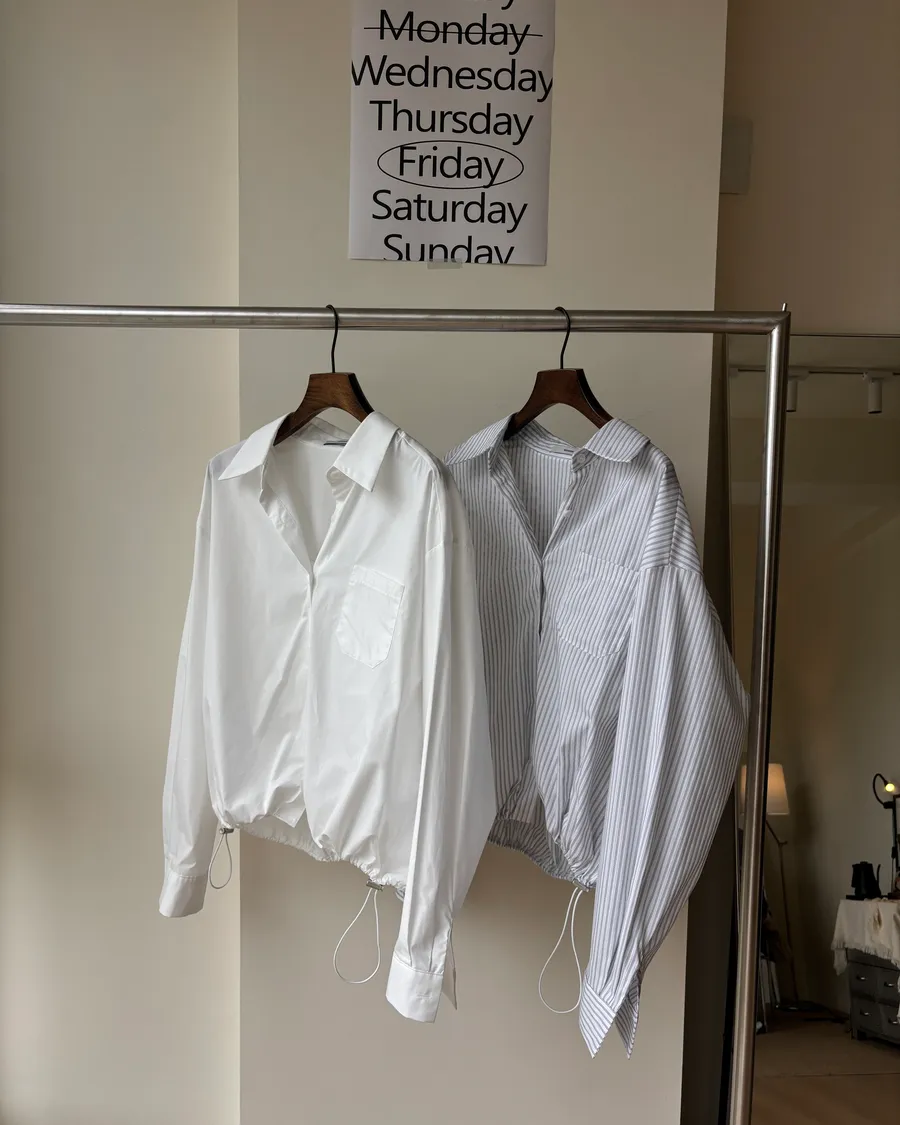 M306 下擺抽繩中版廓型襯衫 2色