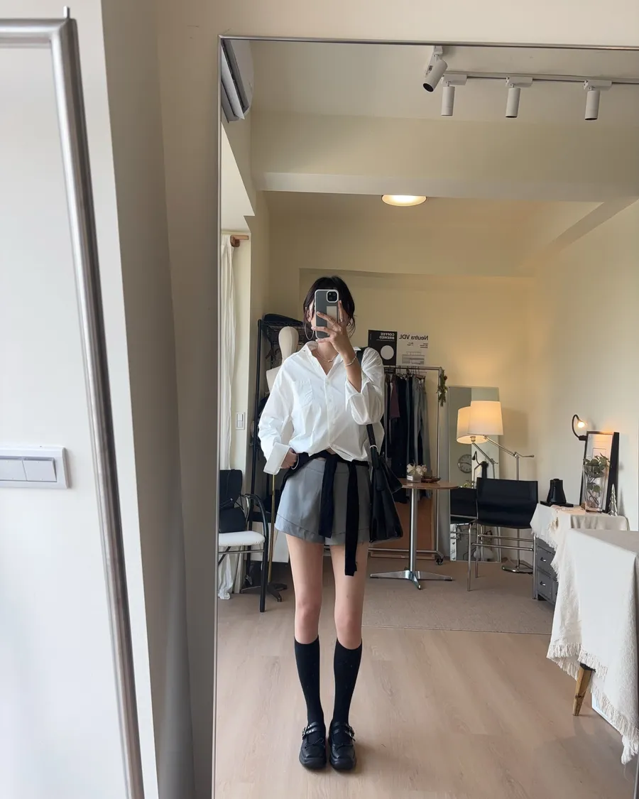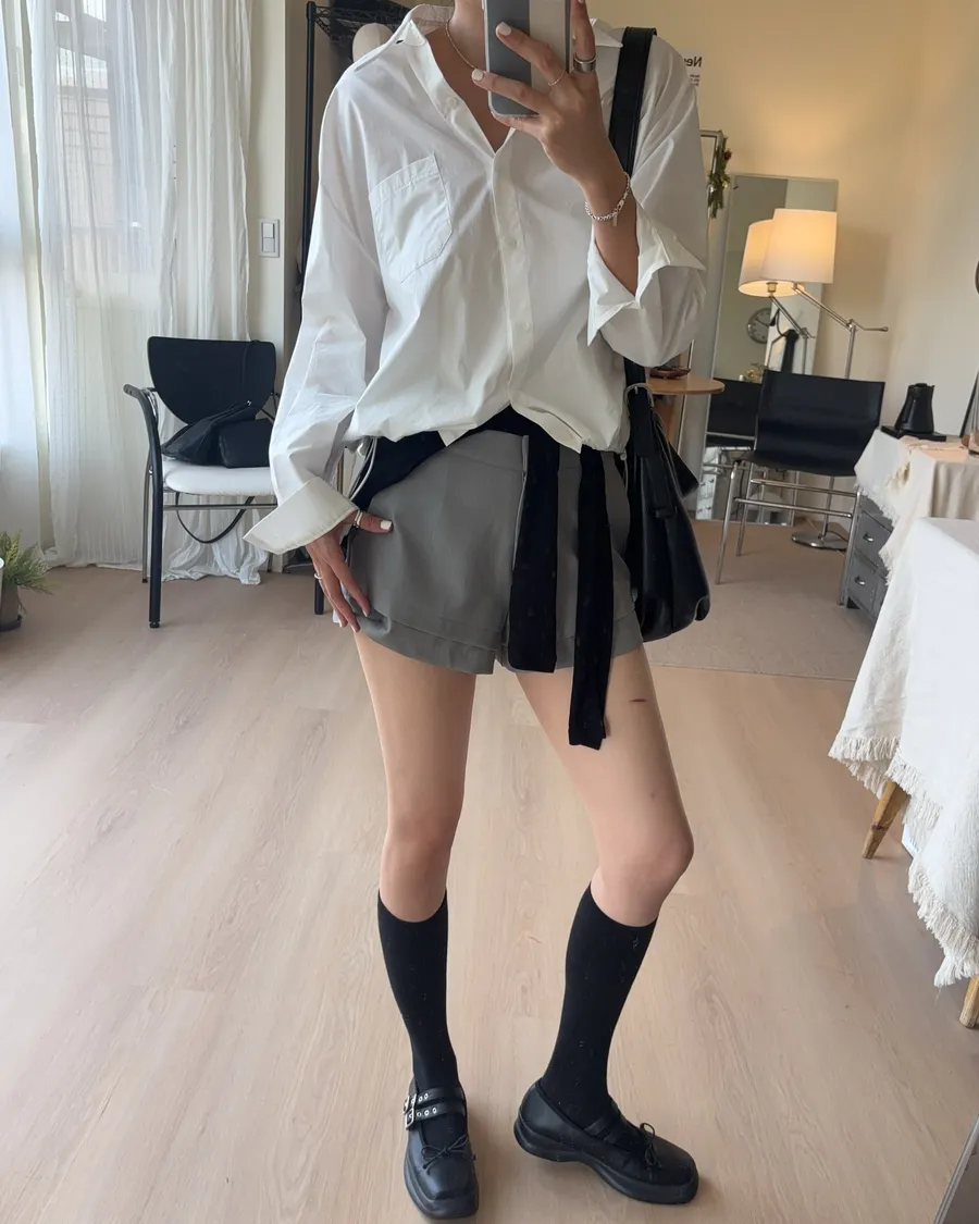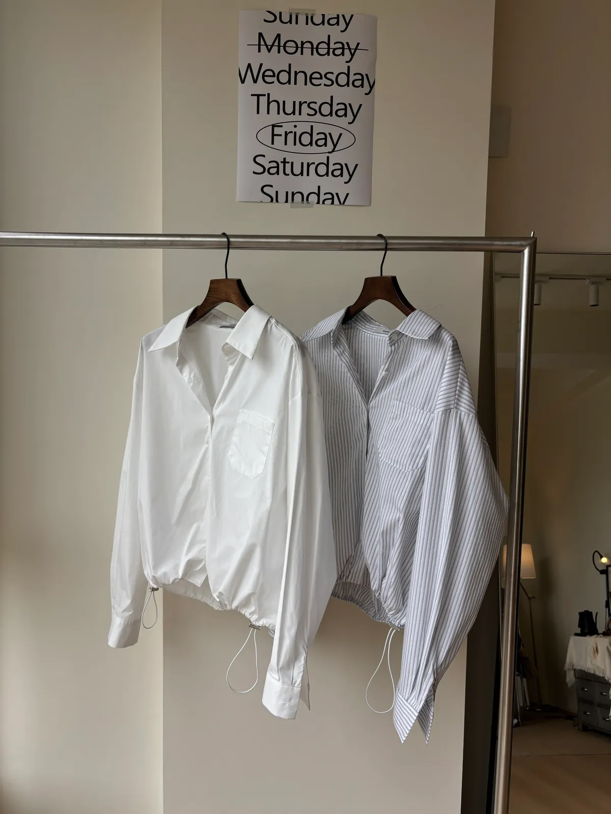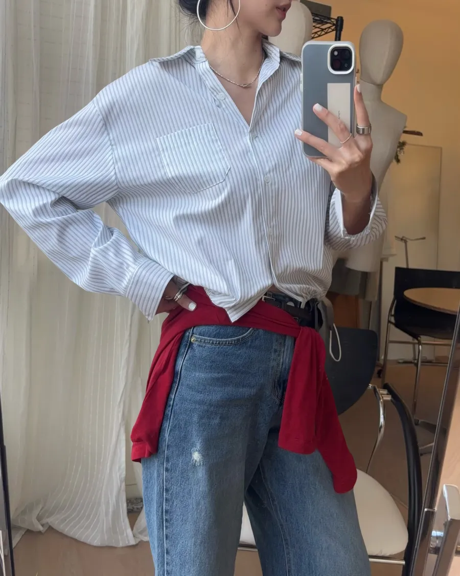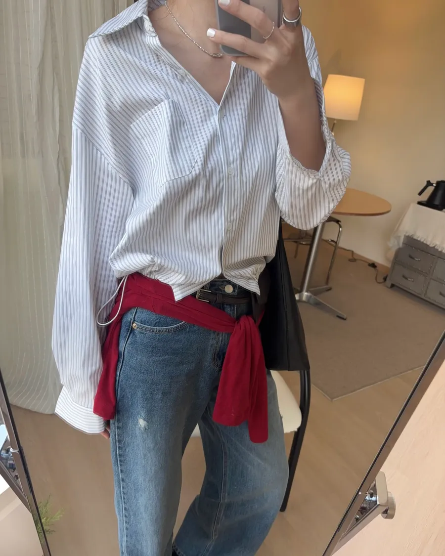 M306 下擺抽繩中版廓型襯衫 2色