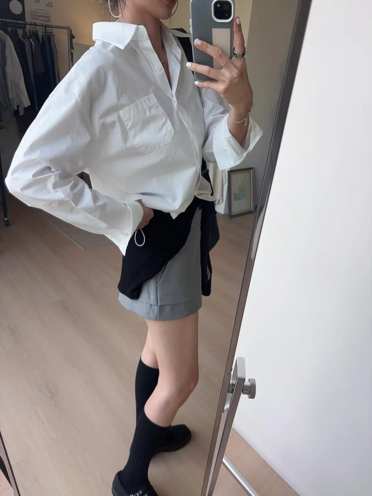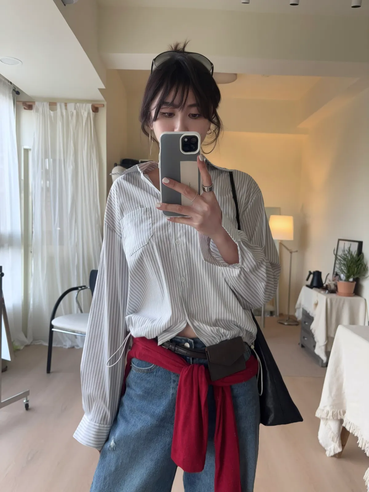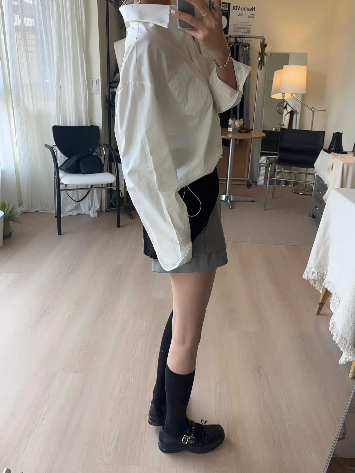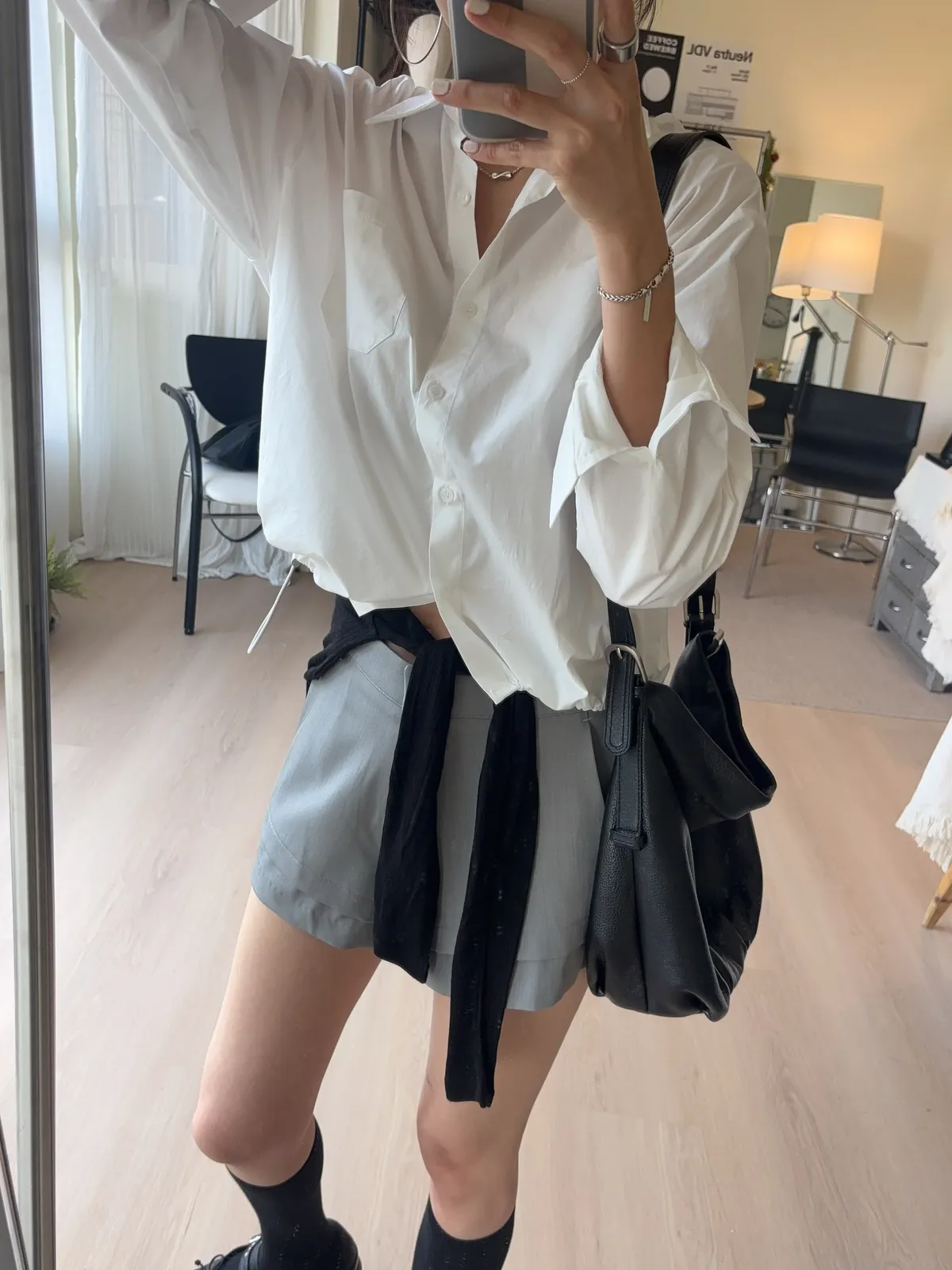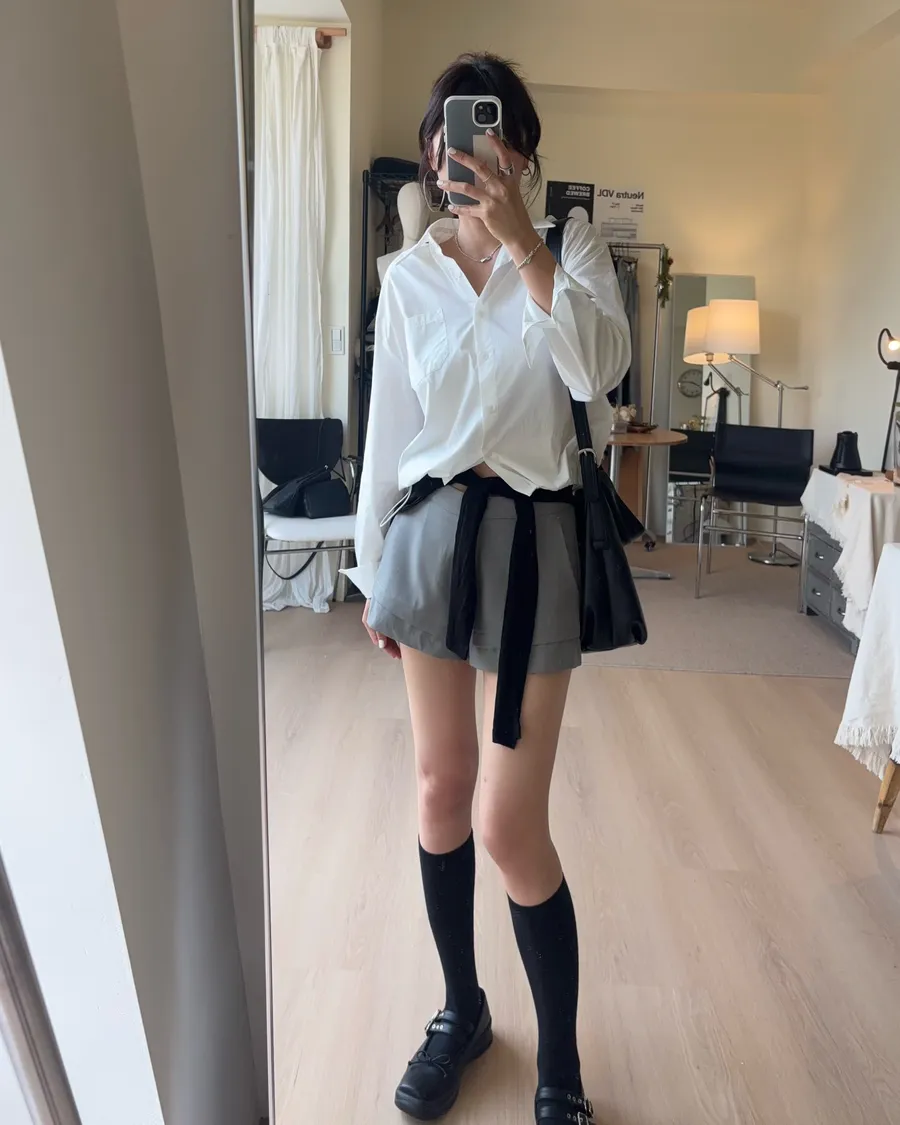 M306 下擺抽繩中版廓型襯衫 2色