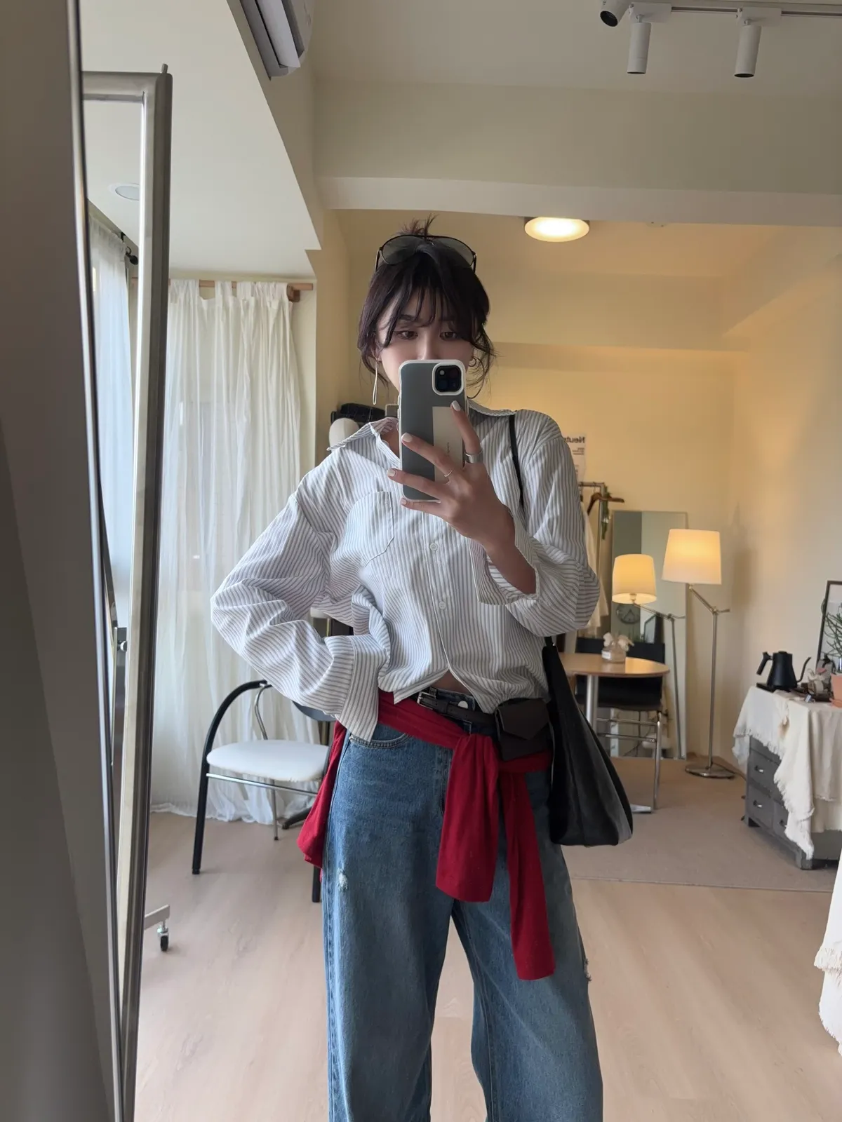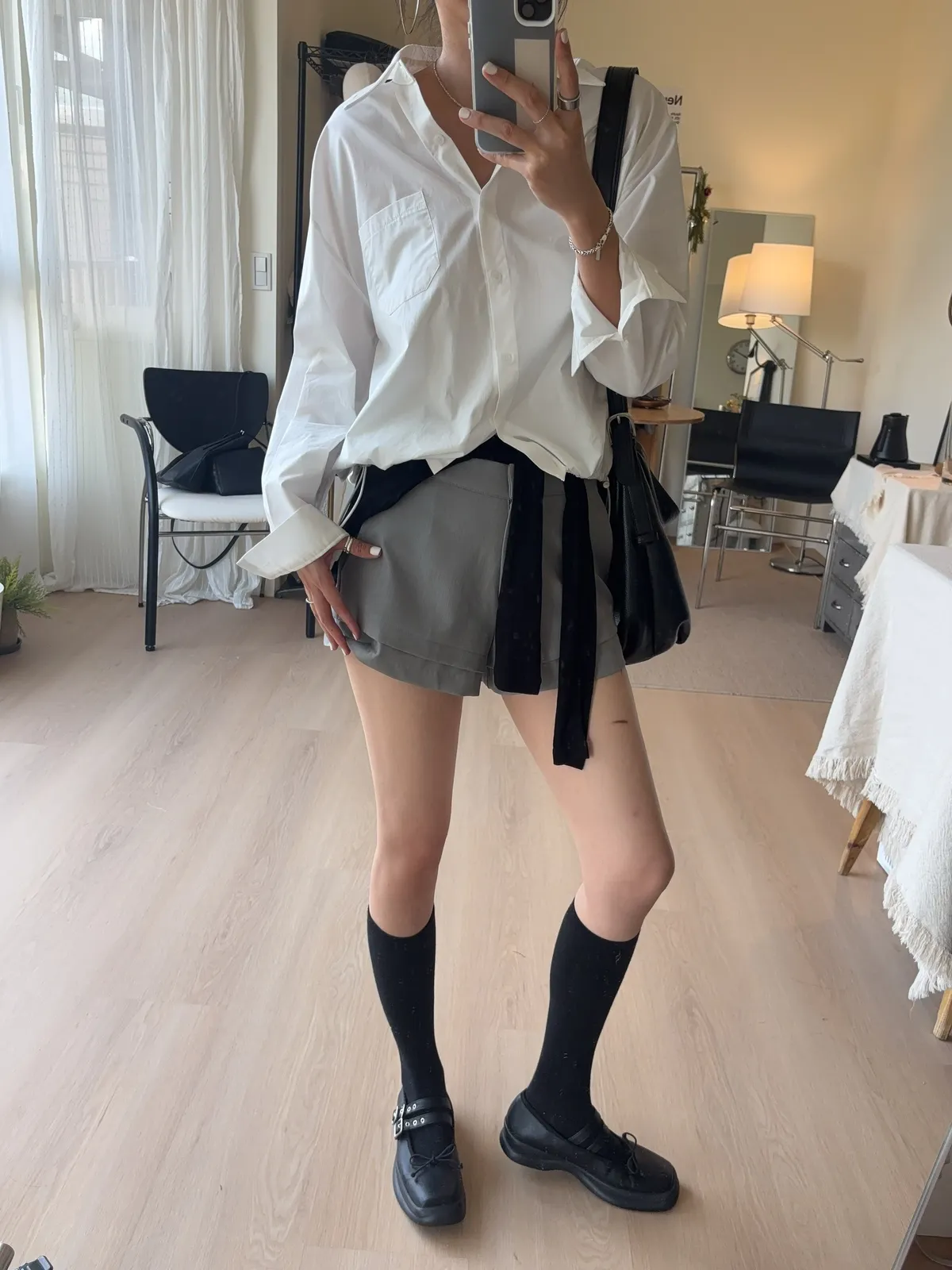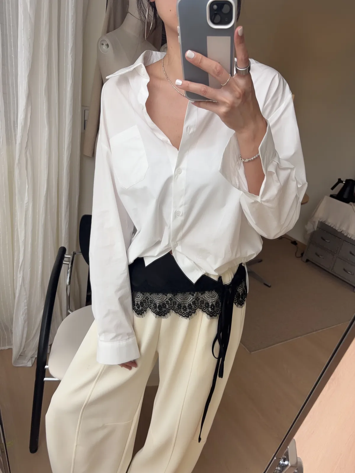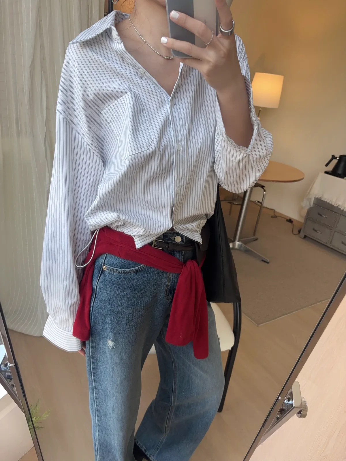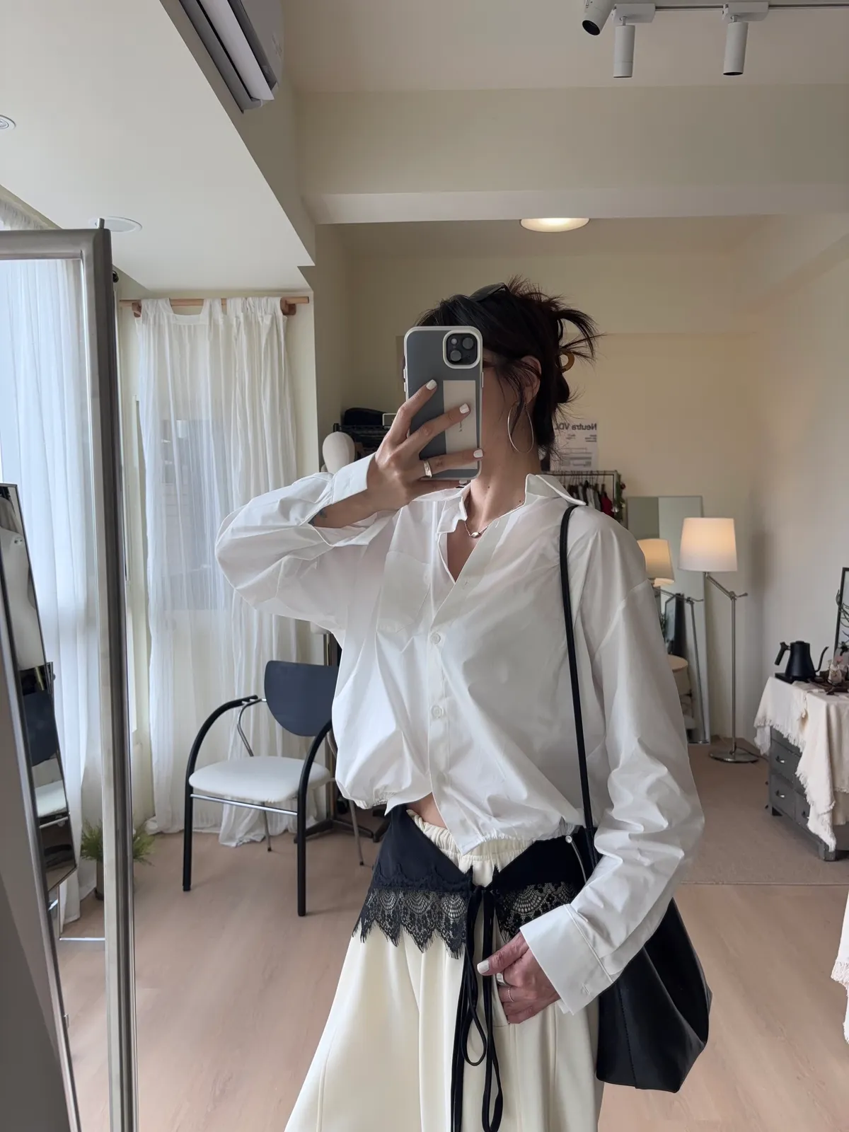M306 下擺抽繩中版廓型襯衫 2色