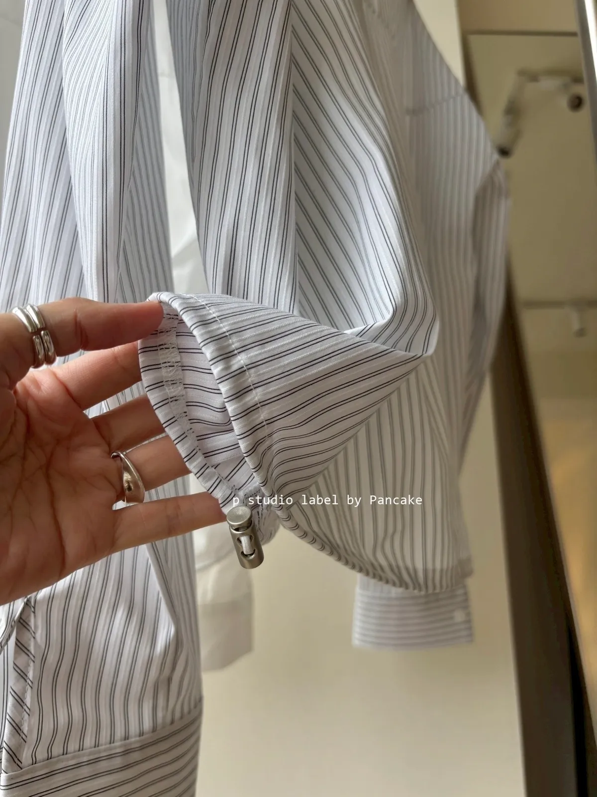 下擺附有金屬抽繩扣小細節