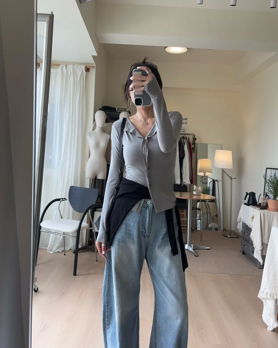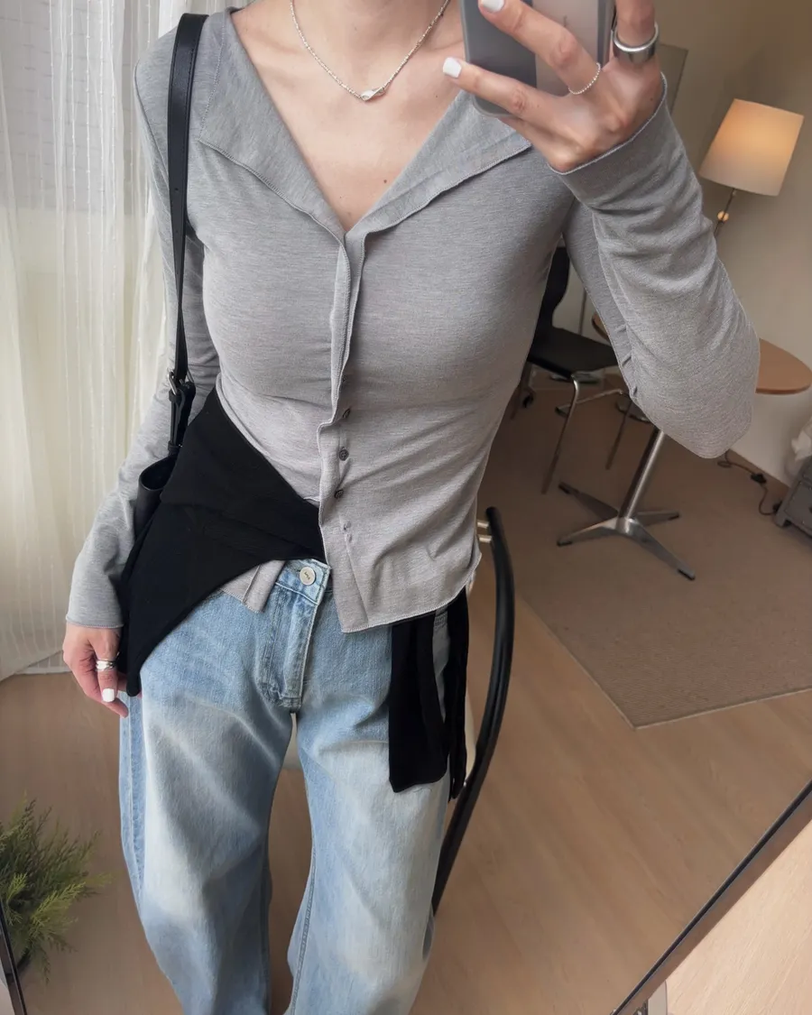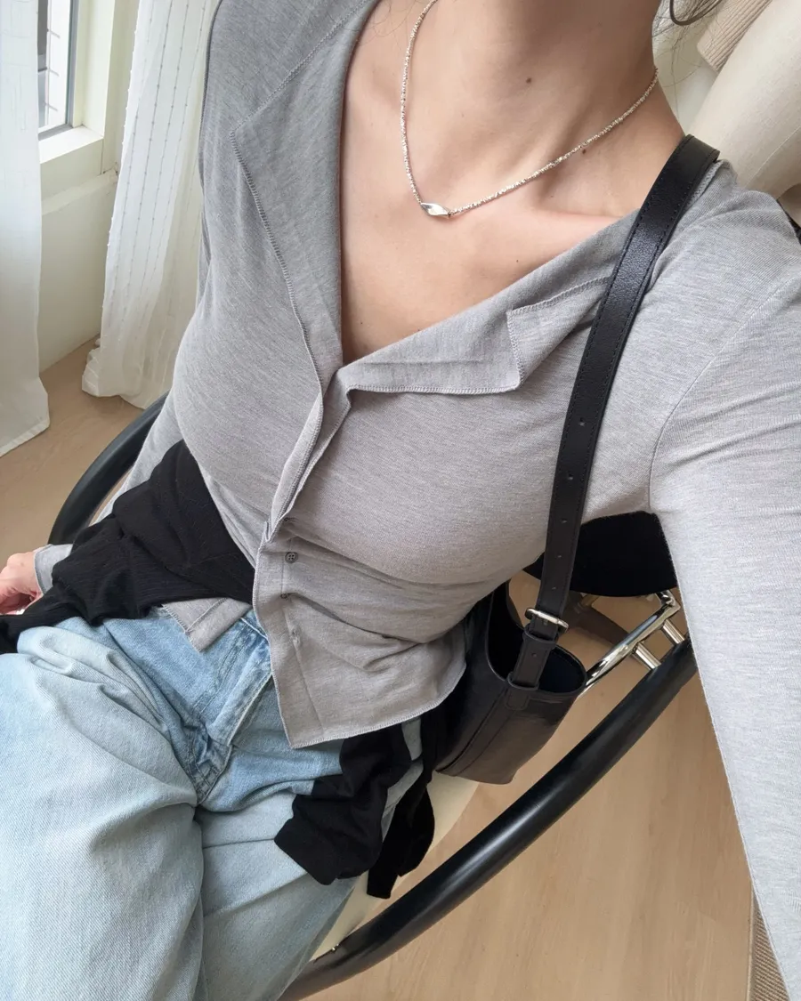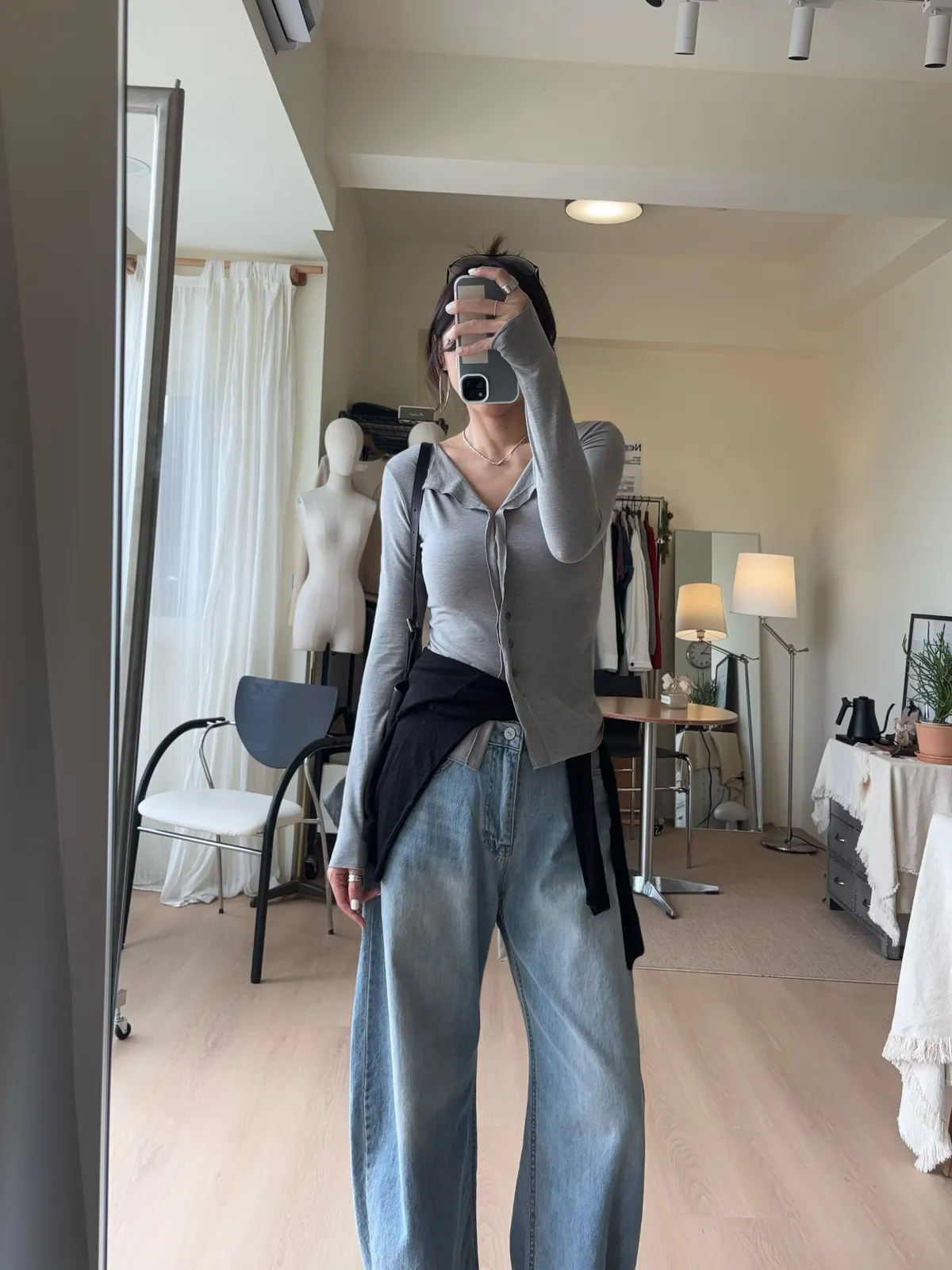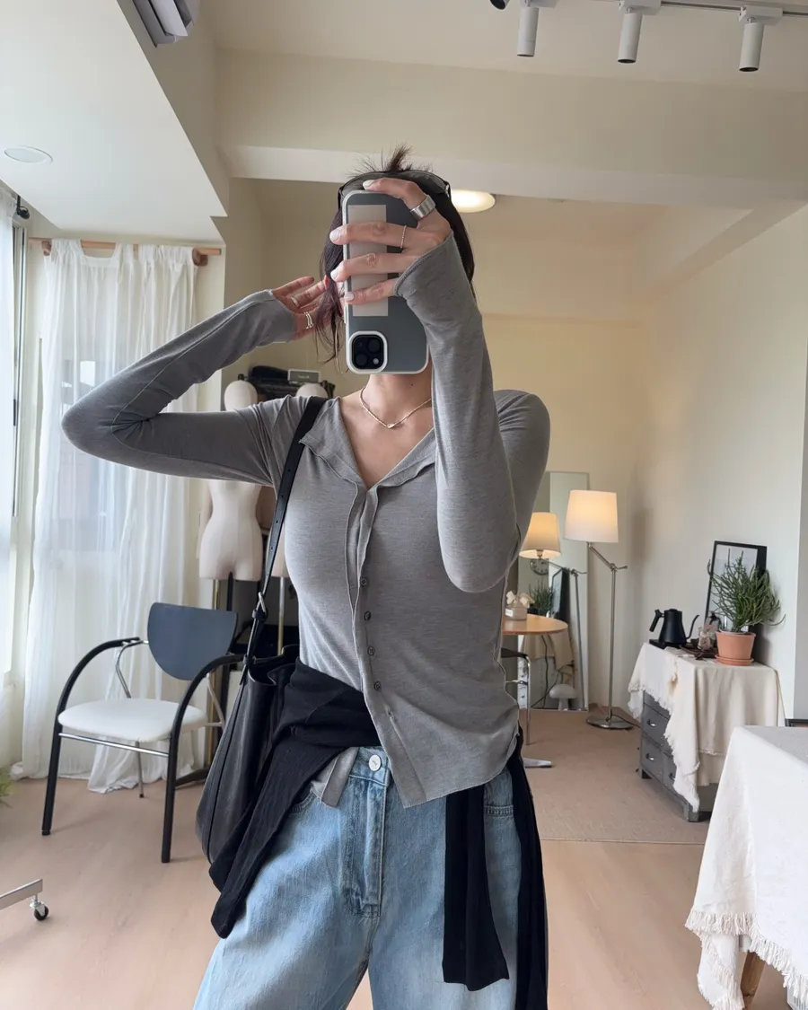 也可解開幾顆釦子作為薄開襟衫