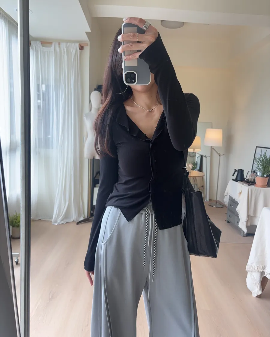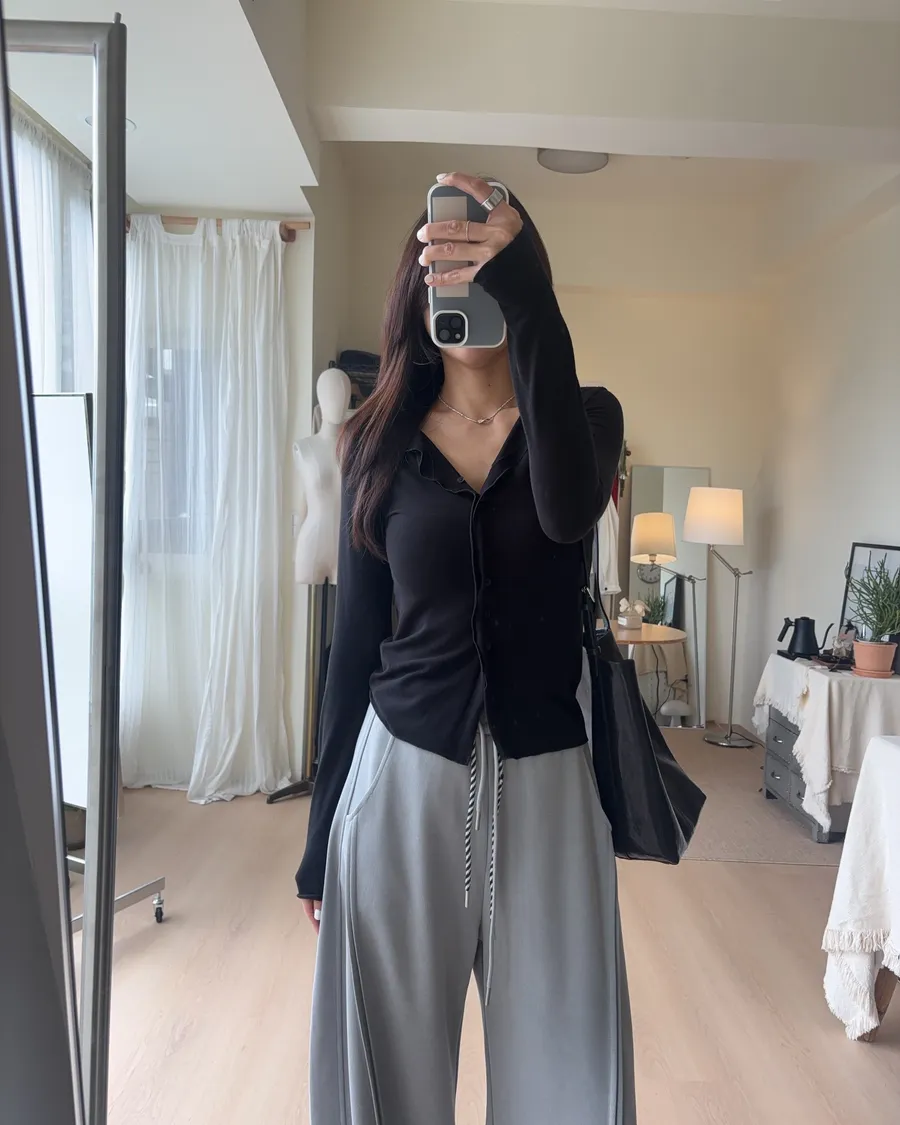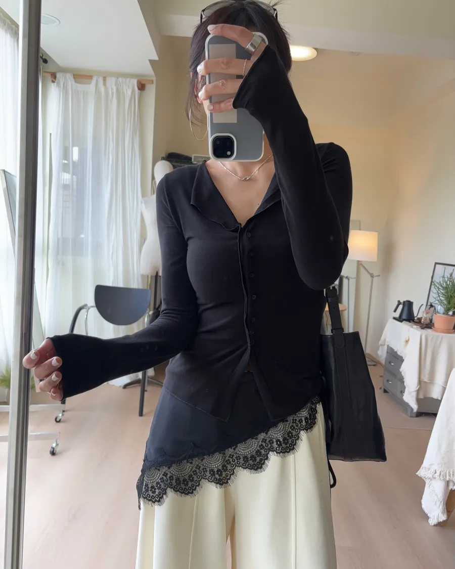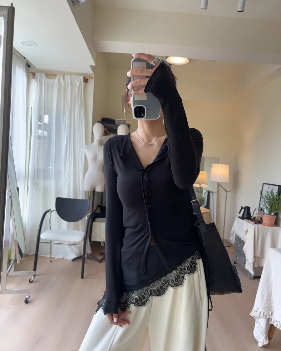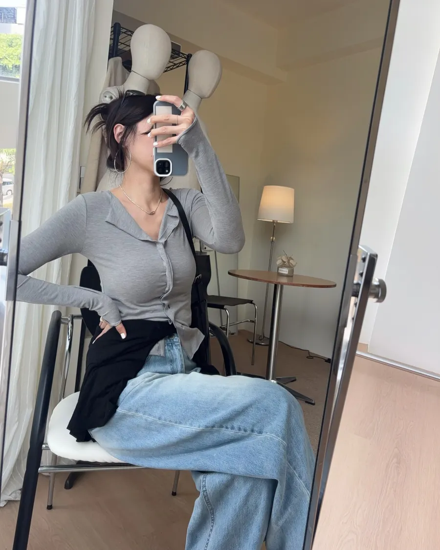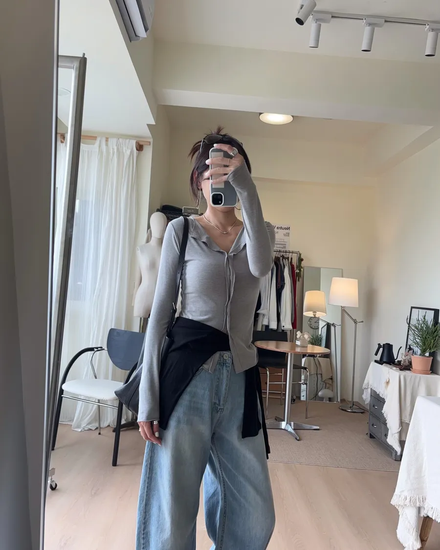 也可解開幾顆釦子作為薄開襟衫