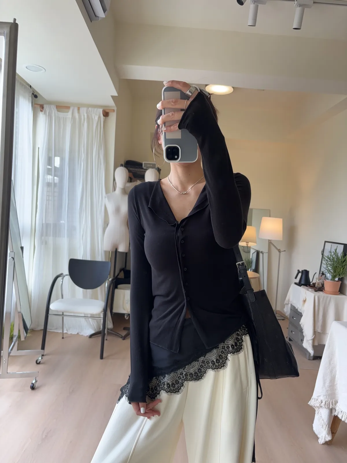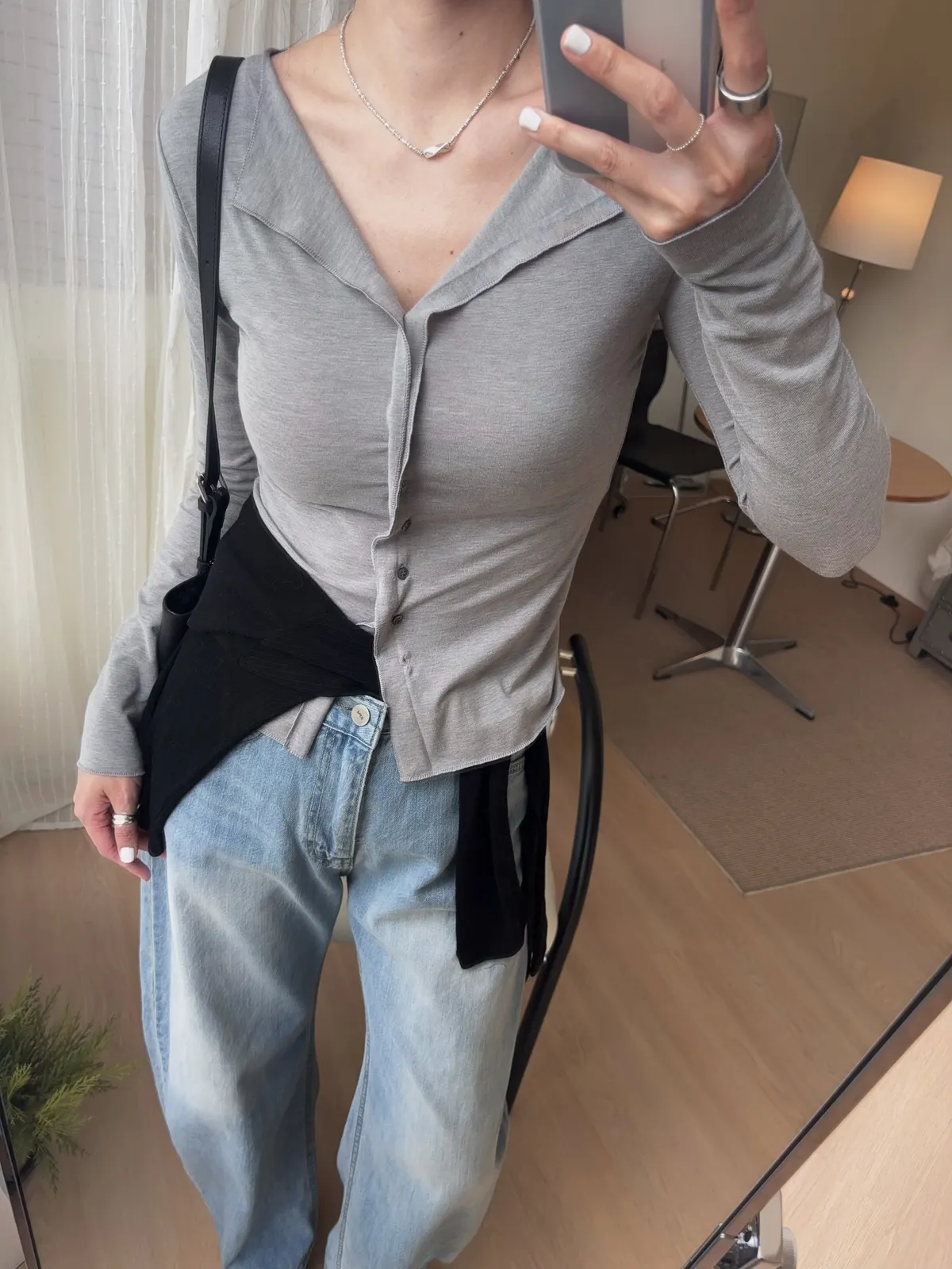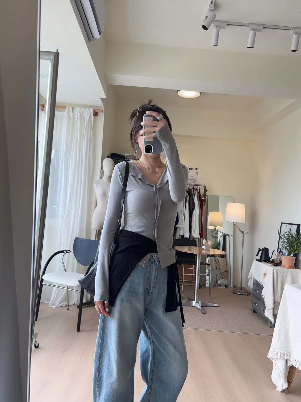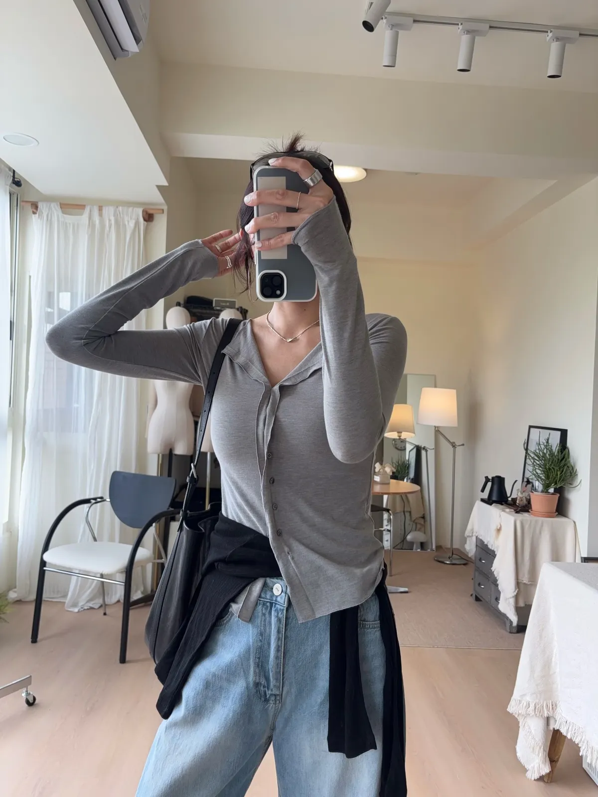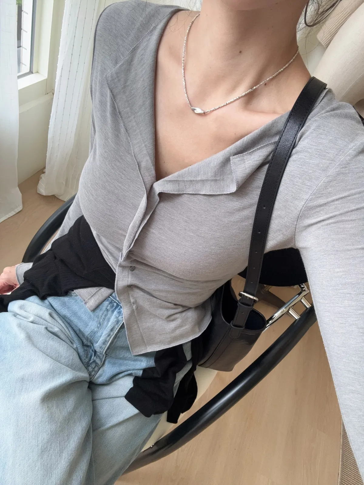 也可解開幾顆釦子作為薄開襟衫