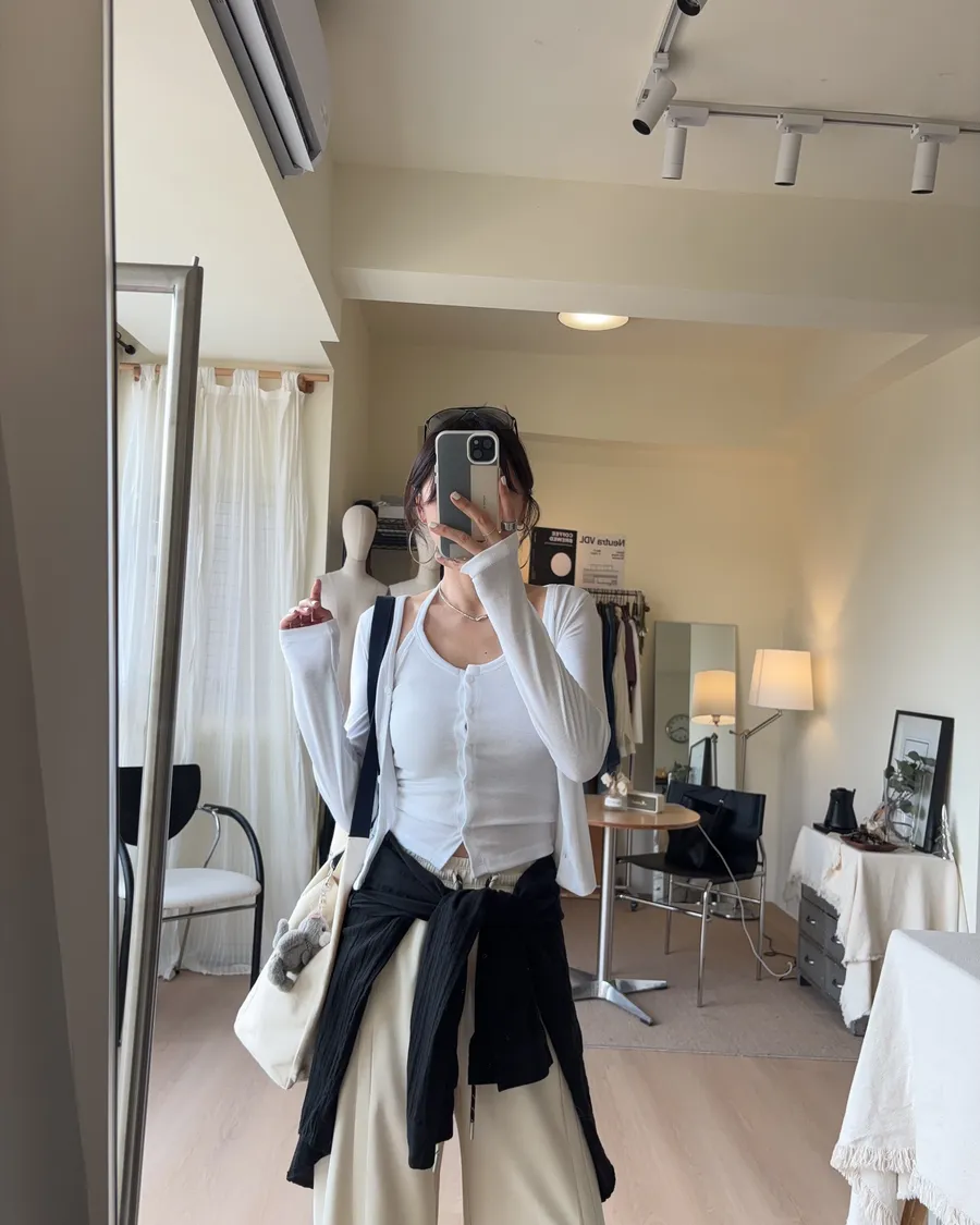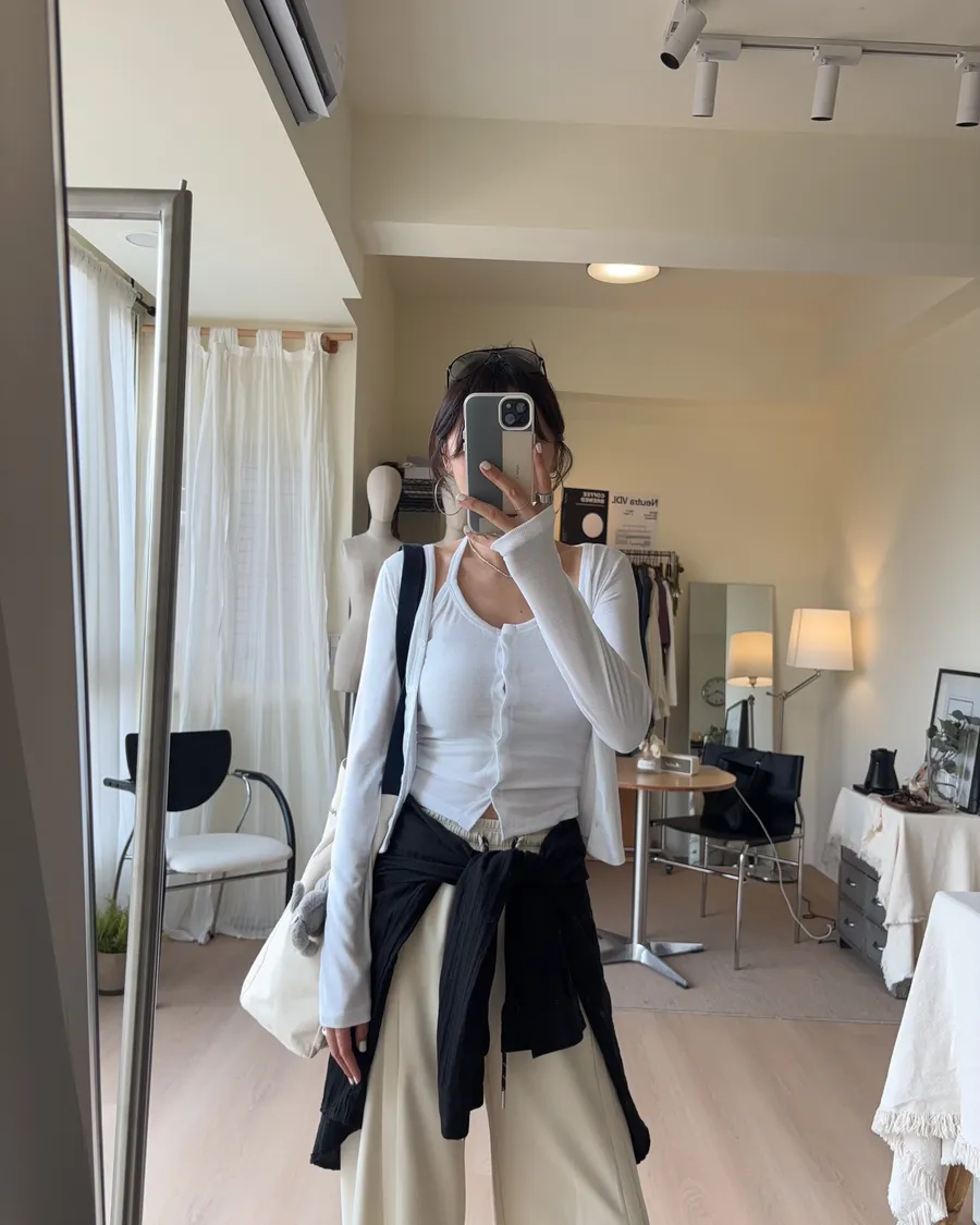 外搭的V領開襟罩衫帶出一點慵懶的氣質