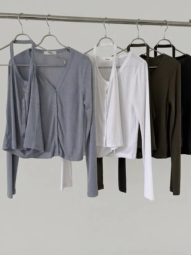 A408 繞脖背心開襟衫套組 4色