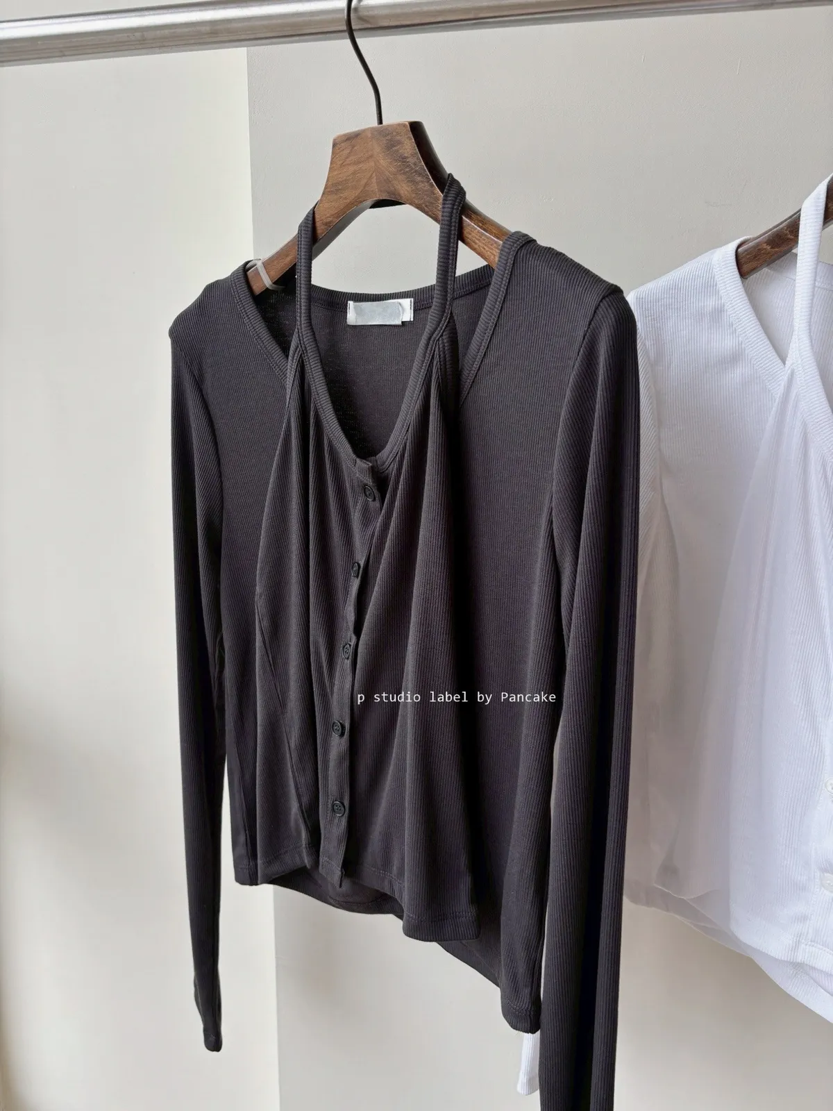 外搭的V領開襟罩衫帶出一點慵懶的氣質布料是細緻坑條紋理
