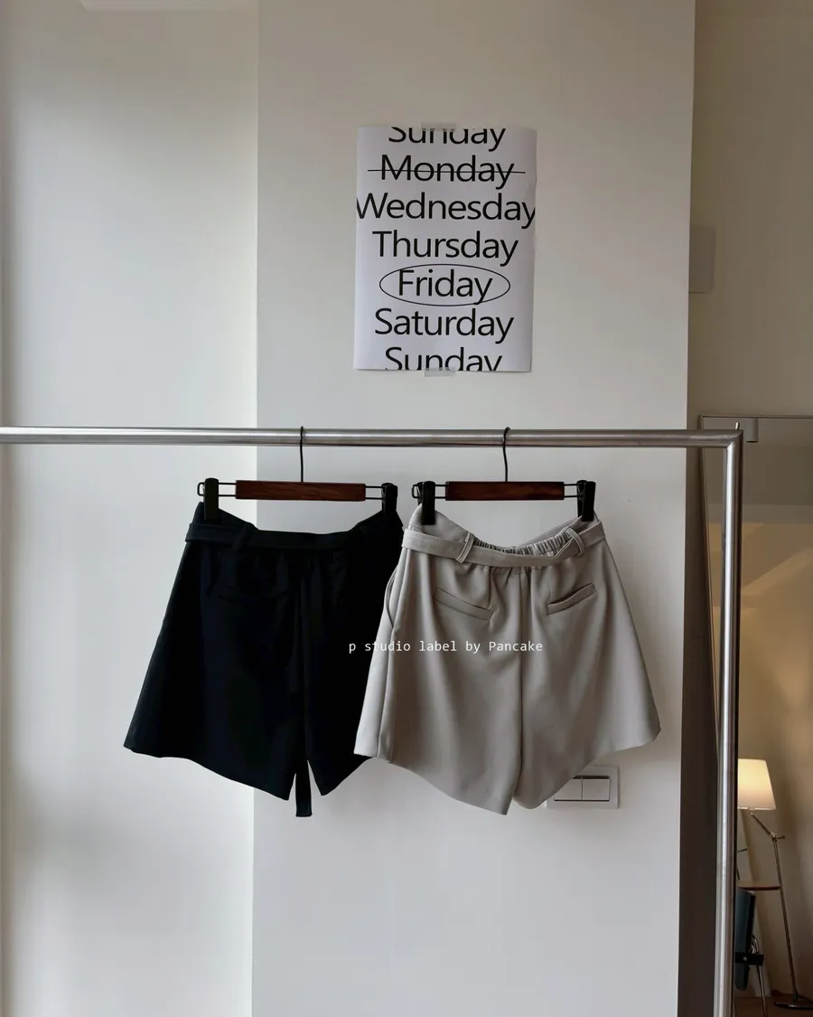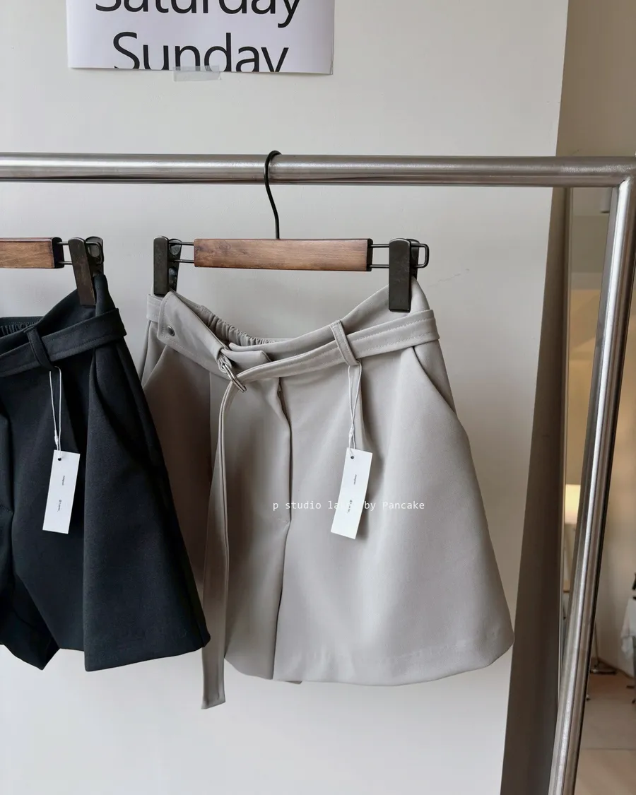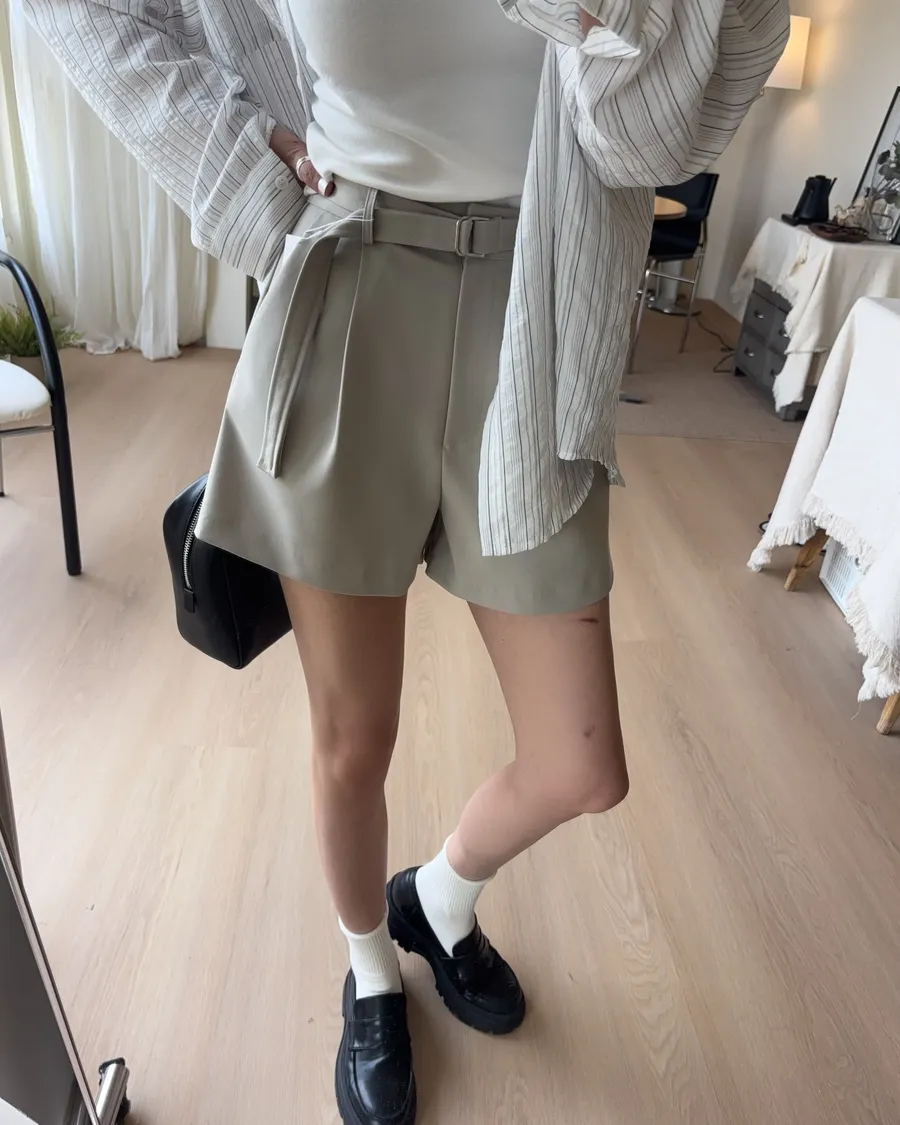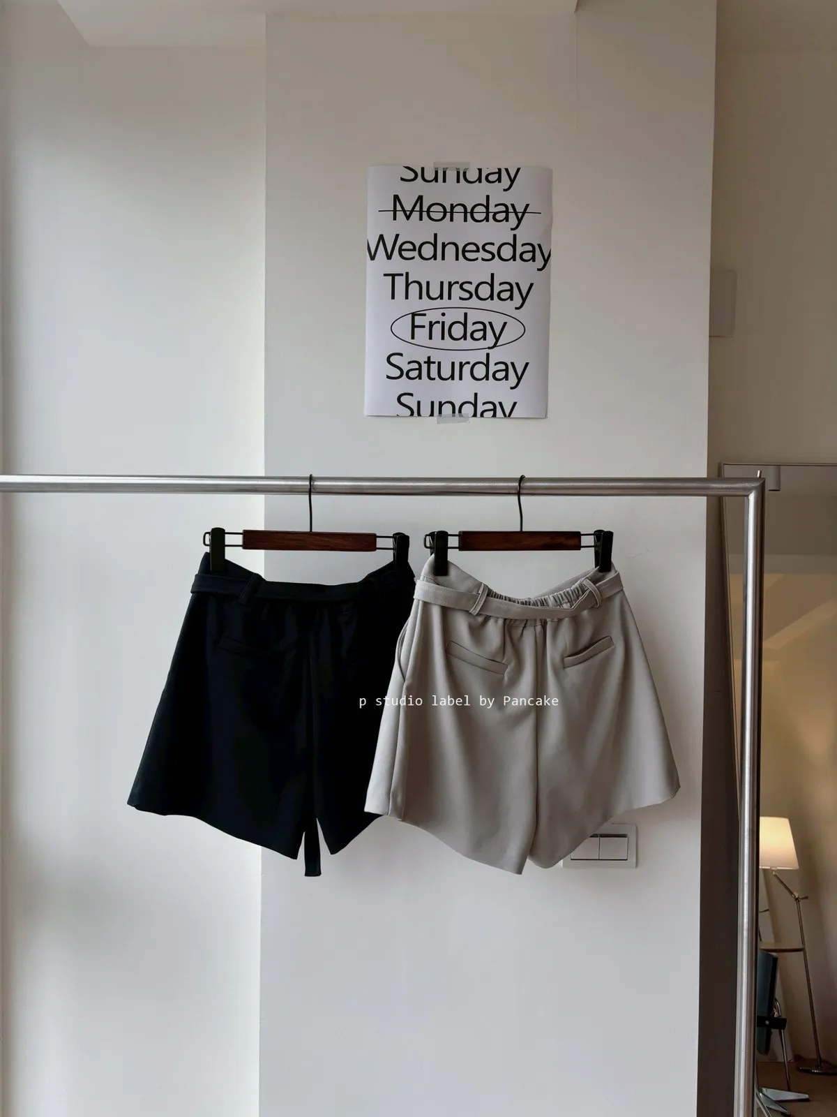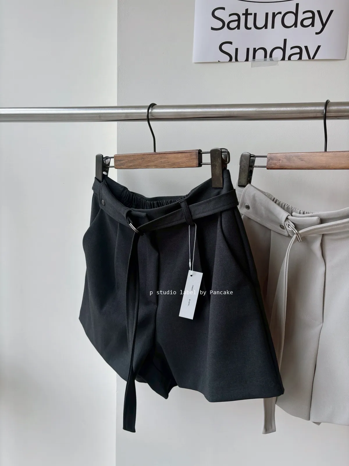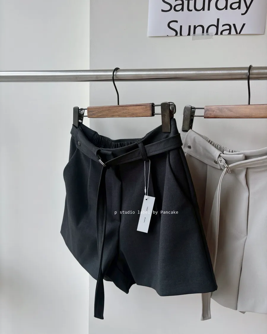 A413 俐落造型腰帶修身短褲 2色 後腰彈性F