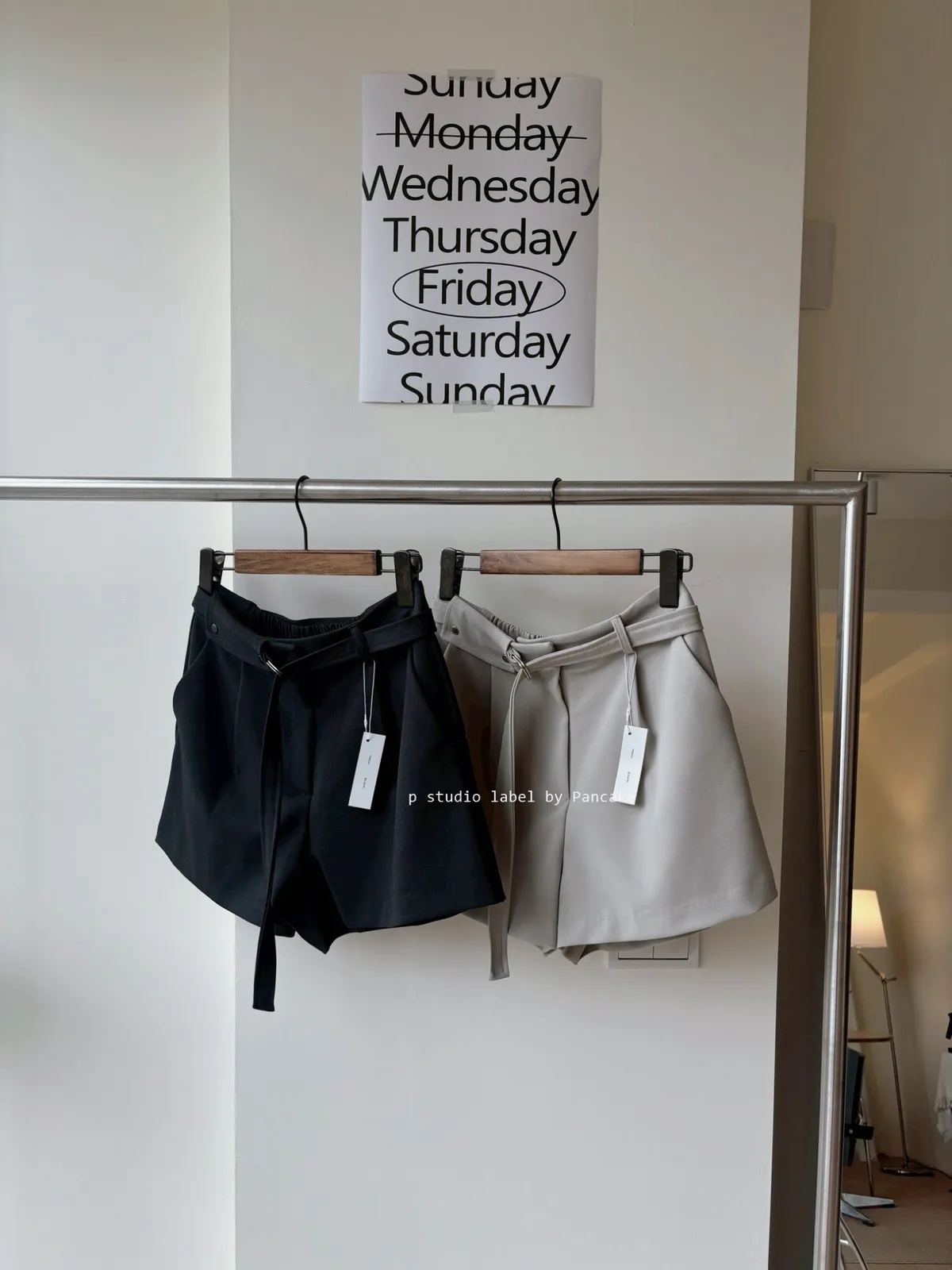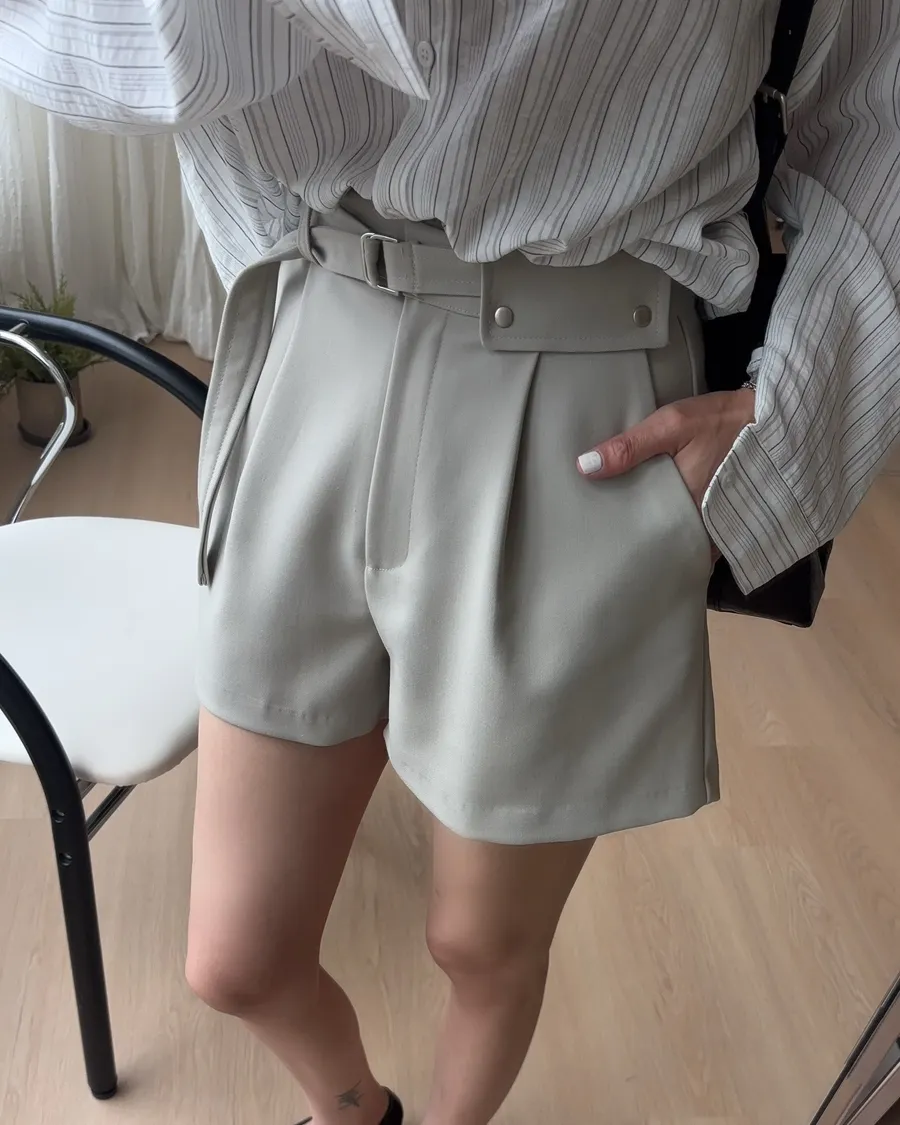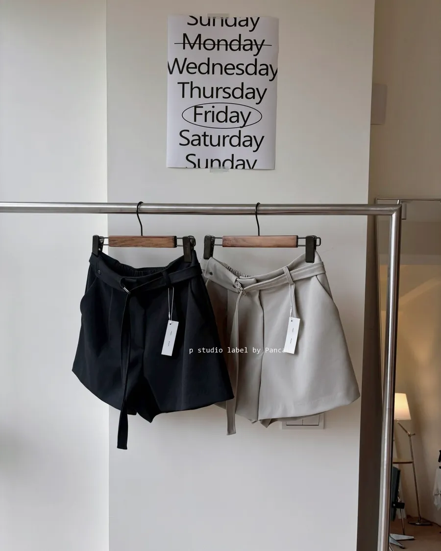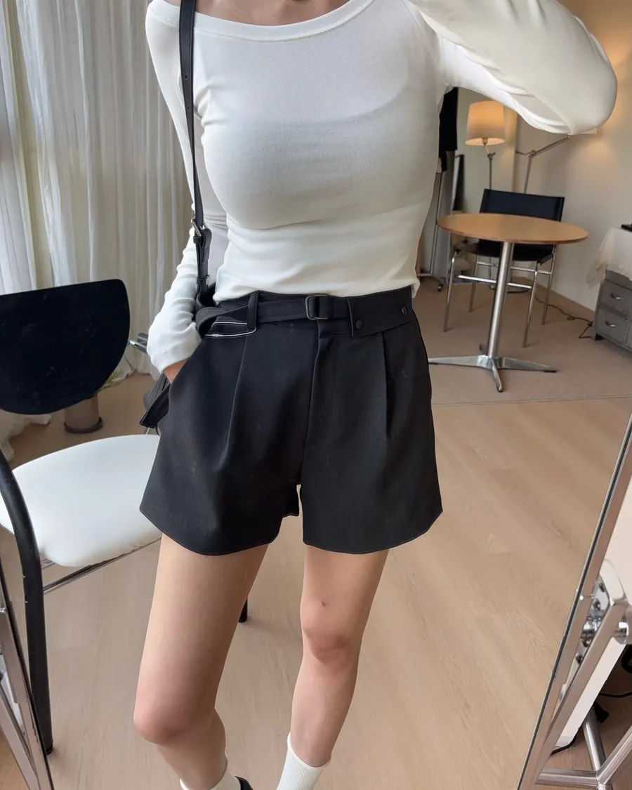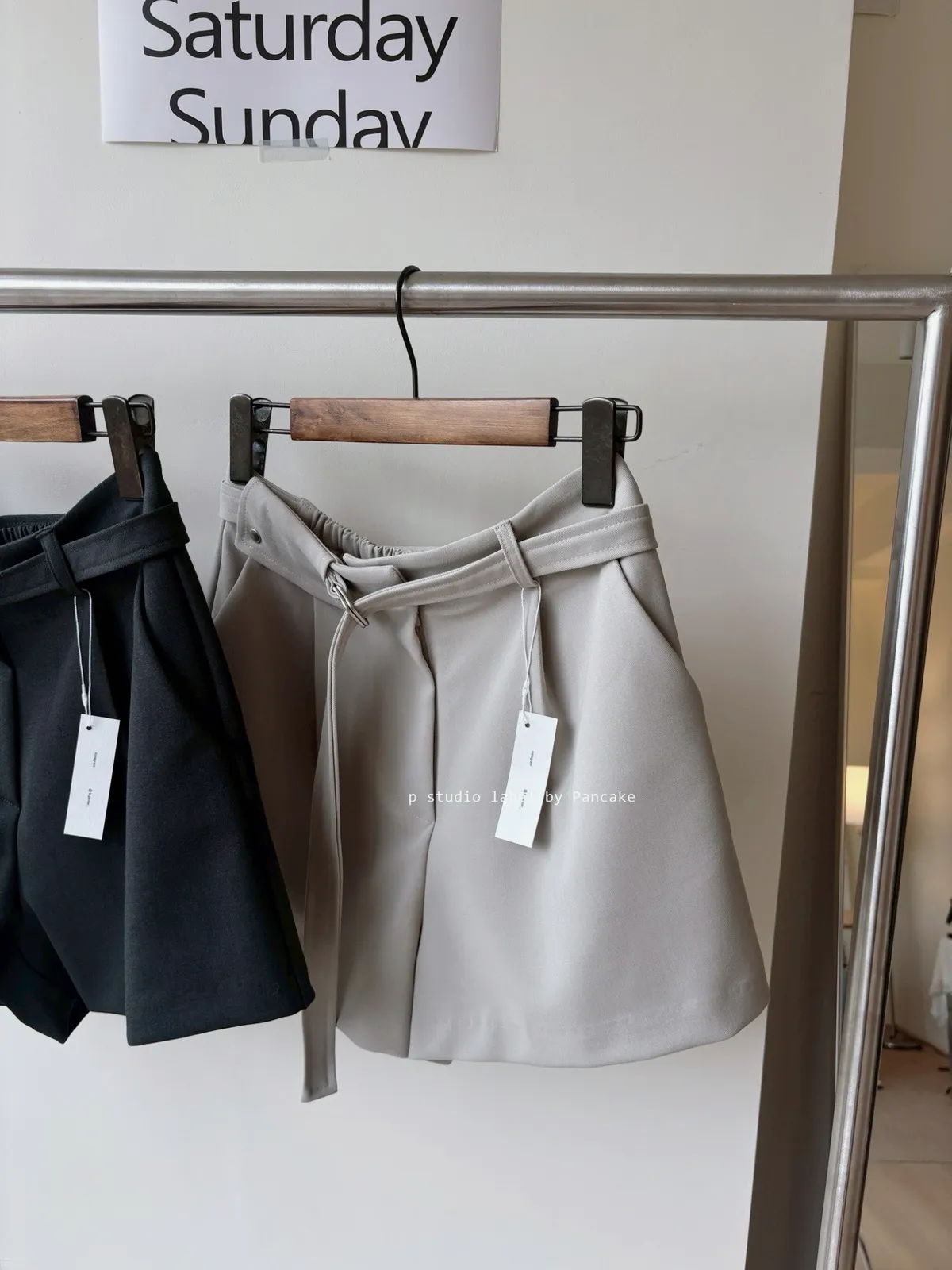 A413 俐落造型腰帶修身短褲 2色 後腰彈性F