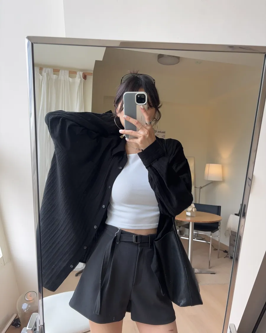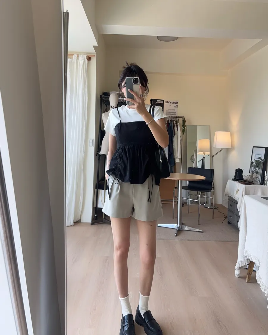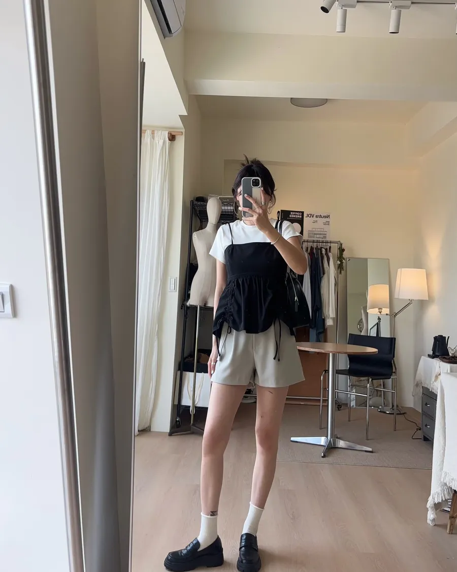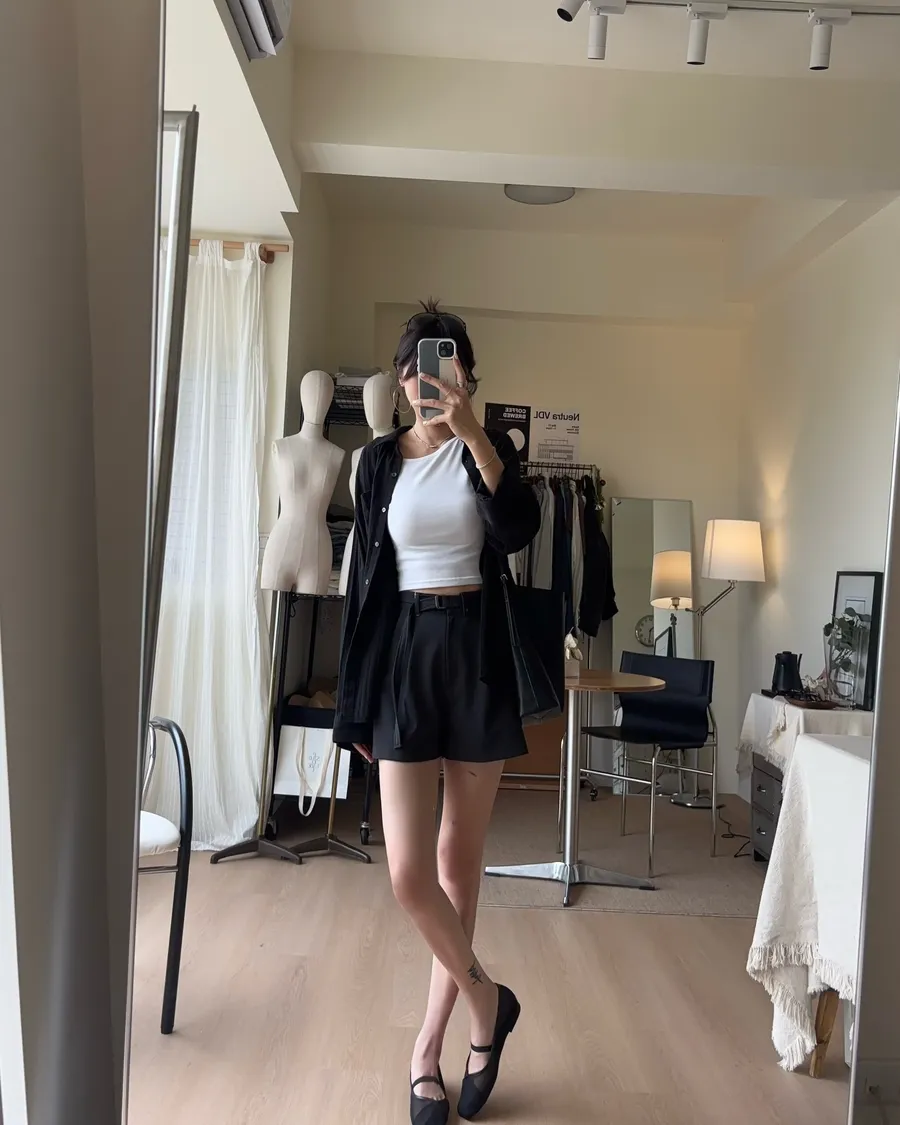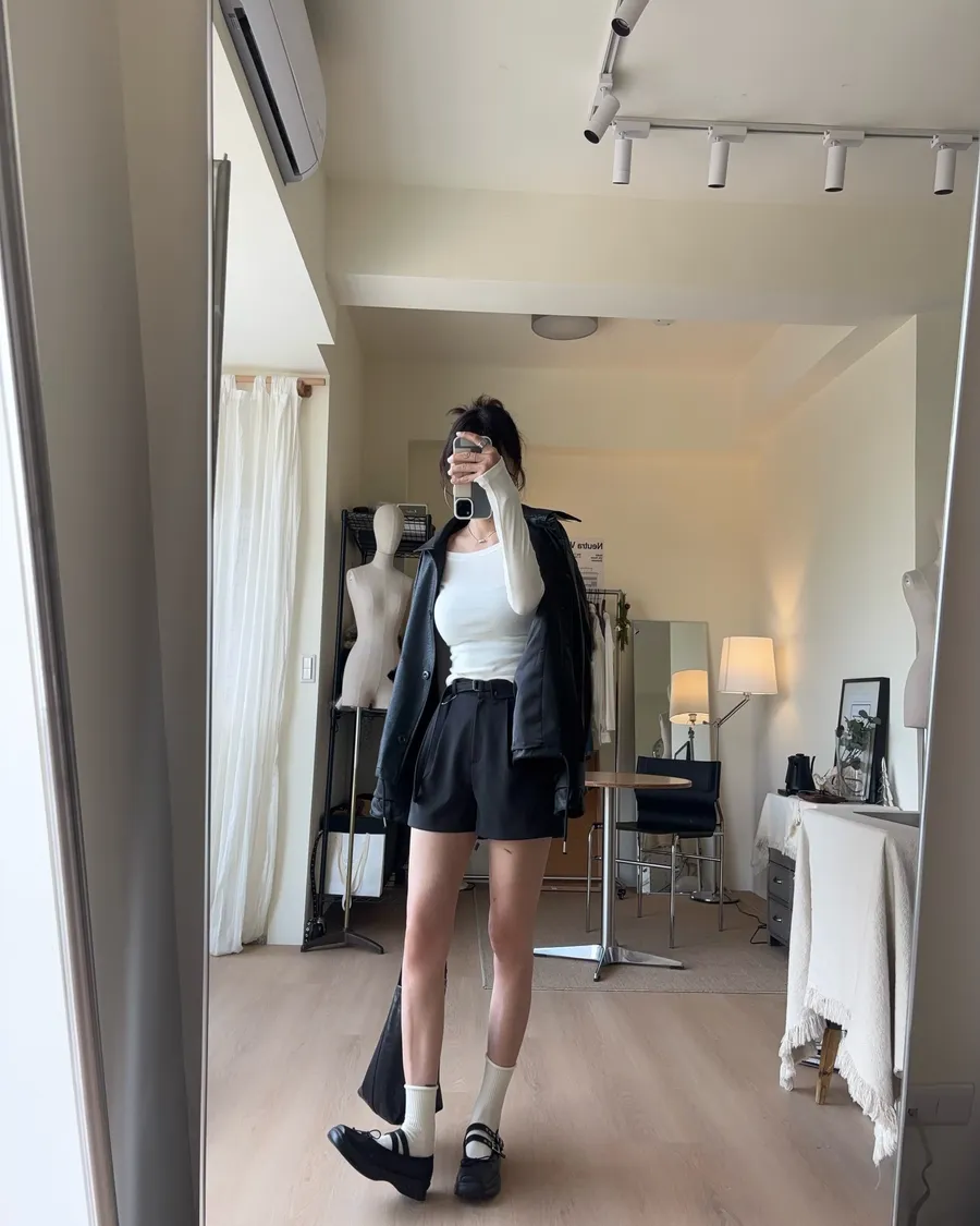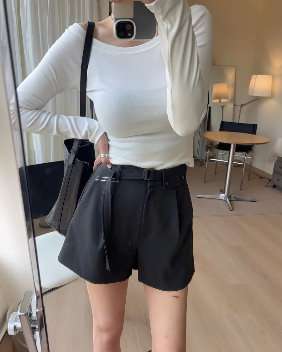 A413 俐落造型腰帶修身短褲 2色 後腰彈性F