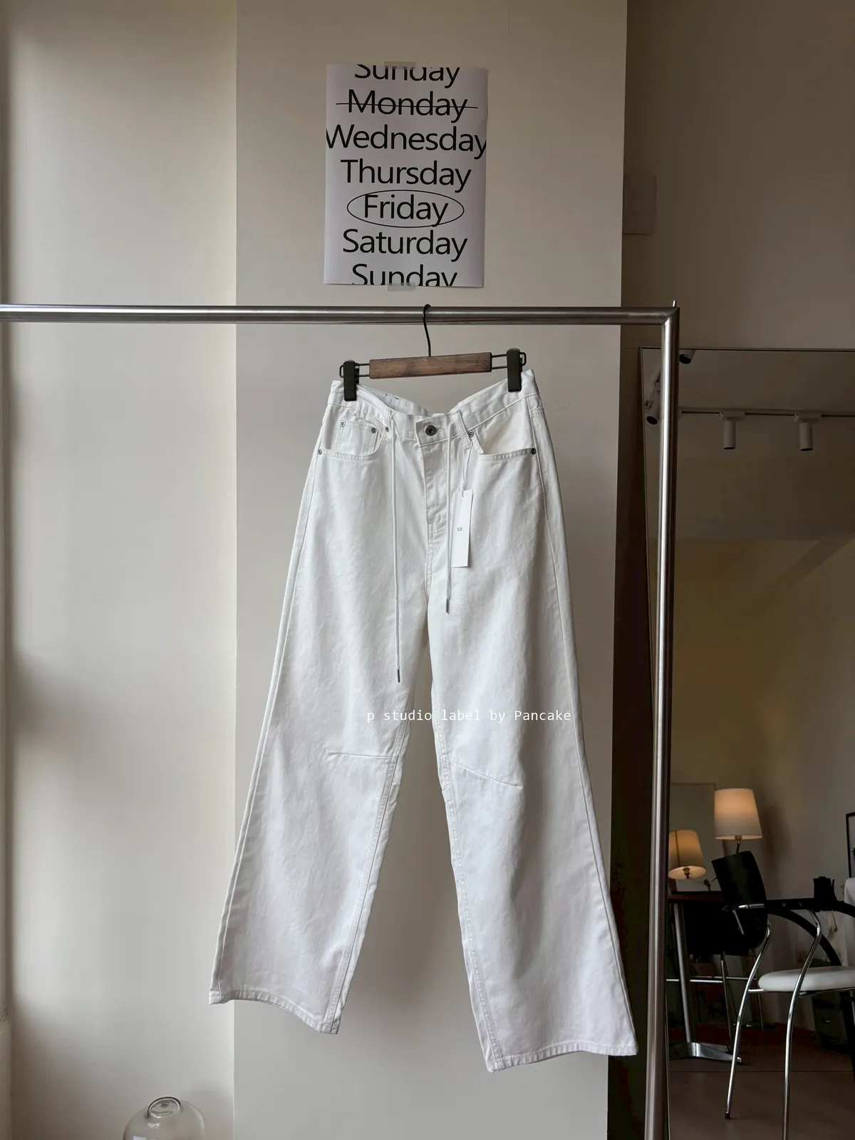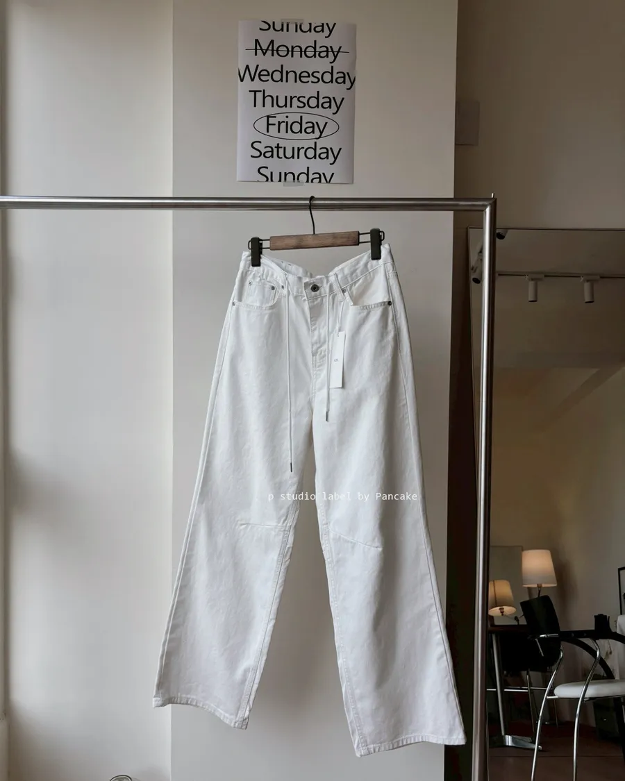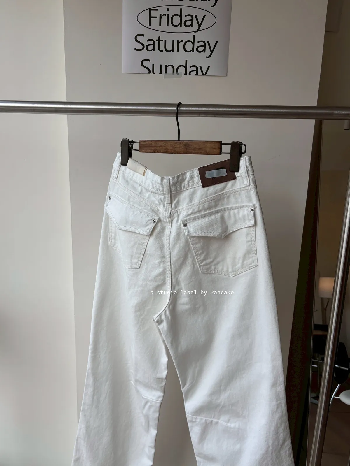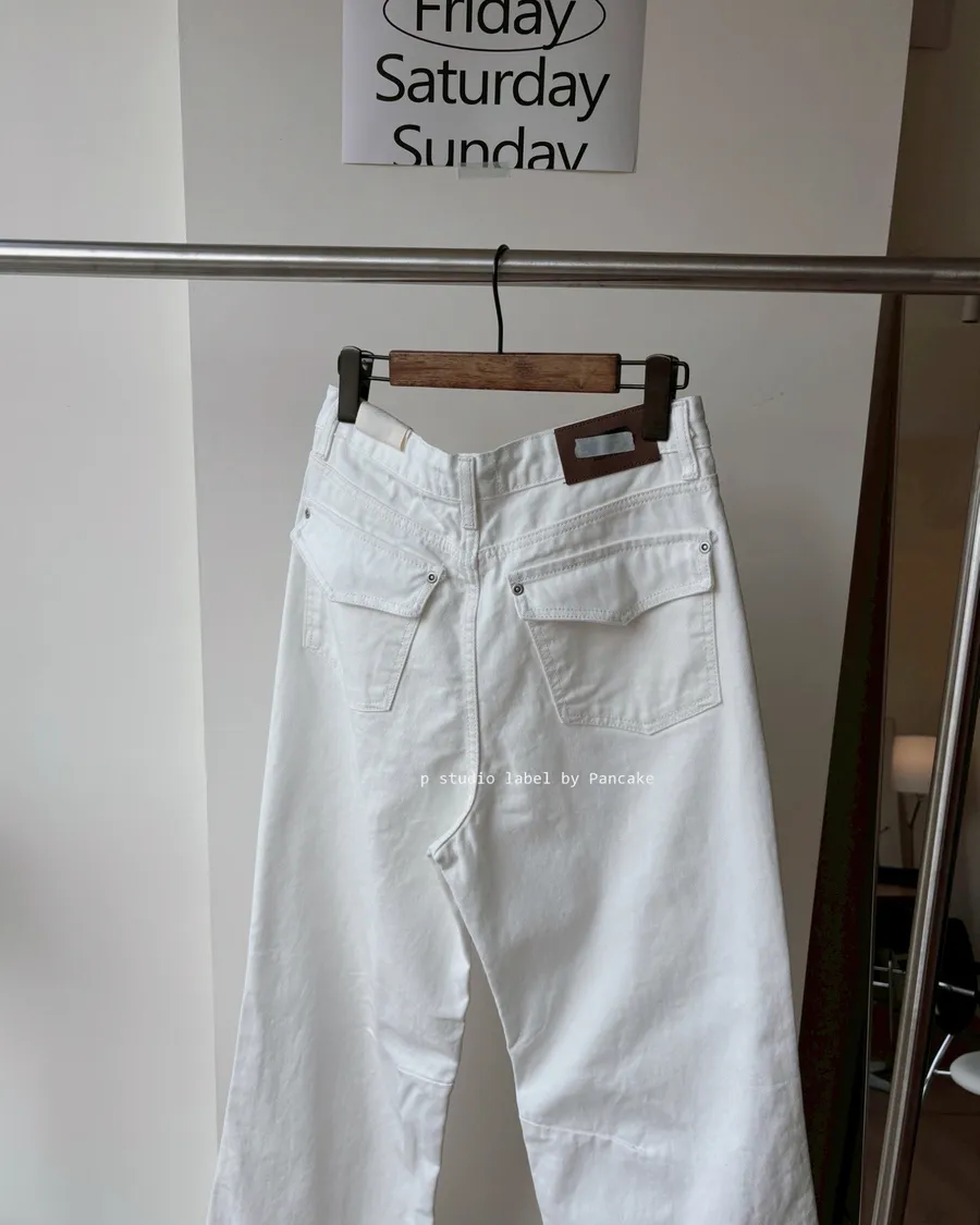A15 抽繩翻蓋口袋白寬褲 S/M