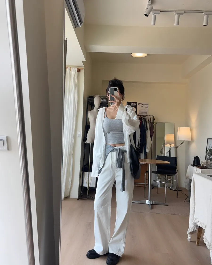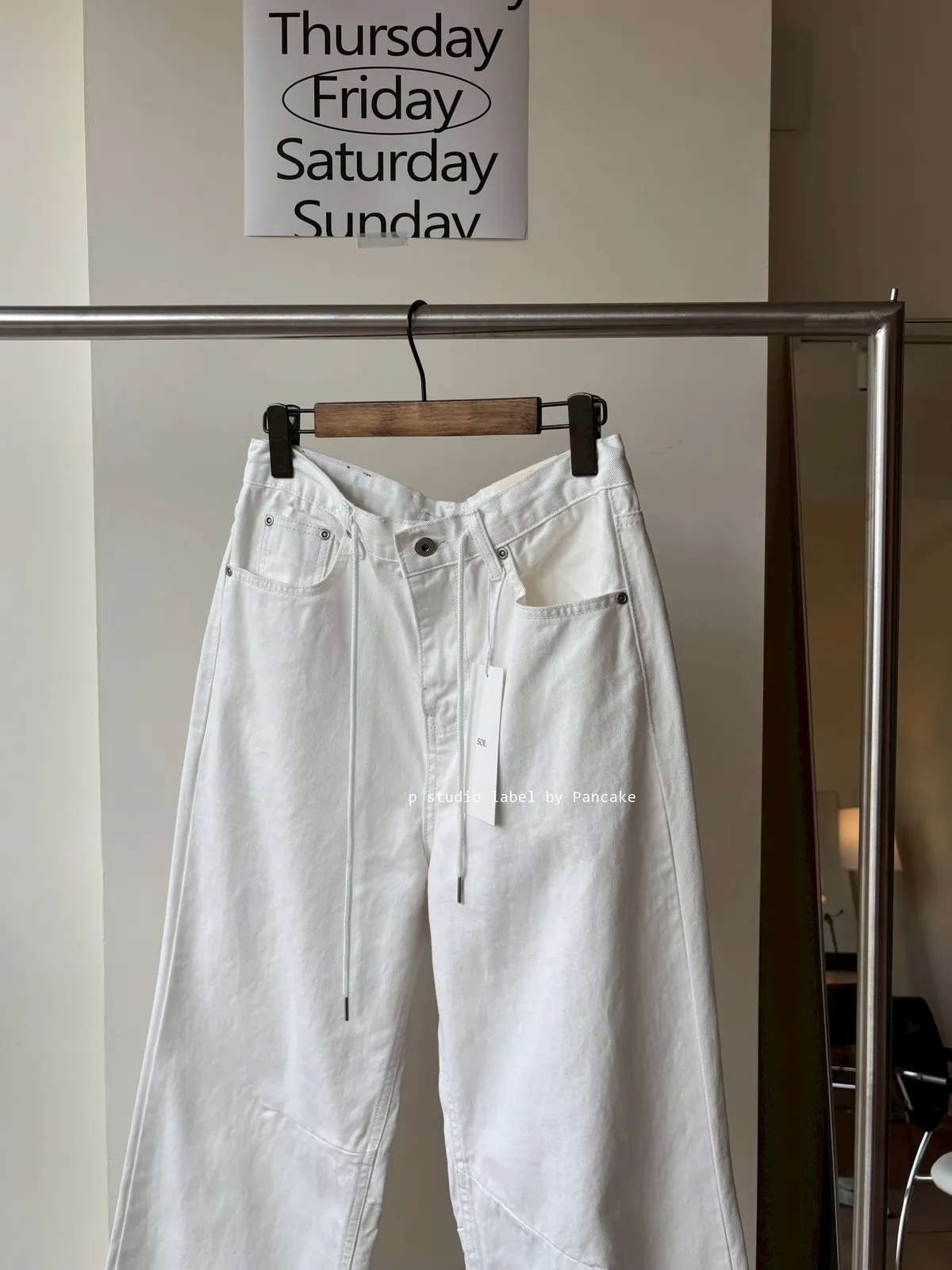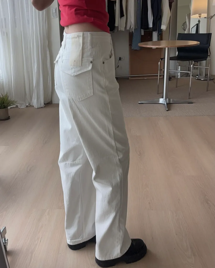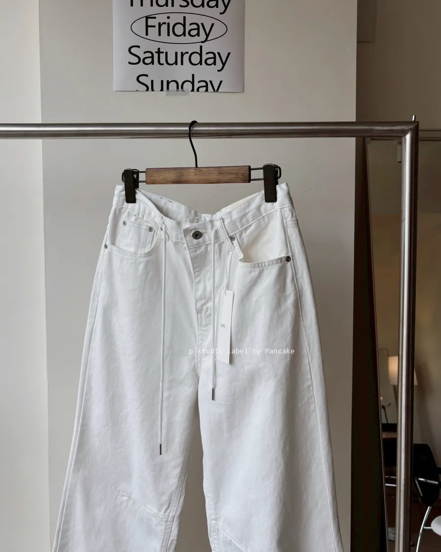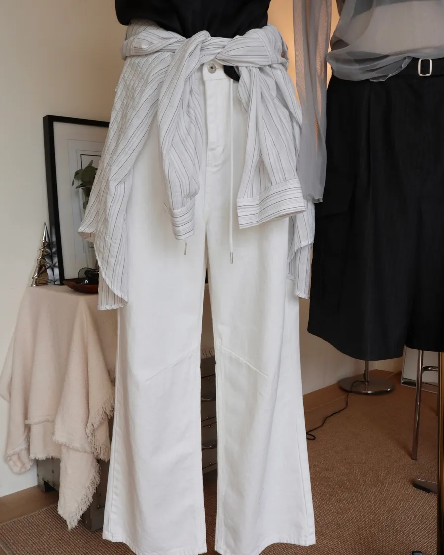 A15 抽繩翻蓋口袋白寬褲 S/M