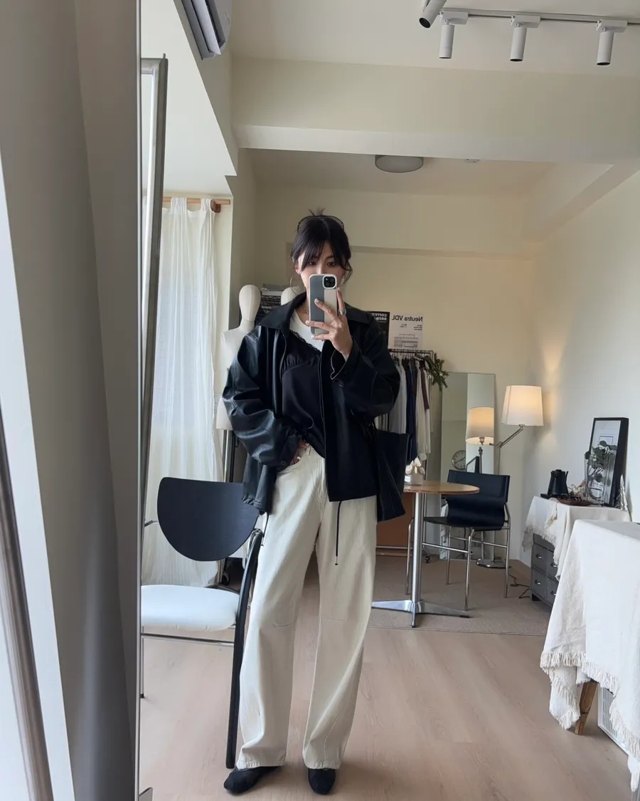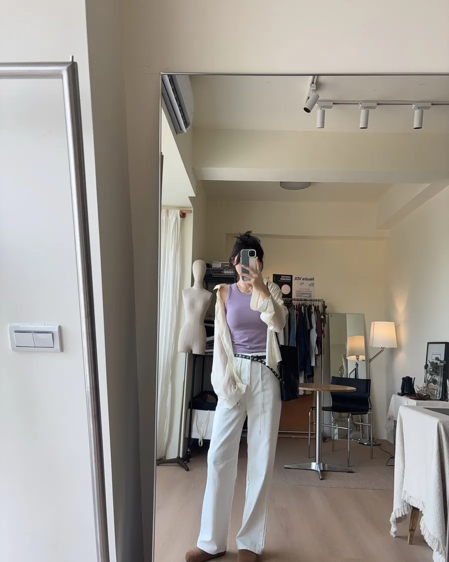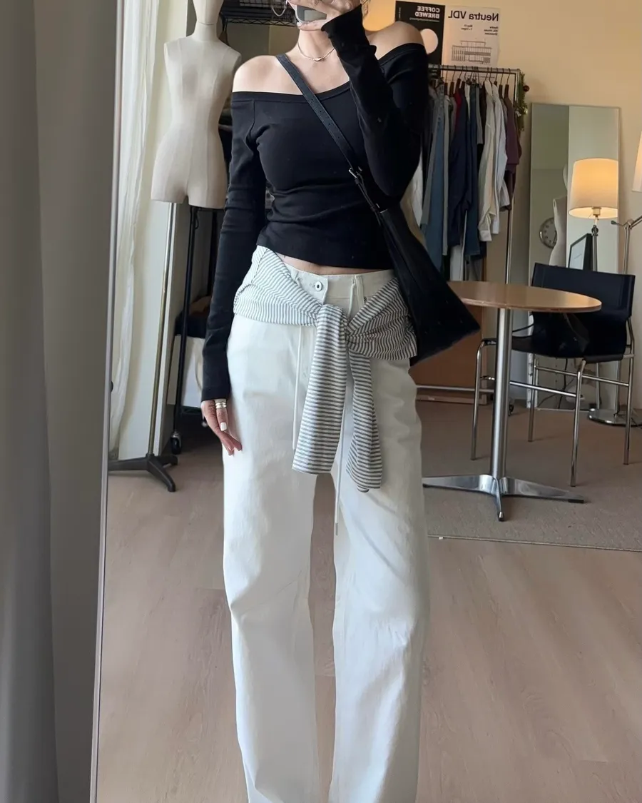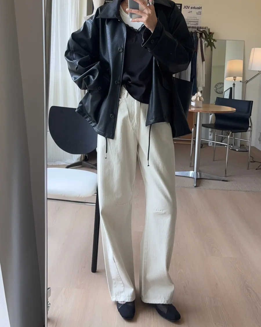 A15 抽繩翻蓋口袋白寬褲 S/M